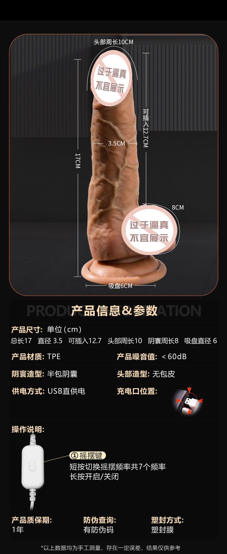 【谜姬】USB直插喷水摇摆仿真阳具震动棒自慰器假阳具女用性工具