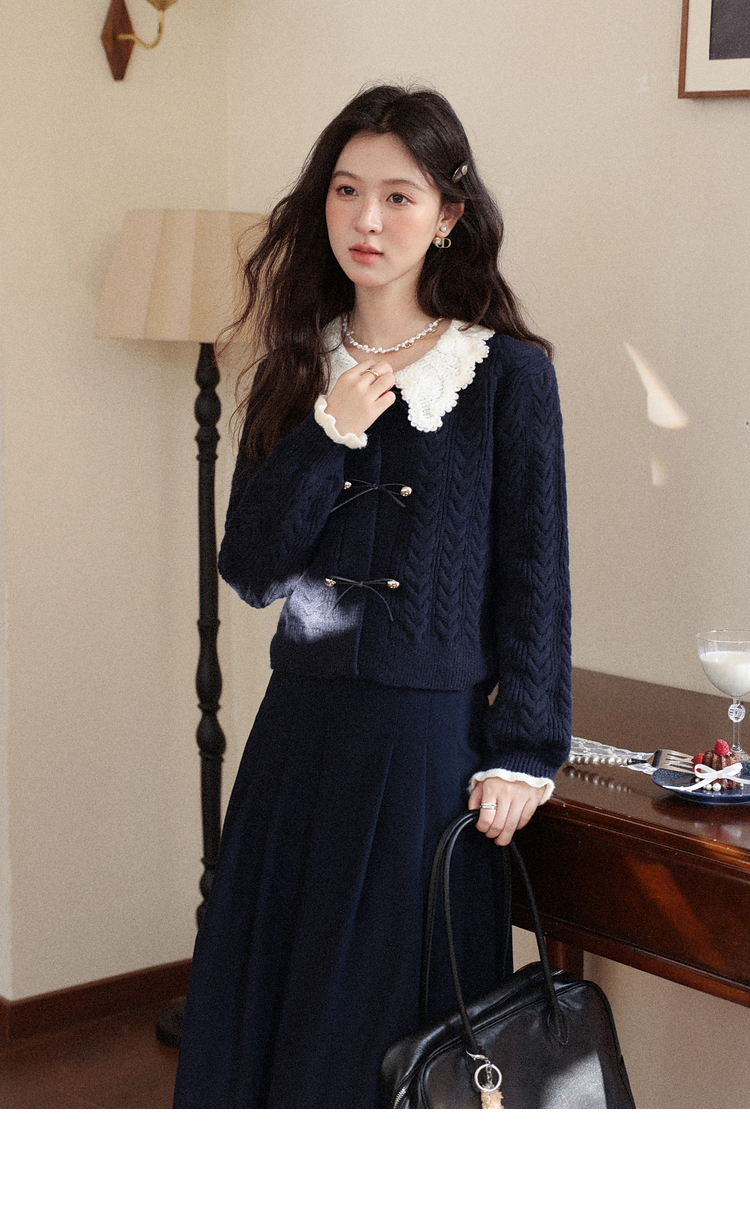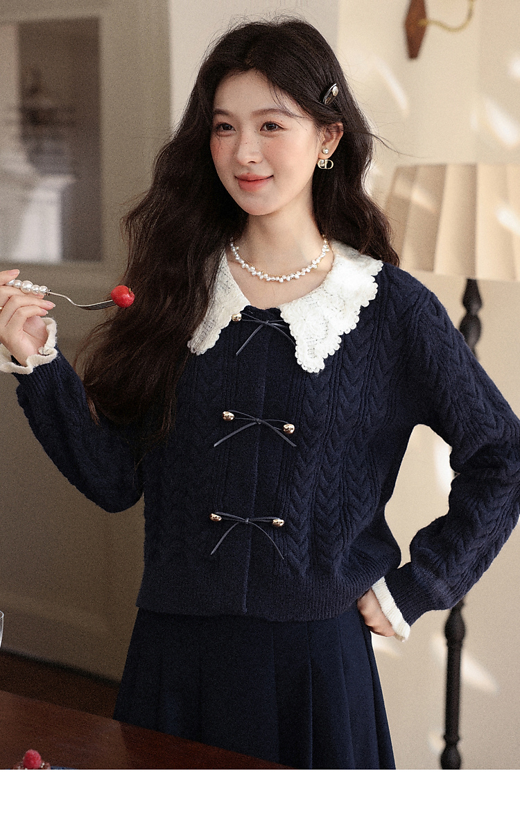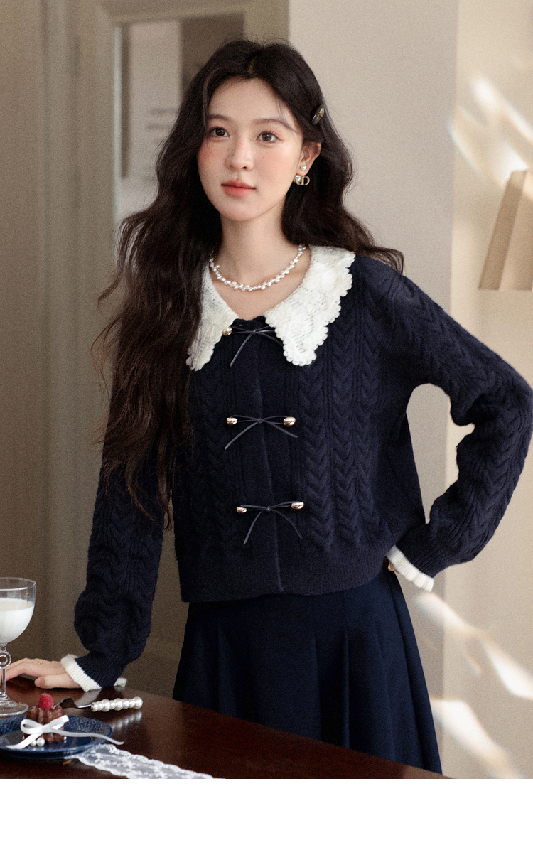 鹿向南「蓝风信屿」气质藏蓝色毛衣女秋季新款小个子高级短款上衣