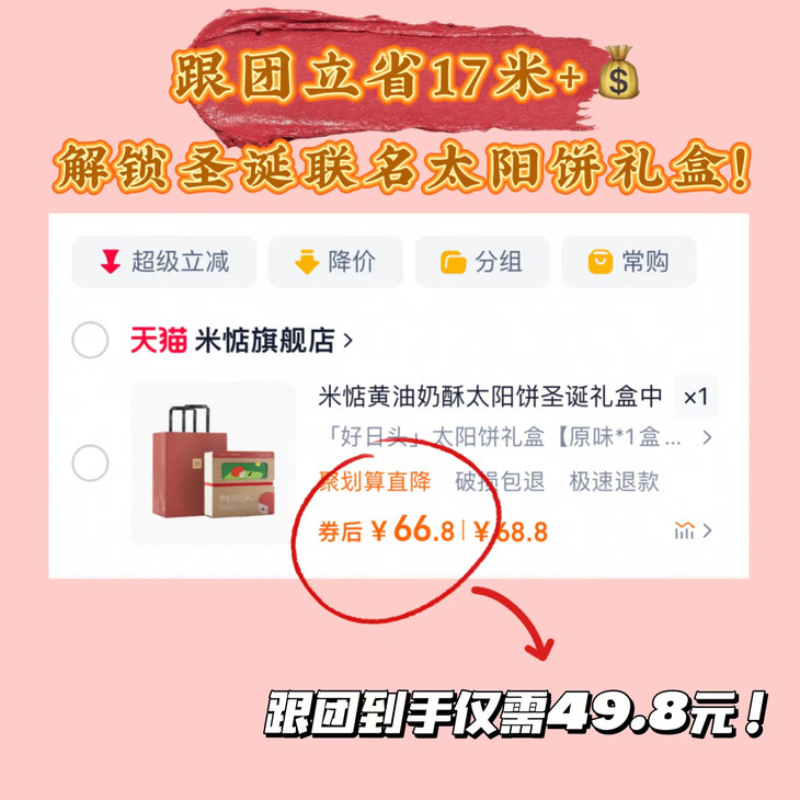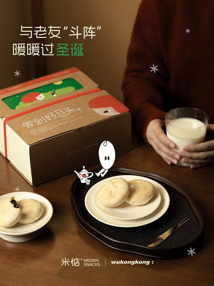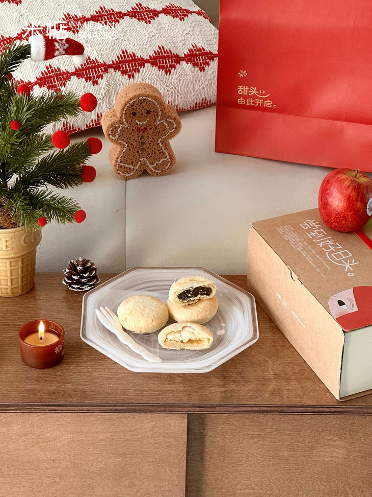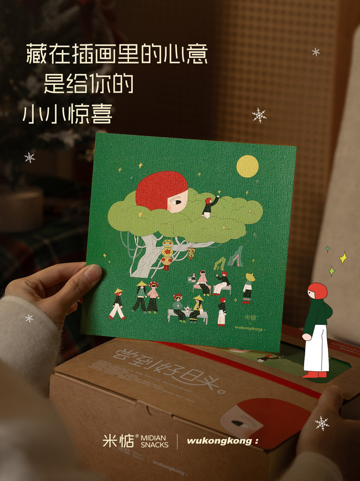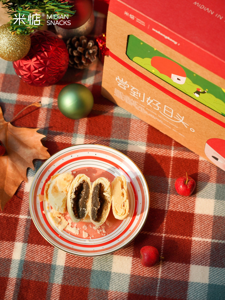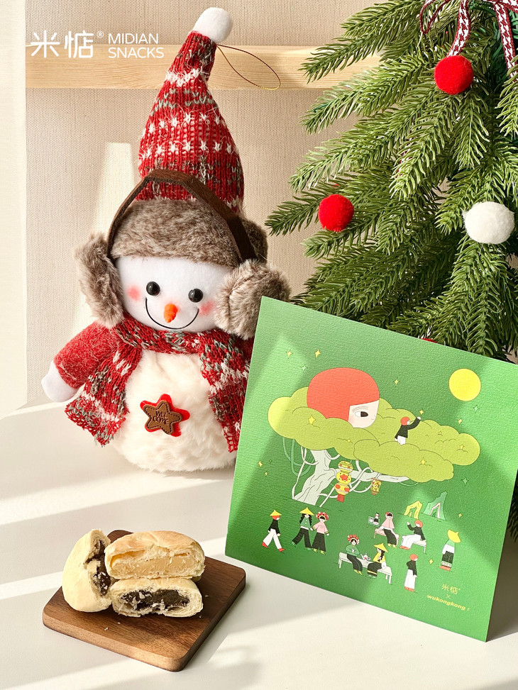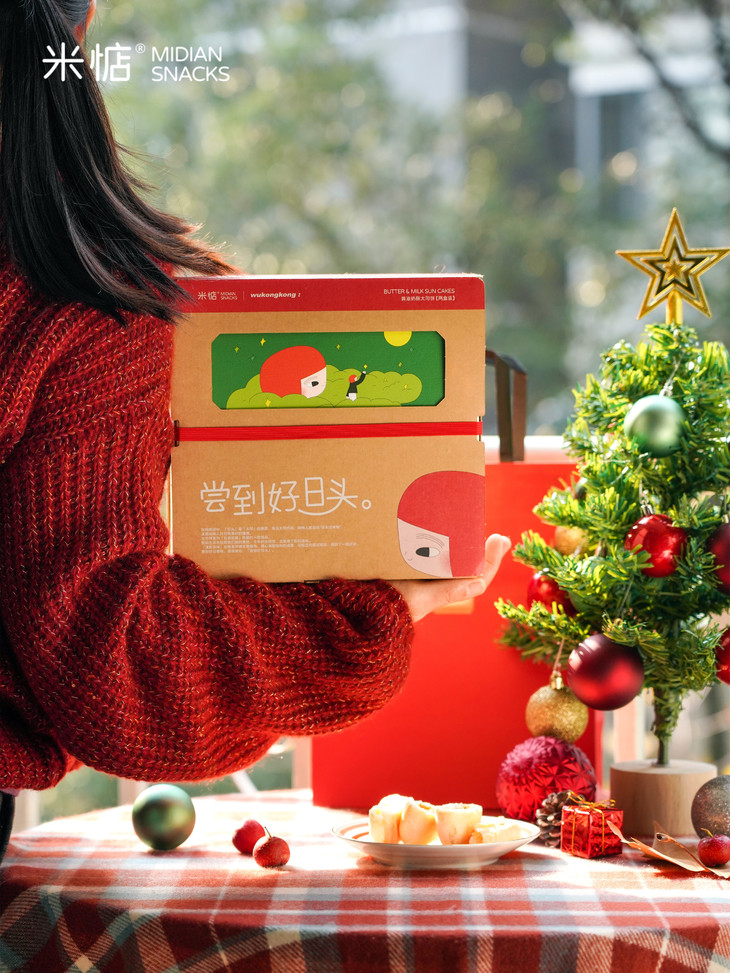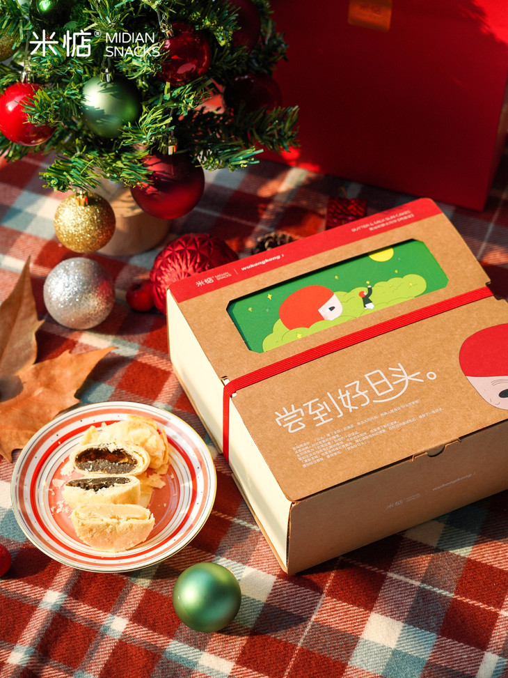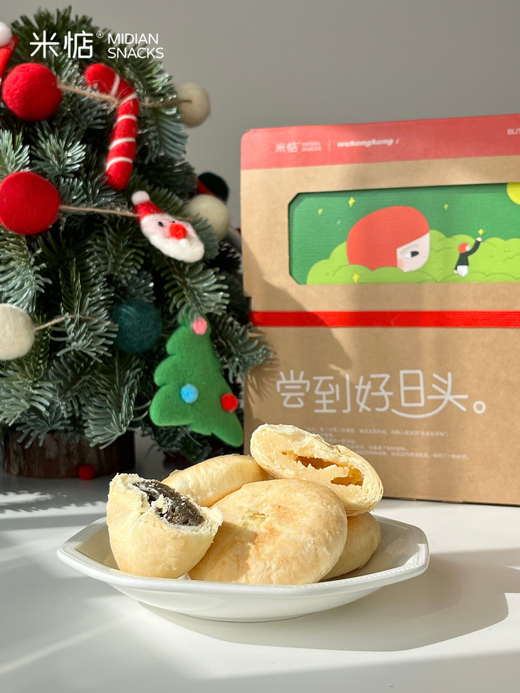 圣诞礼盒内容物包含: 黄油奶酥太阳饼(原味)180g✖️1盒 黄油奶酥太阳饼(大红袍味)180g✖️1盒 联名主题插画✖️1张 专属礼袋✖️1个 温馨提示 : 由于产品层层酥皮的特点,运输途中可能会有轻微磕碰,产生少量酥皮脱落,属于正常现象哦,不会影响原有口感,介意慎拍