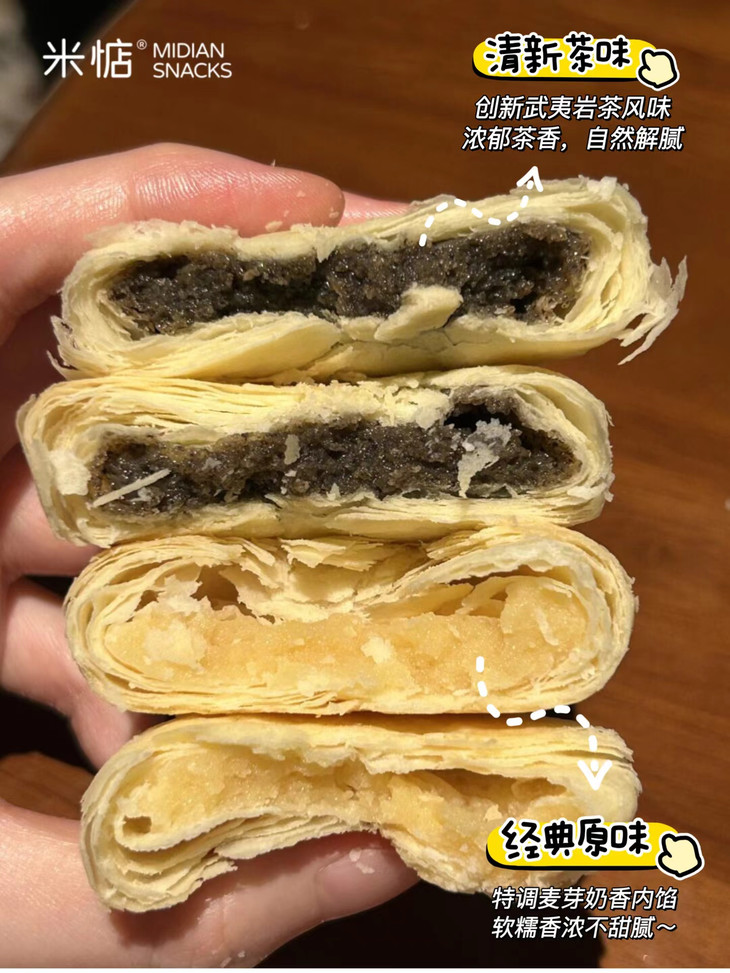 🧡特调奶香内馅,软糯香浓 适度酥脆的饼皮与麦芽糖馅的完美比例 结合海藻糖与麦芽糖浆的精心特调✔ 海藻糖是一种天然的糖类 🍬甜度仅为普通蔗糖的45% 既符合现代低糖的饮食生活理念 还降低了整体甜度,摄入更轻负担🌱 轻甜不腻,软绵香浓的内馅真是无法拒绝