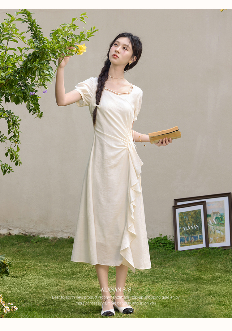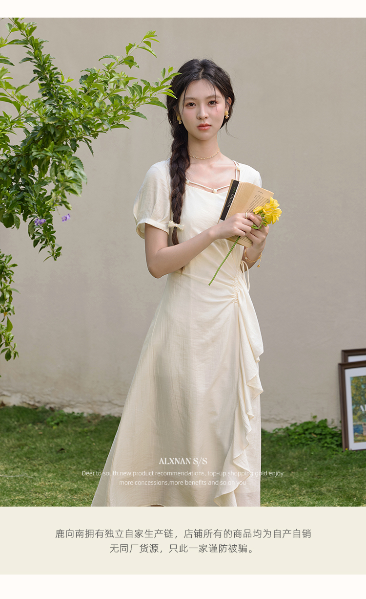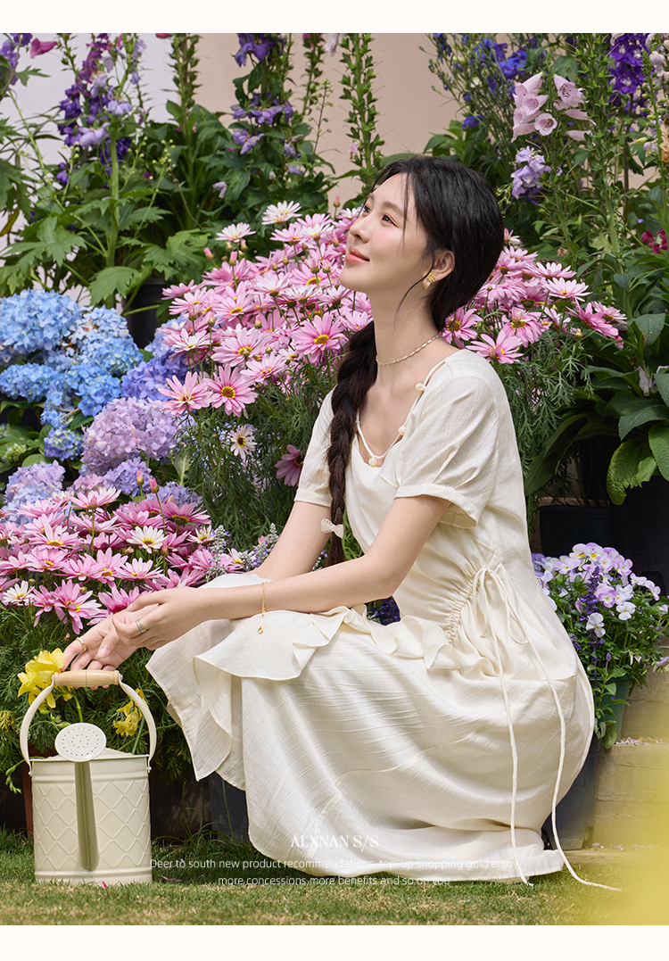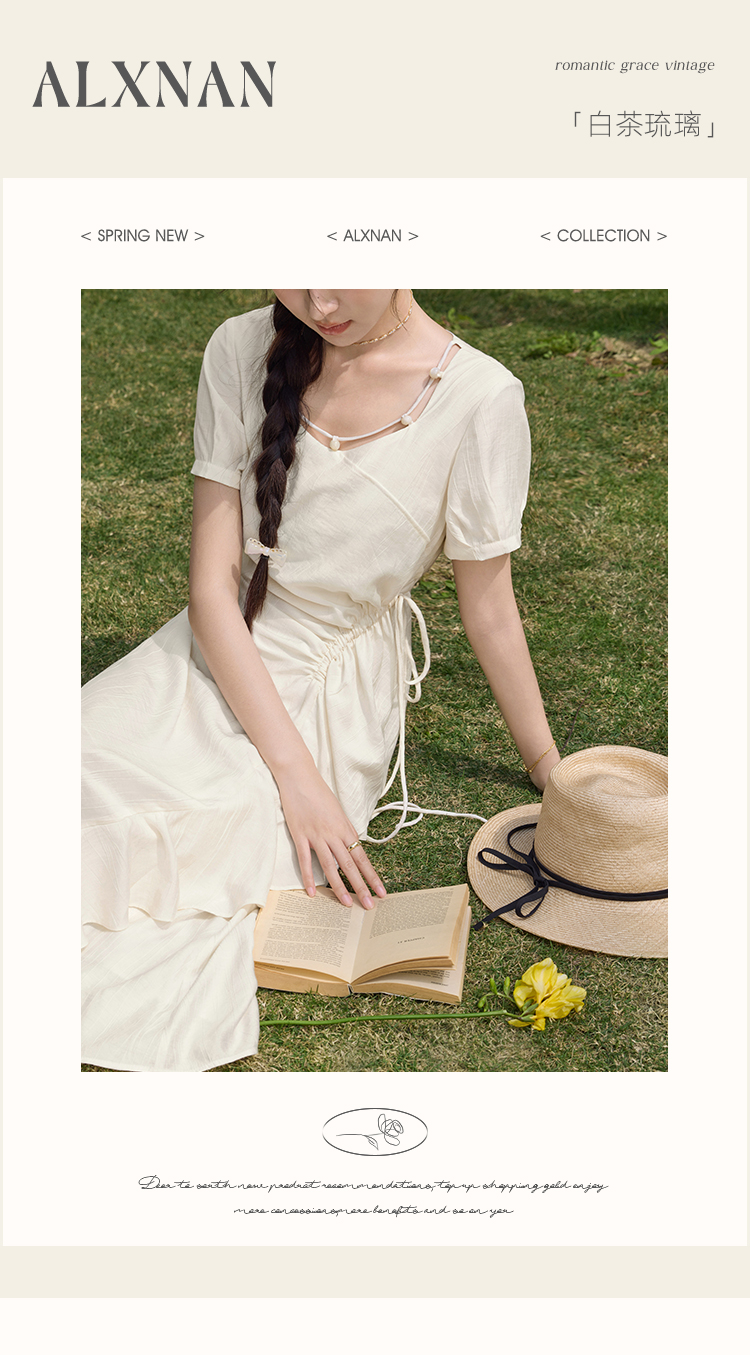 【6折秒杀】鹿向南 「白茶琉璃」连衣裙L53606