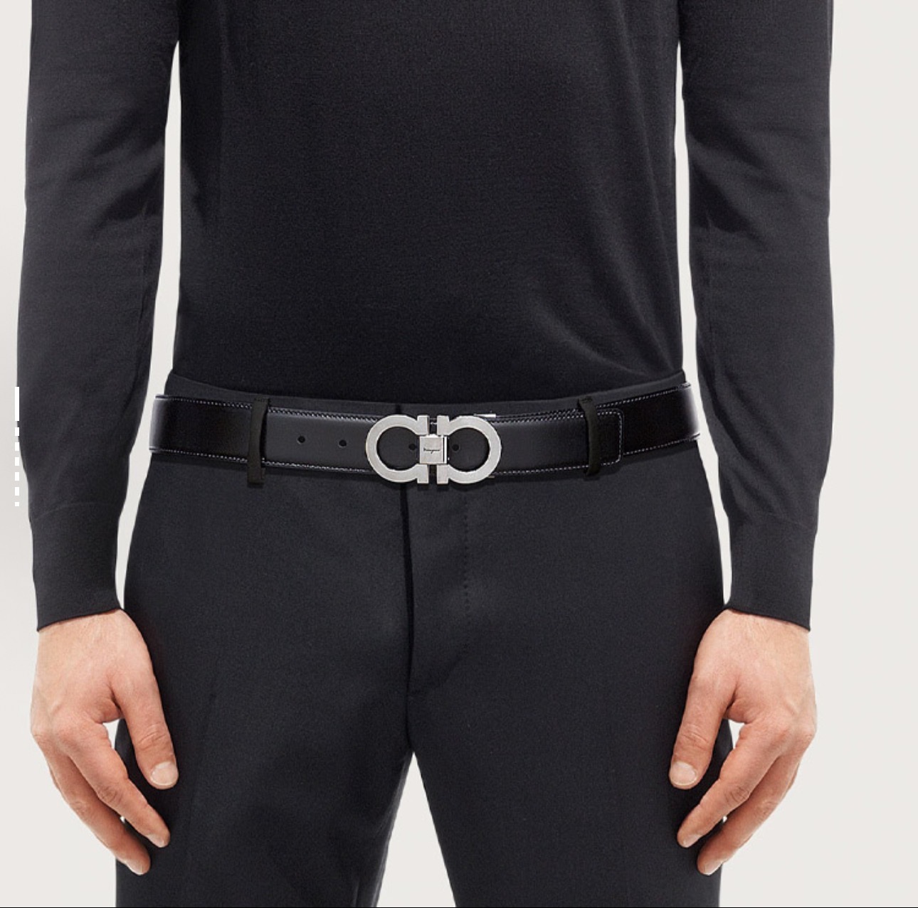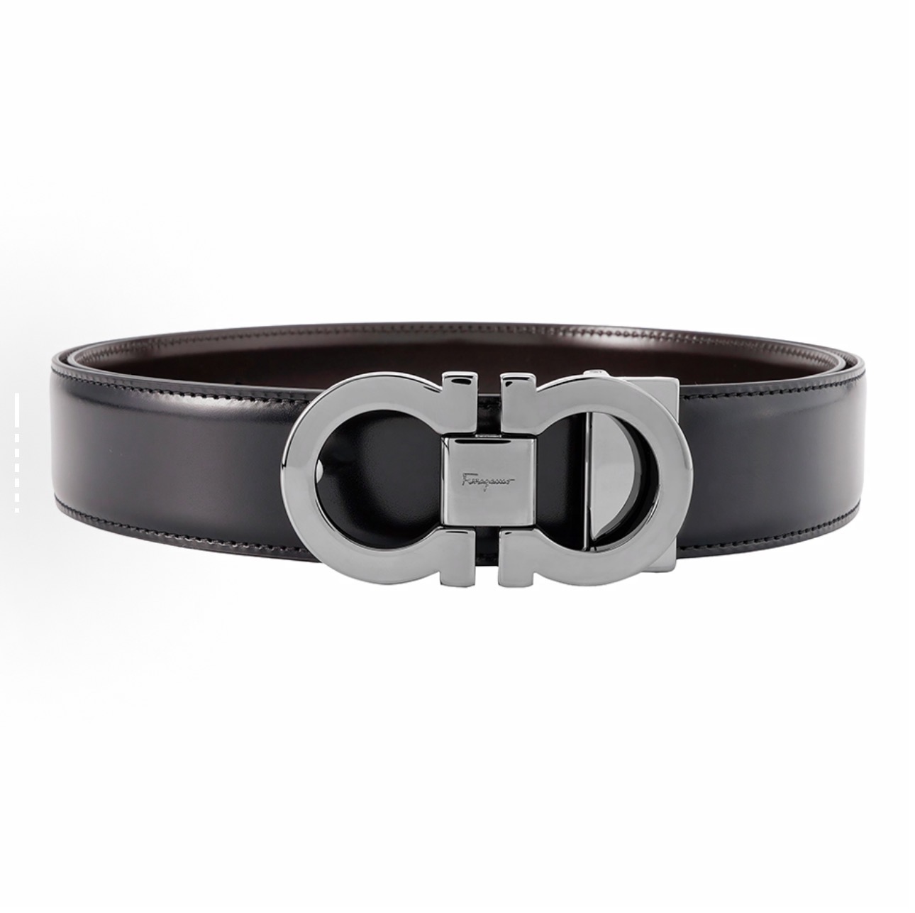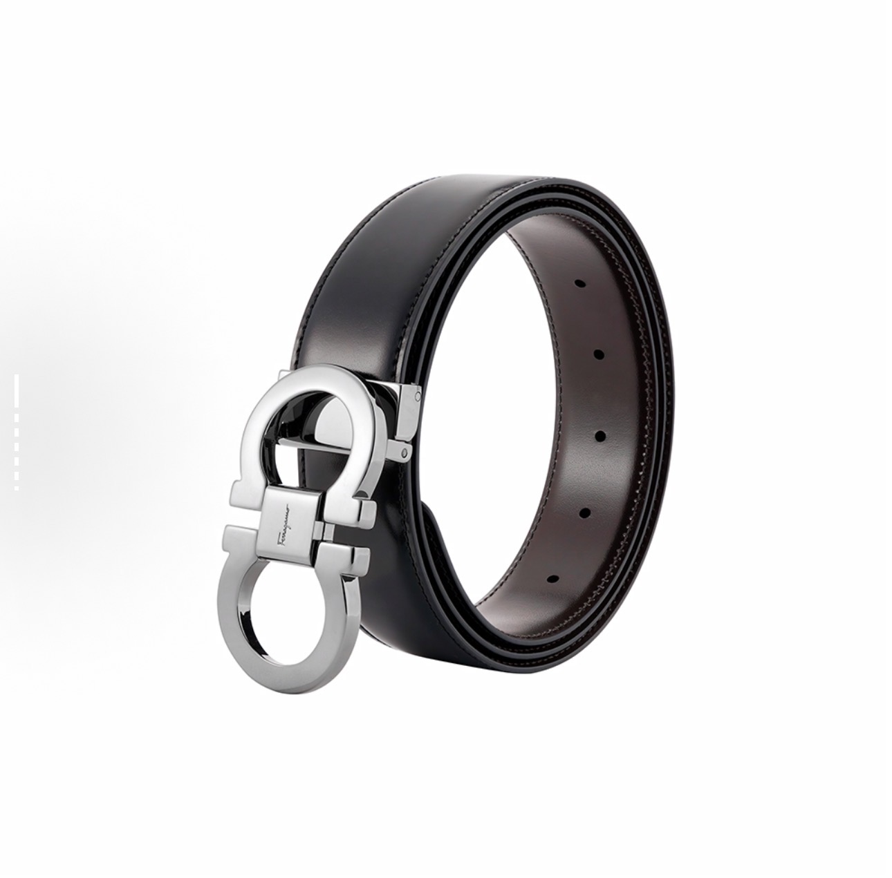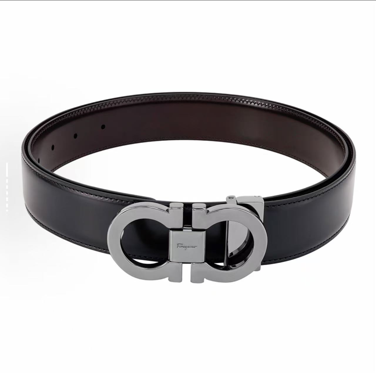Salvatore 菲拉格慕 银扣双面皮带 男款 黑色/铜棕色 宽3.5cm