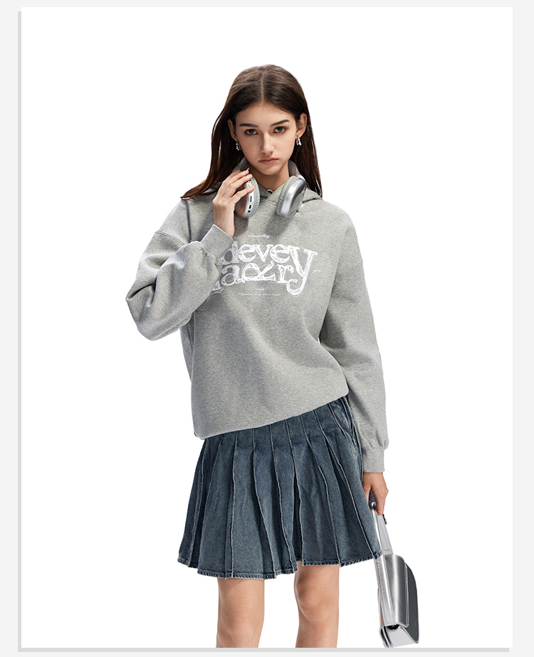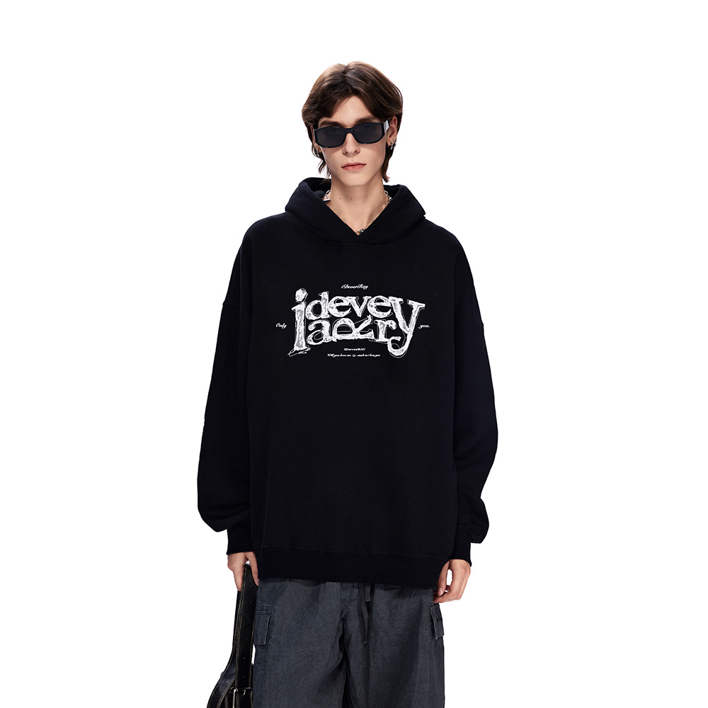 明星同款 IDEVERRAY蕾丝logo连帽卫衣男女秋冬加绒情侣装帽衫上衣