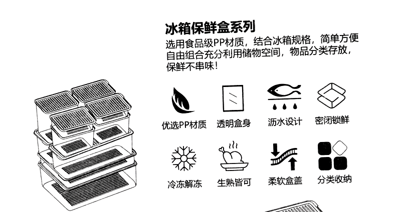 厨房食品级冰箱收纳保鲜盒可分装透明密封保鲜盒