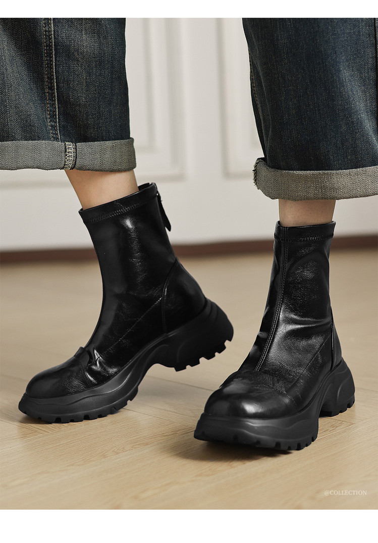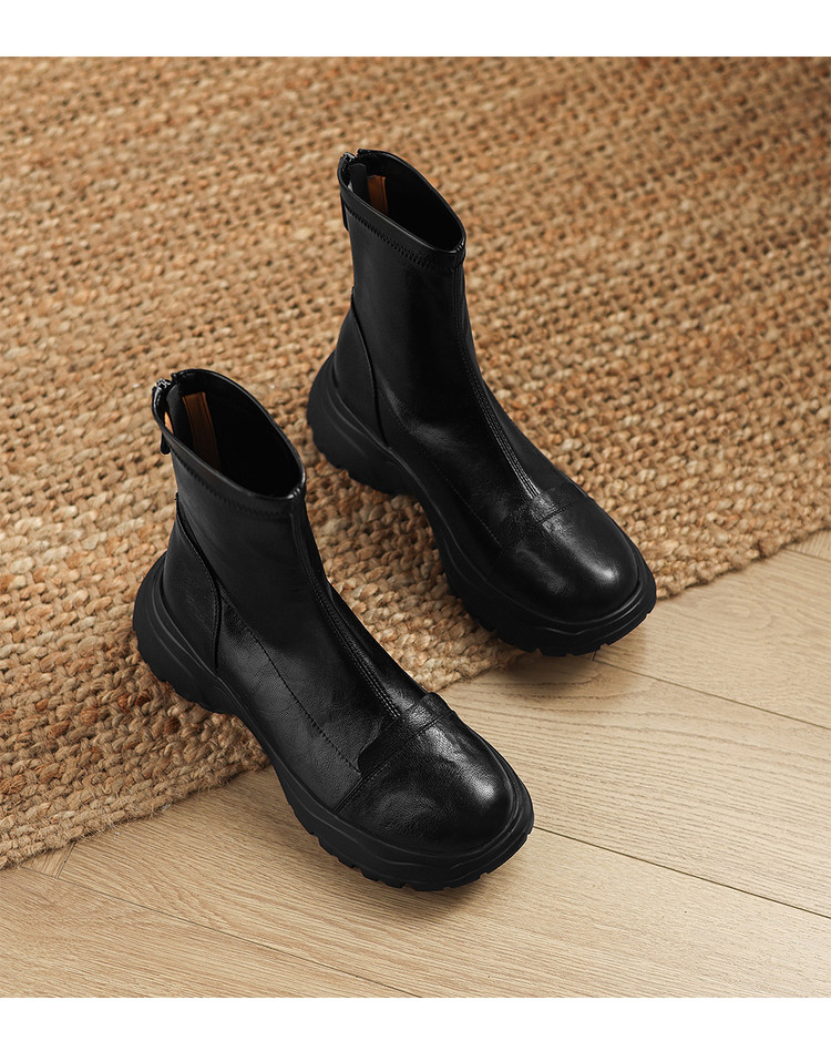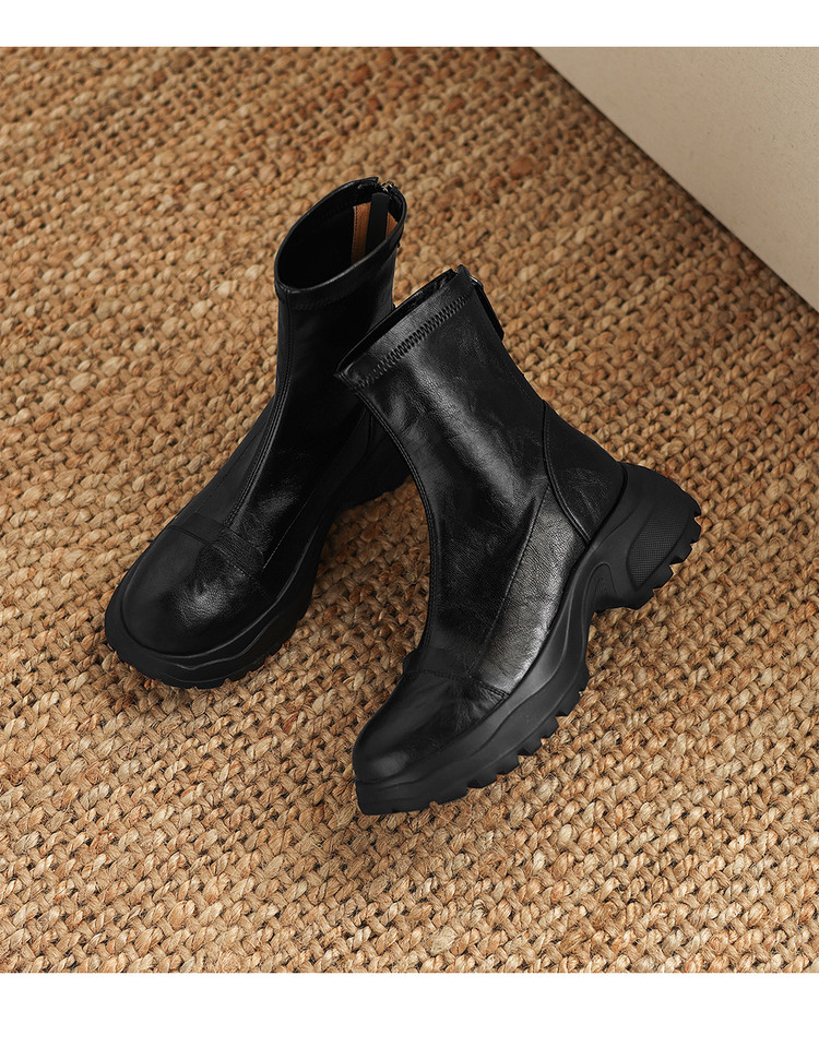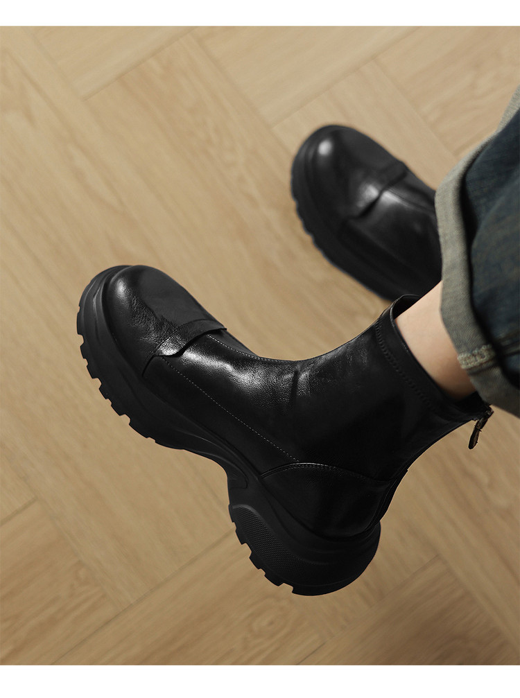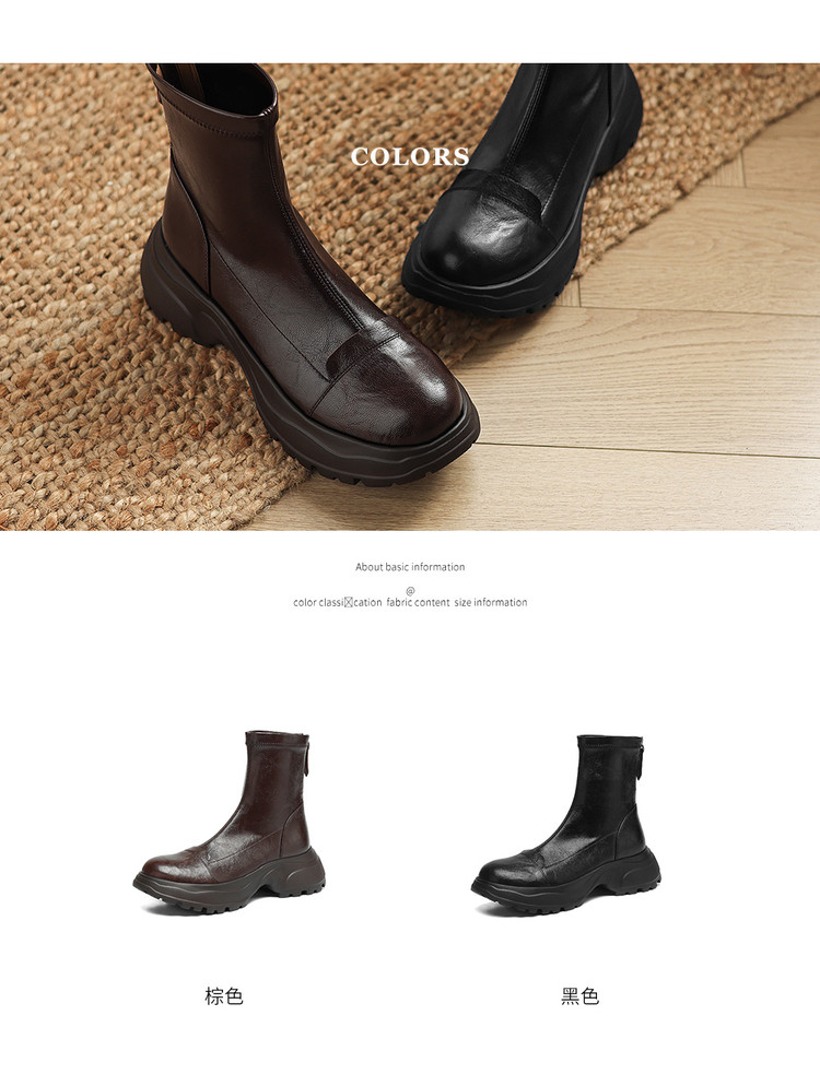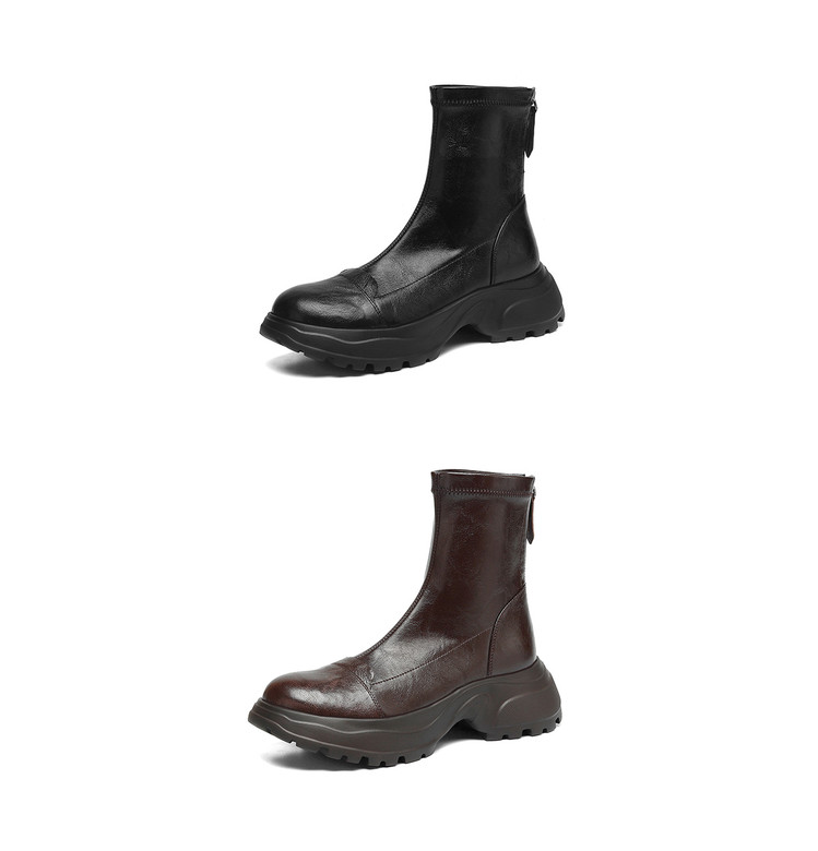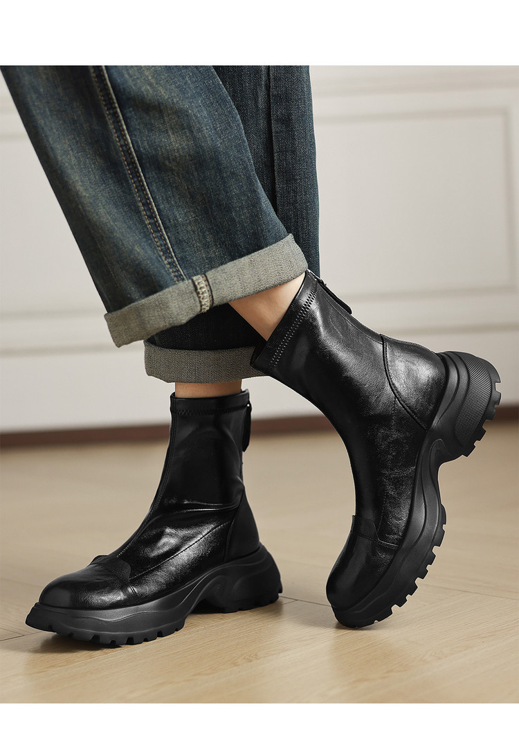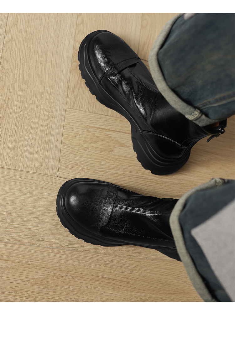 Ech&yolo厚底头层羊皮拼接超好穿后拉链新款短靴HB-1289