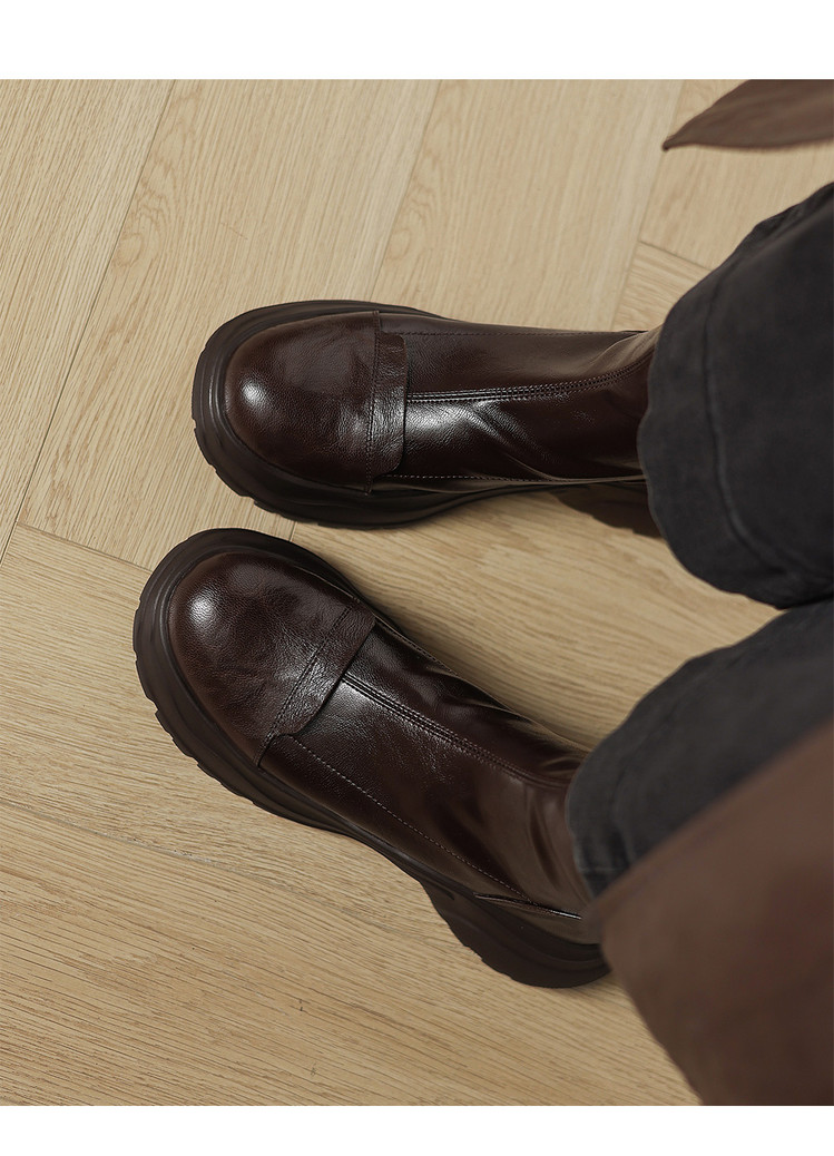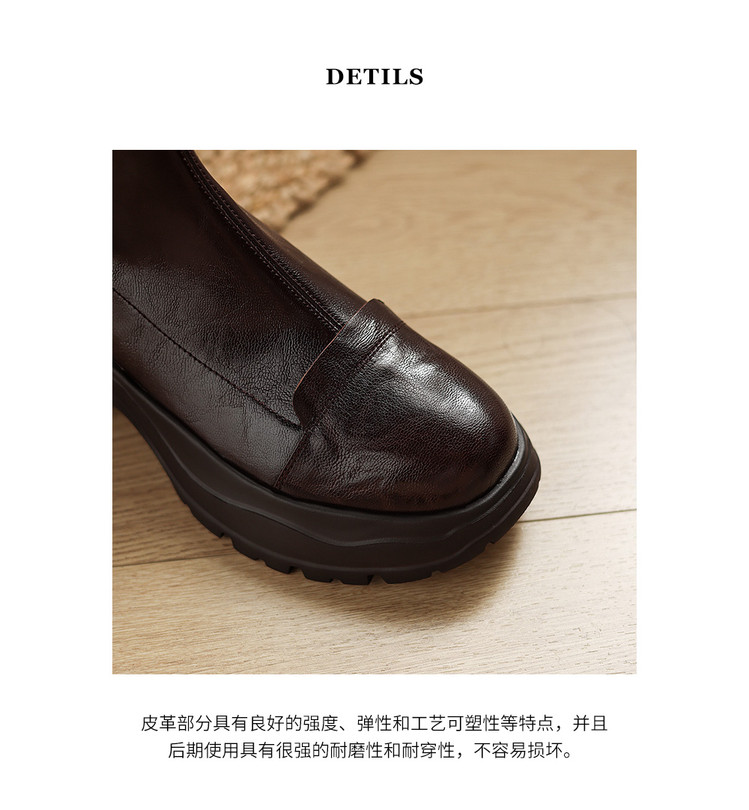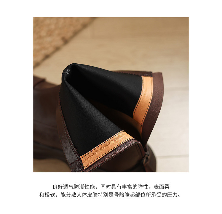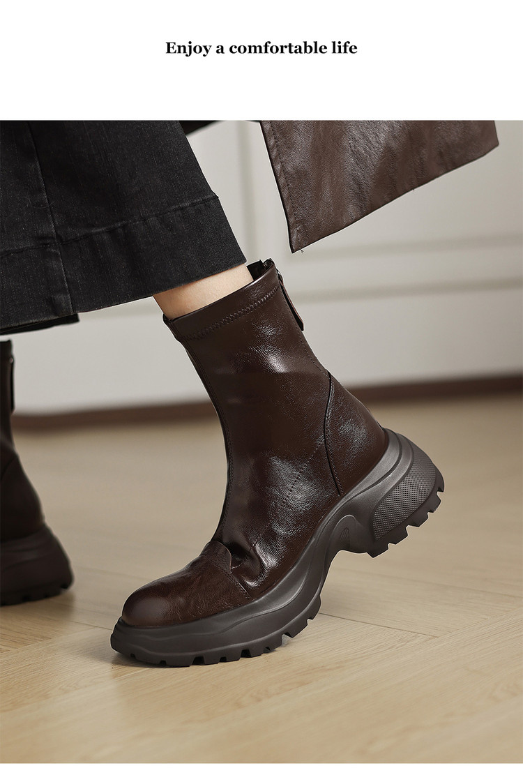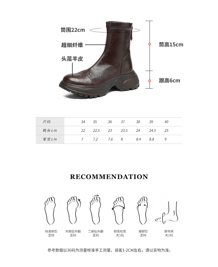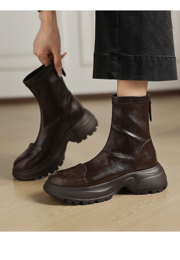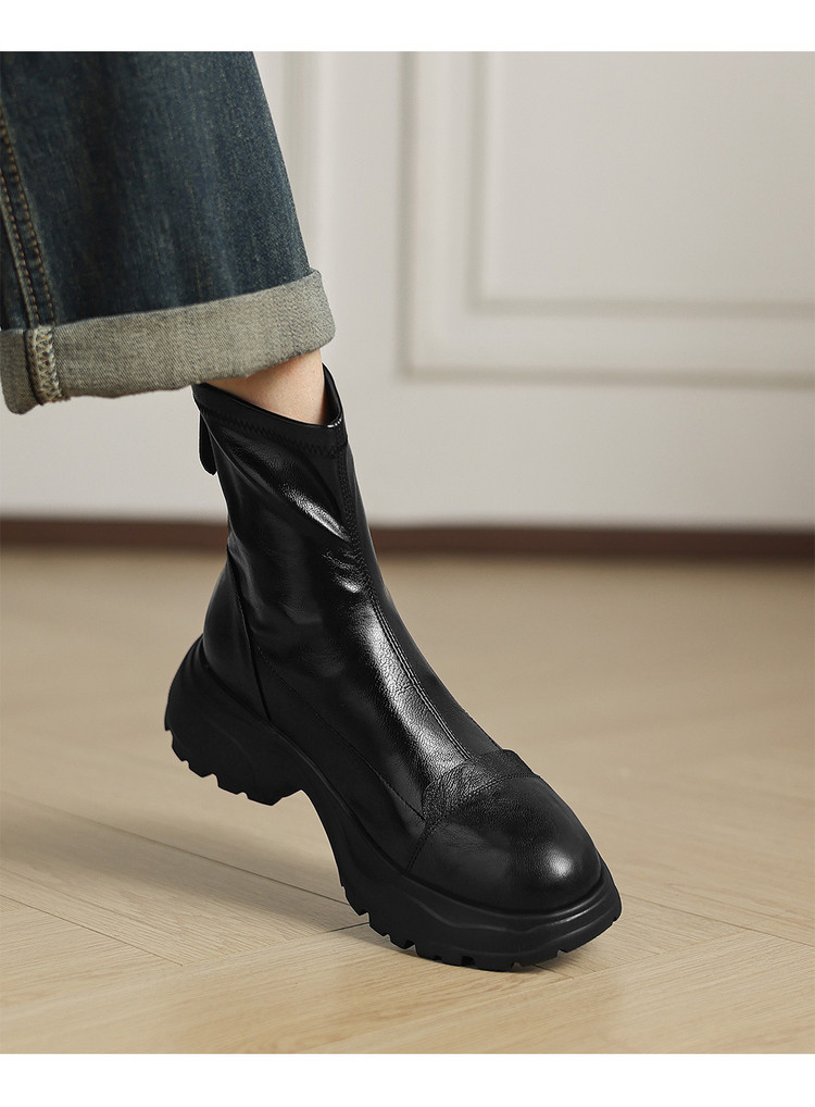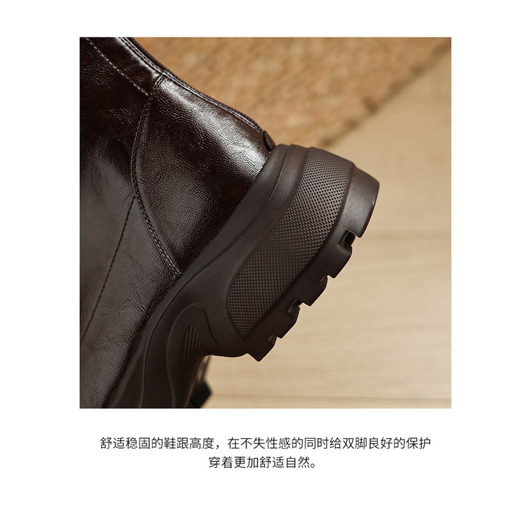 Ech&yolo厚底头层羊皮拼接超好穿后拉链新款短靴HB-1289