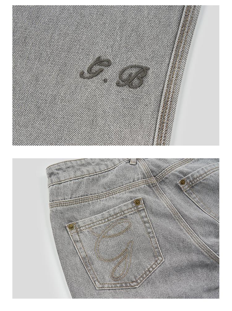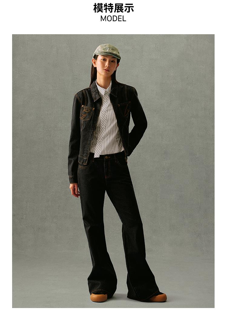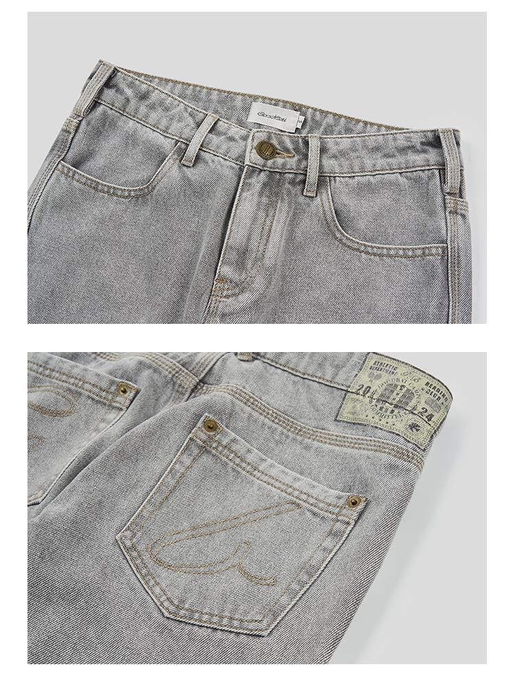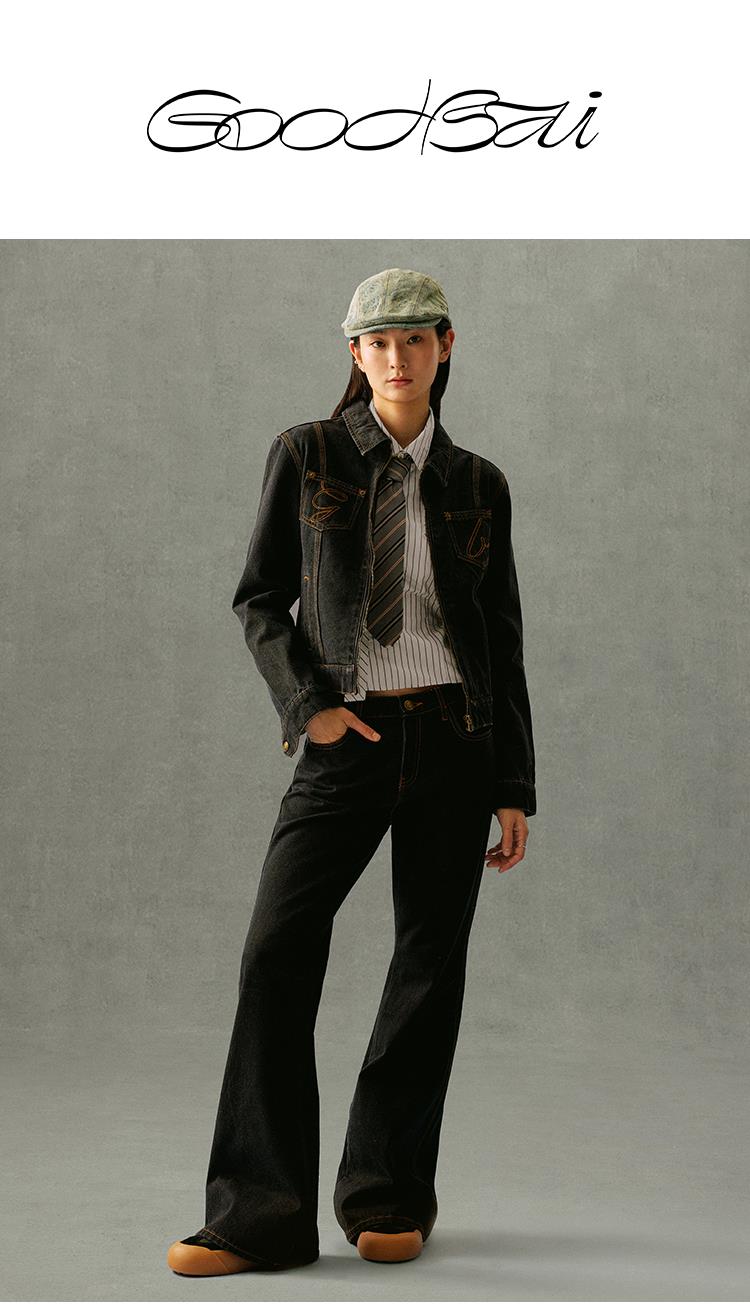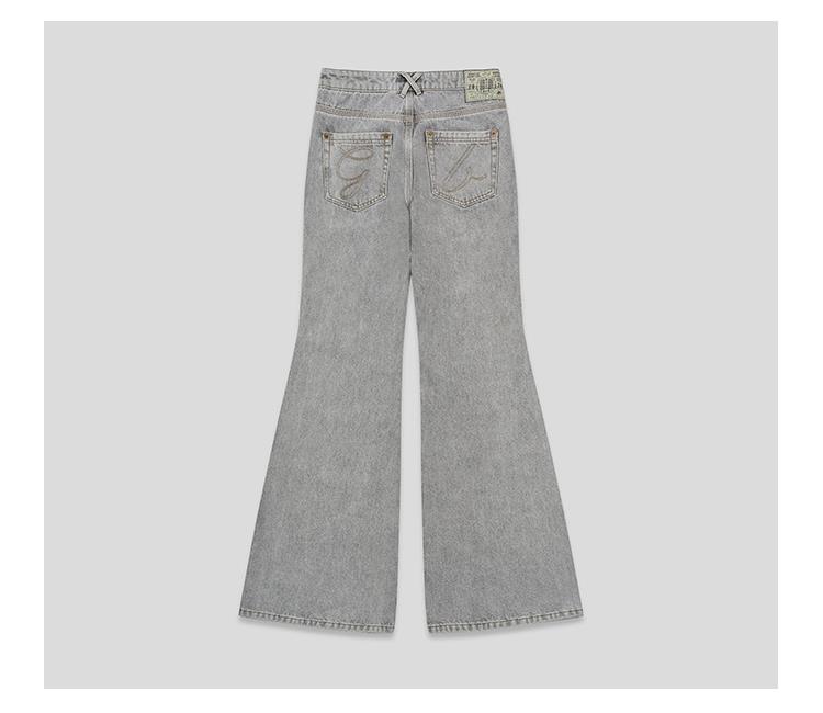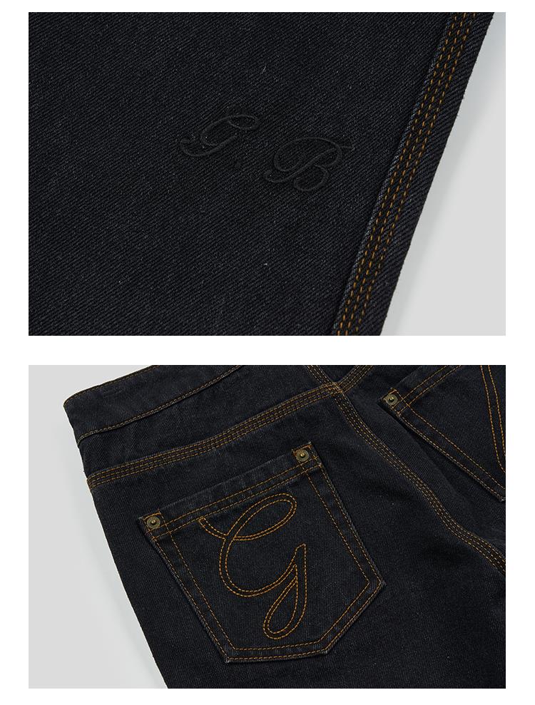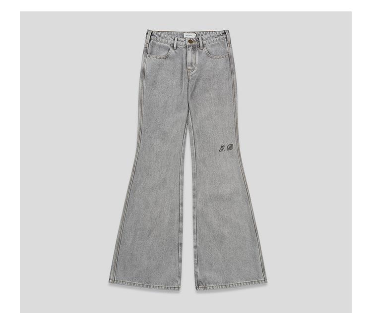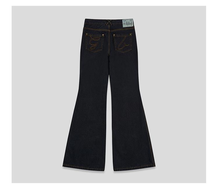 GOODBAI G.B logo膝盖刺绣微喇牛仔高腰长裤