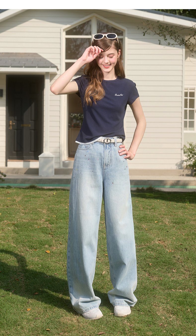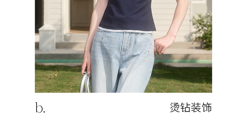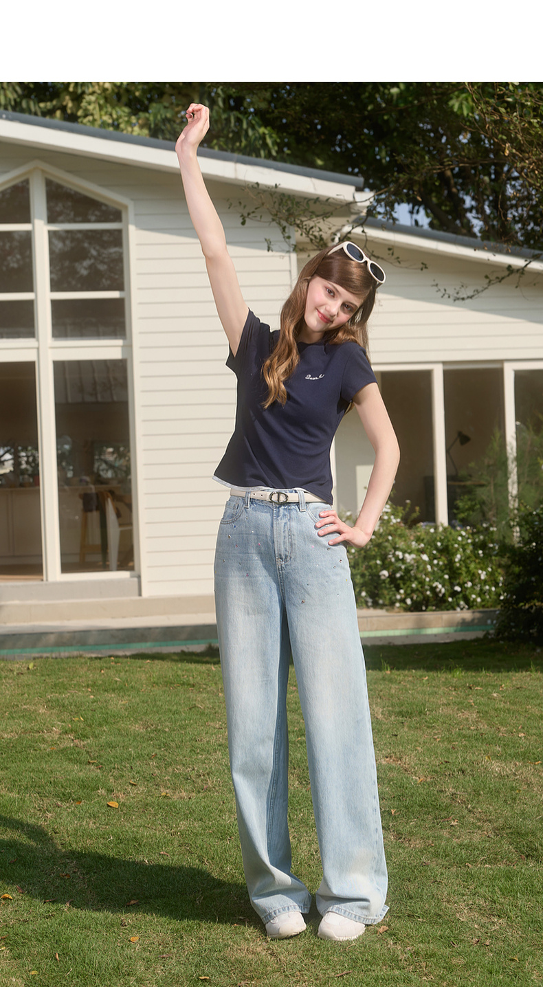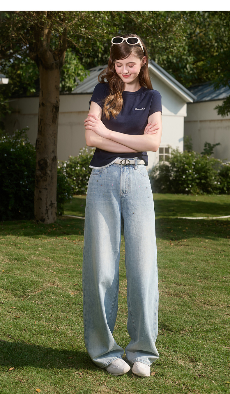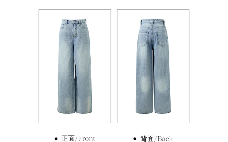 【100棉】三彩独醒2026春季新款复古烫钻牛仔裤宽松直筒裤长裤F