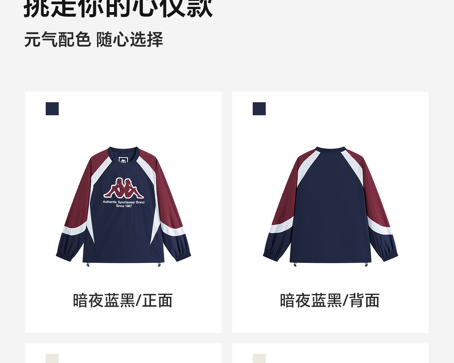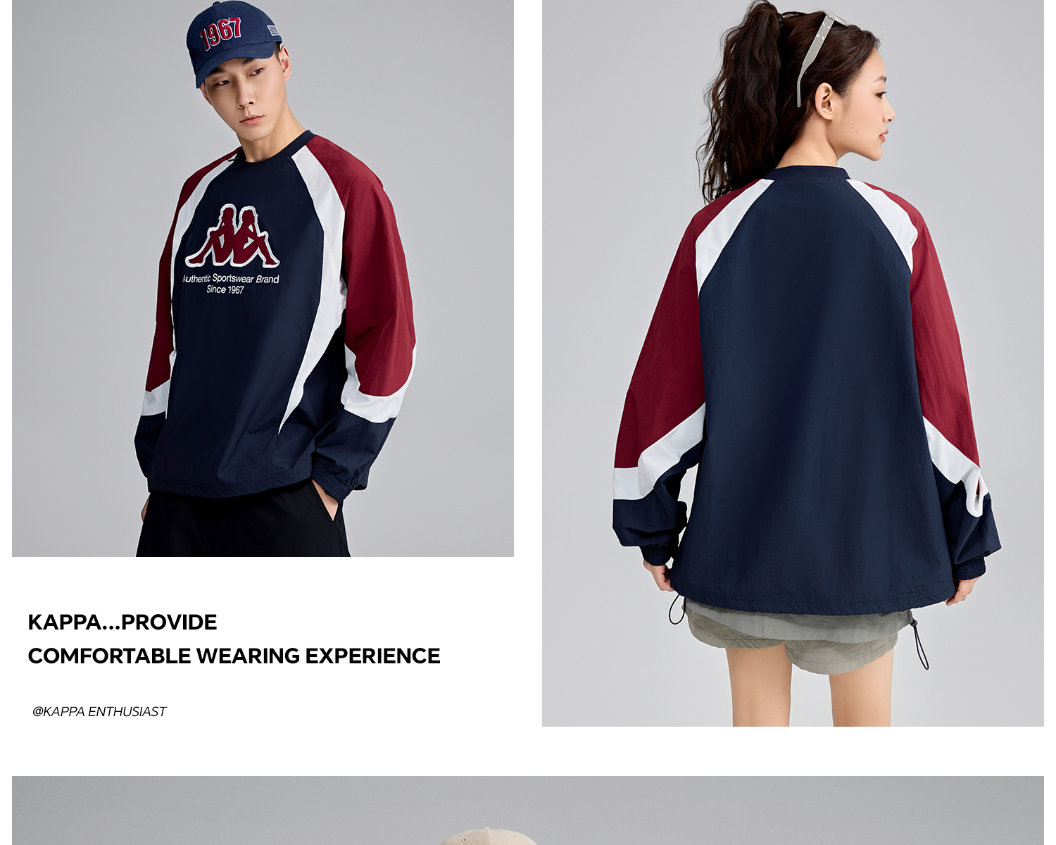 Kappa卡帕背靠背新款运动卫衣男款休闲防泼水长袖宽松圆领上衣女K0FW2XY01