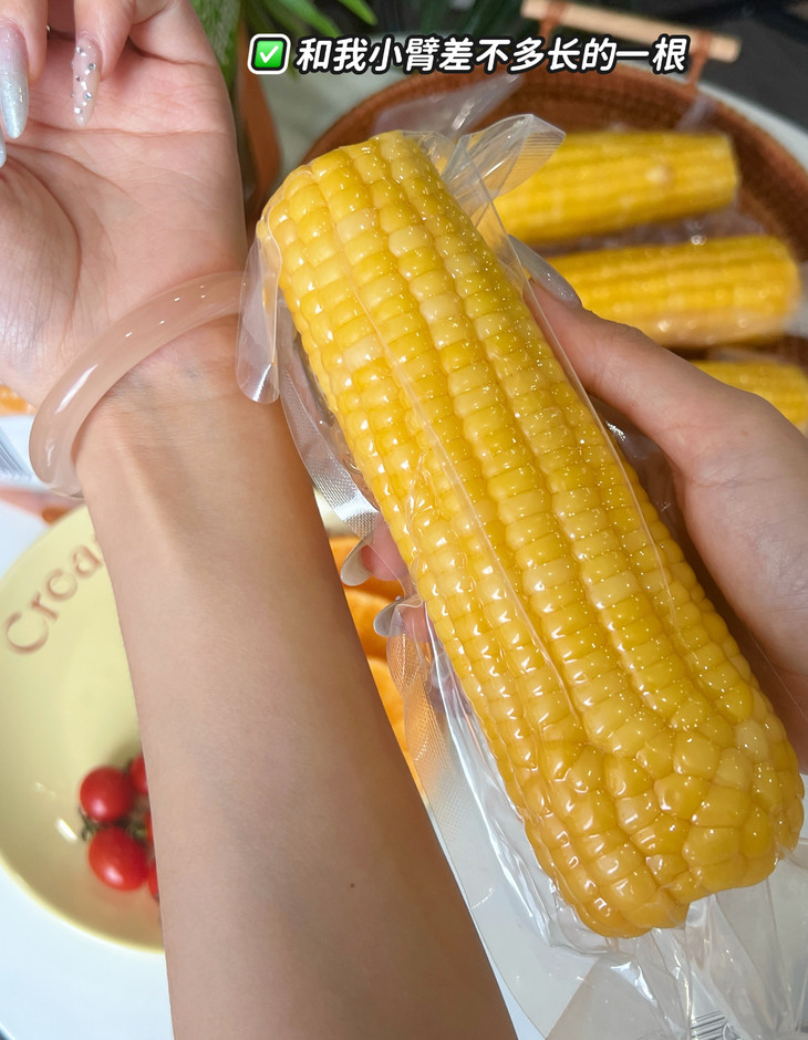 采用当季新鲜玉米🌽, 连包装一起煮上20分钟就可以享用啦, 简直就是懒人福音。 打开包装,浓郁的玉米香气扑面而来, 咬一口,口感脆嫩清甜,汁水很足!! 玉米粒也特别饱满,吃一根饱腹感就特别强。 关键是热量还低,用它来当减脂期的碳水来源,实在合适啦。 有了它,谁还愿意吃干巴巴的减脂餐~