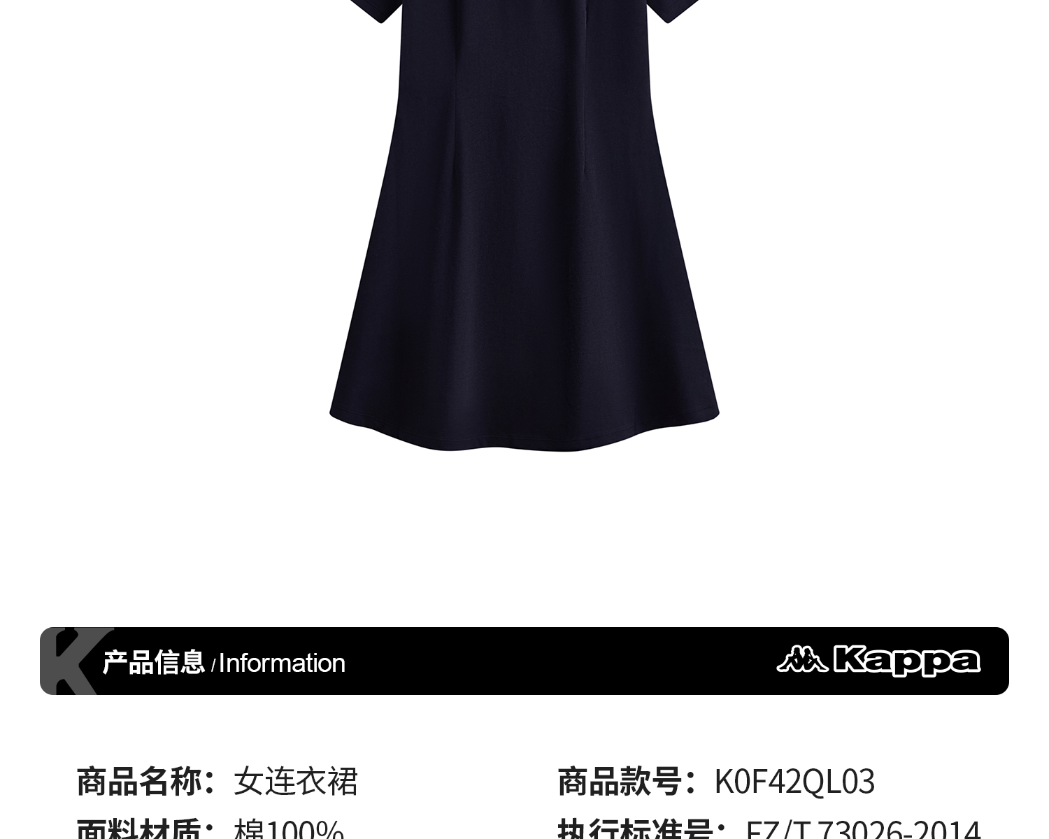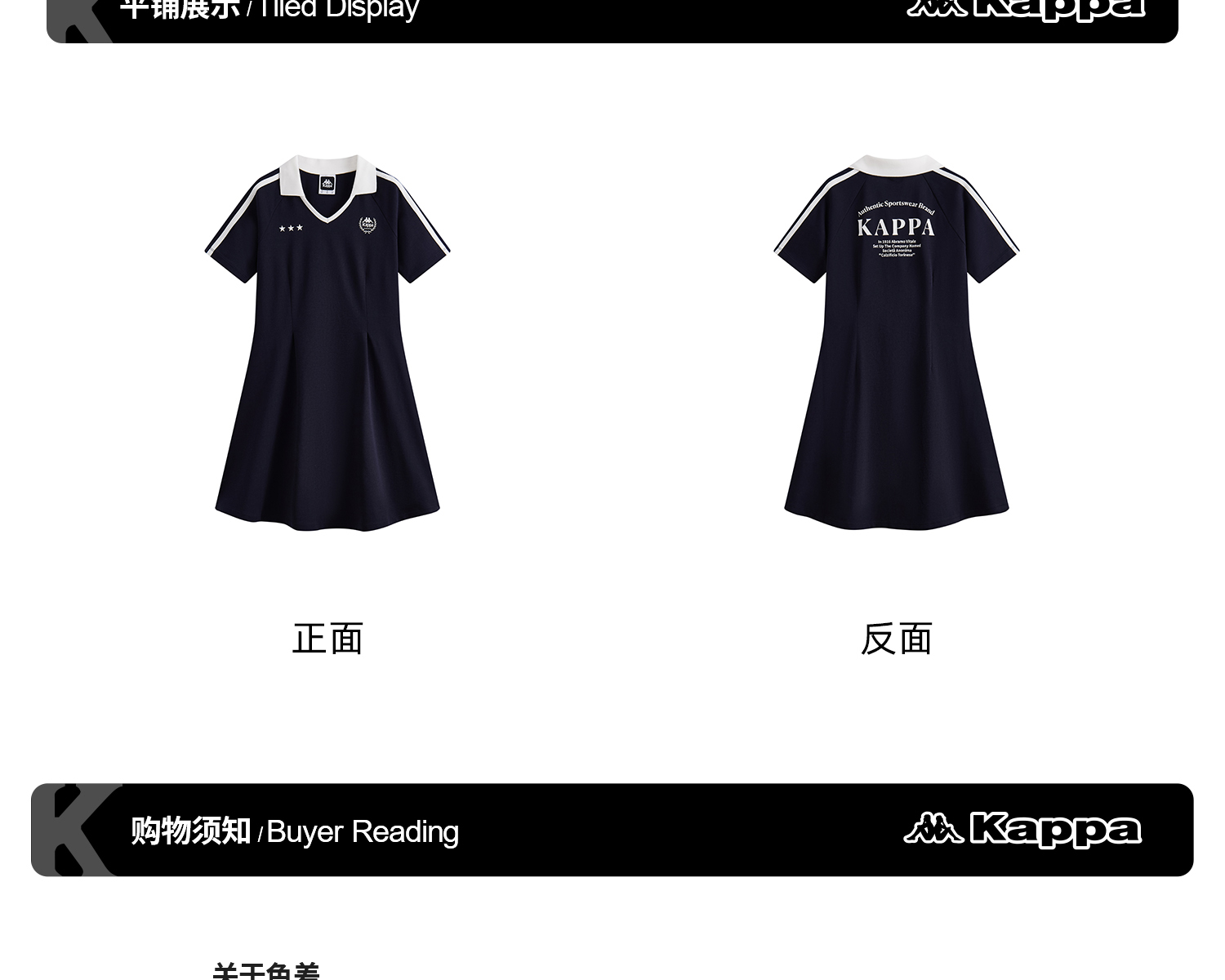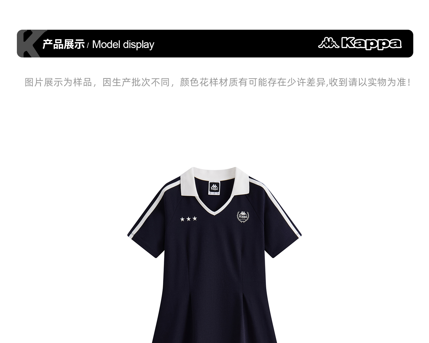 Kappa卡帕背靠背夏季运动连衣裙女新款休闲纯棉短袖收腰网球裙子K0F42QL03