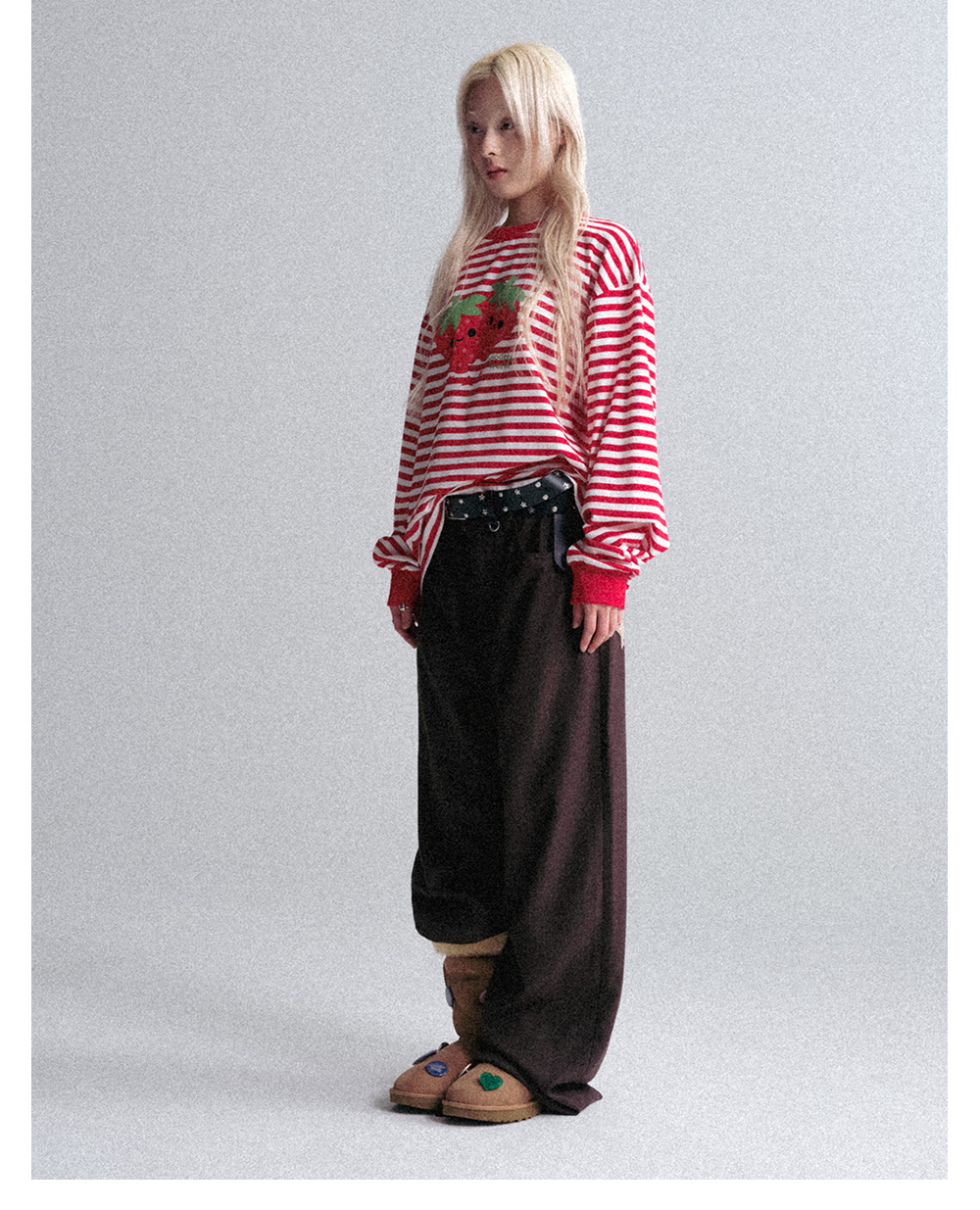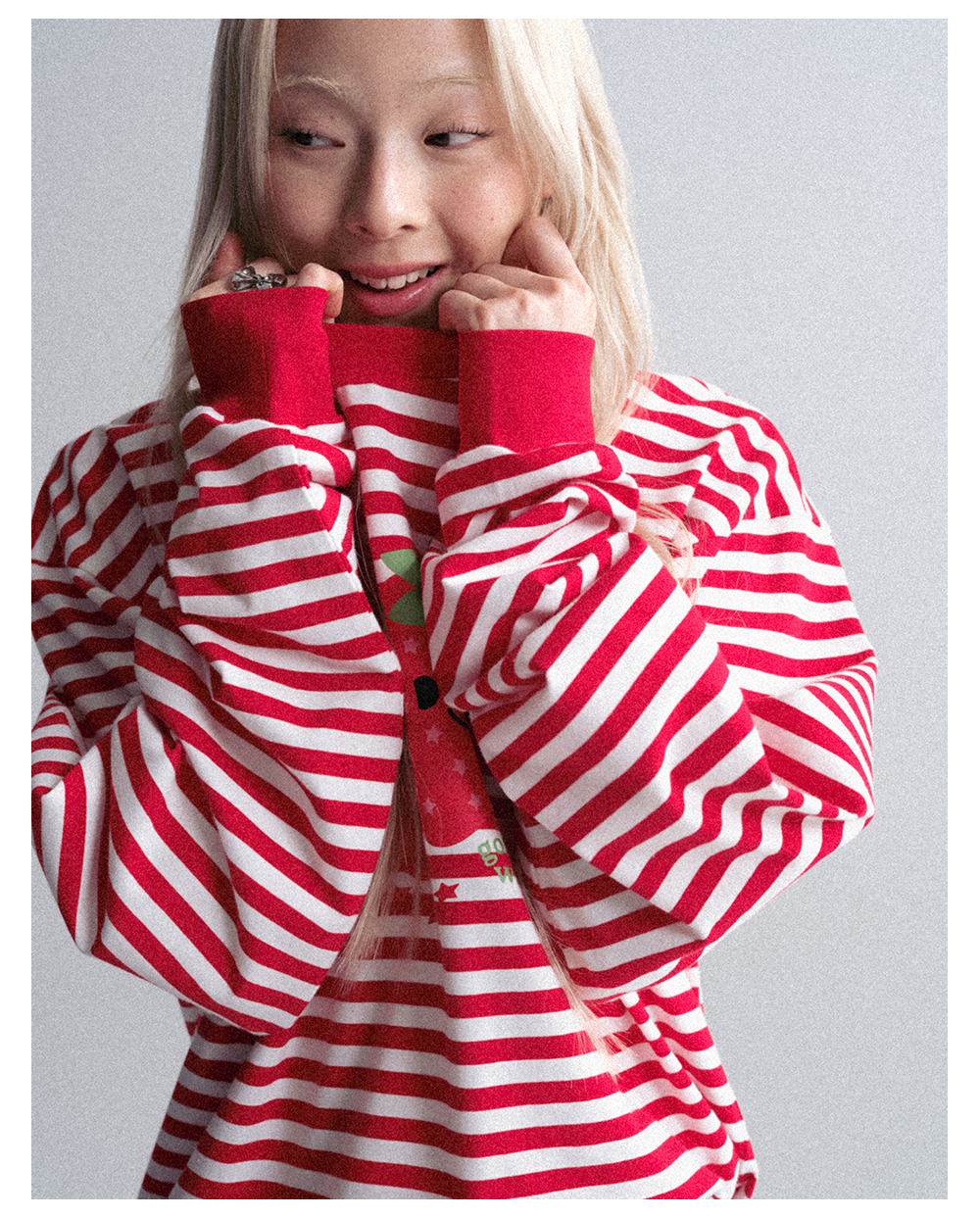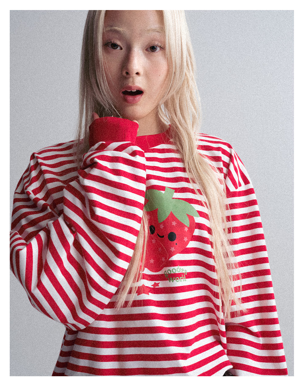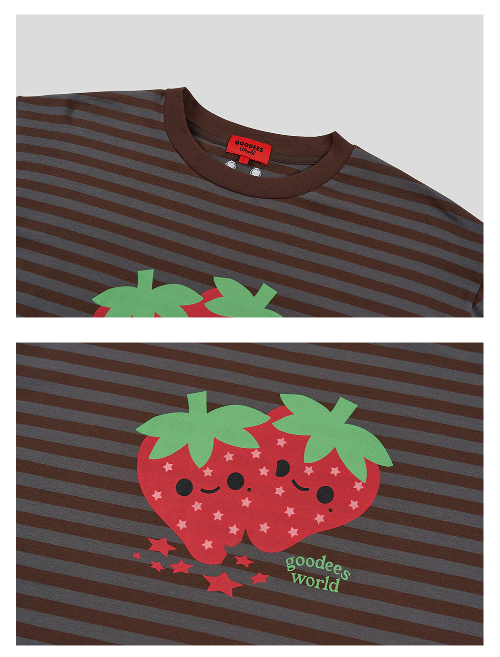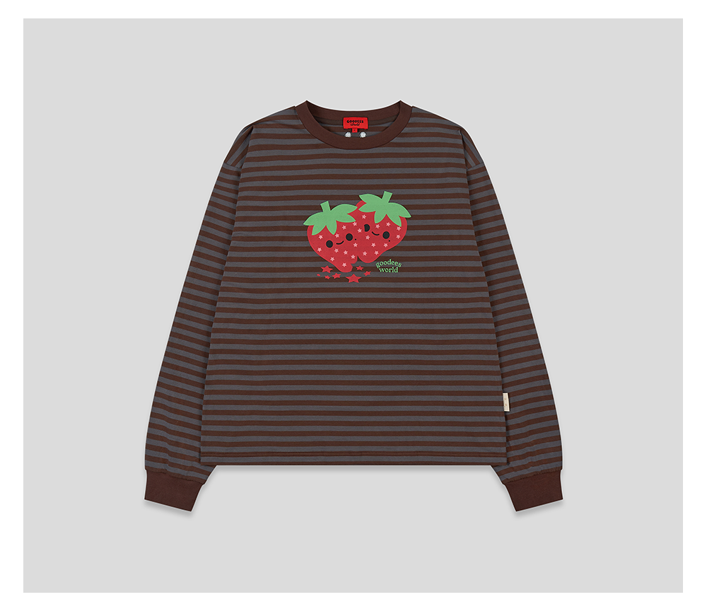 GOODBAI GOODEES 新款休闲趣味草莓印花条纹长袖T恤