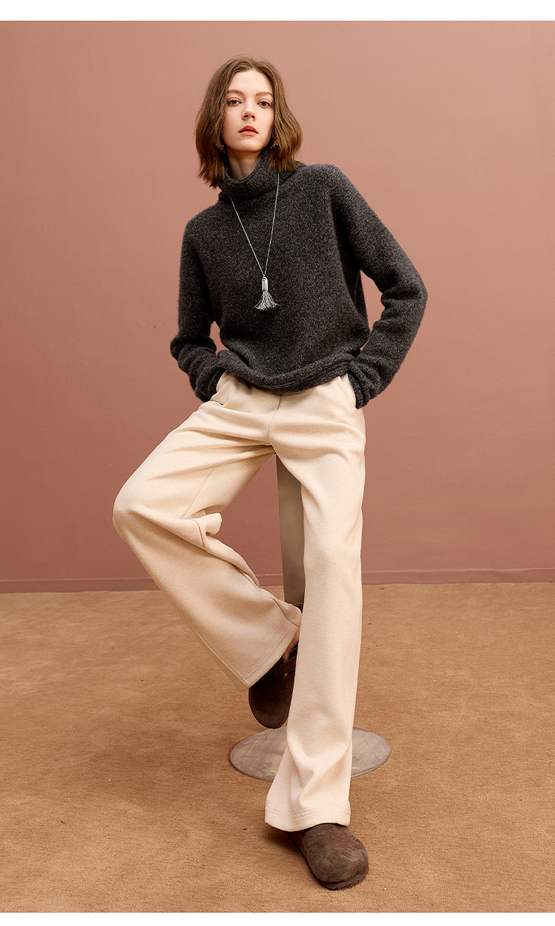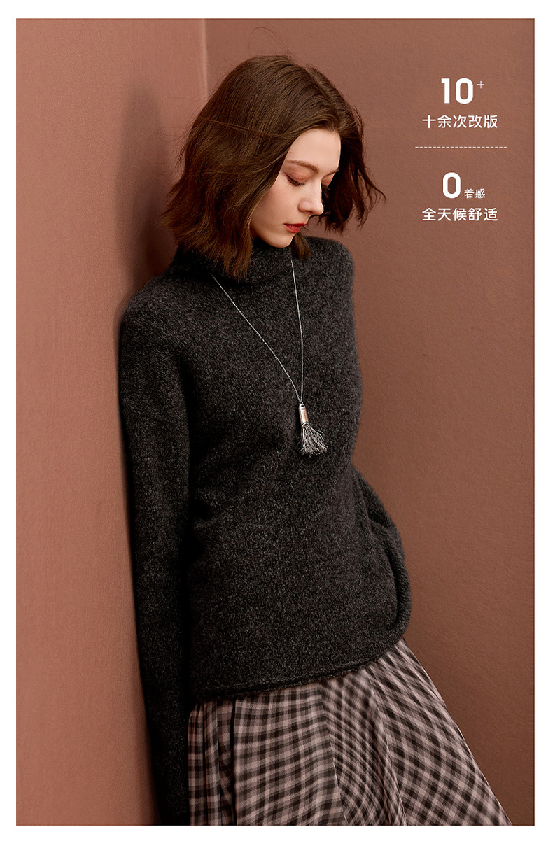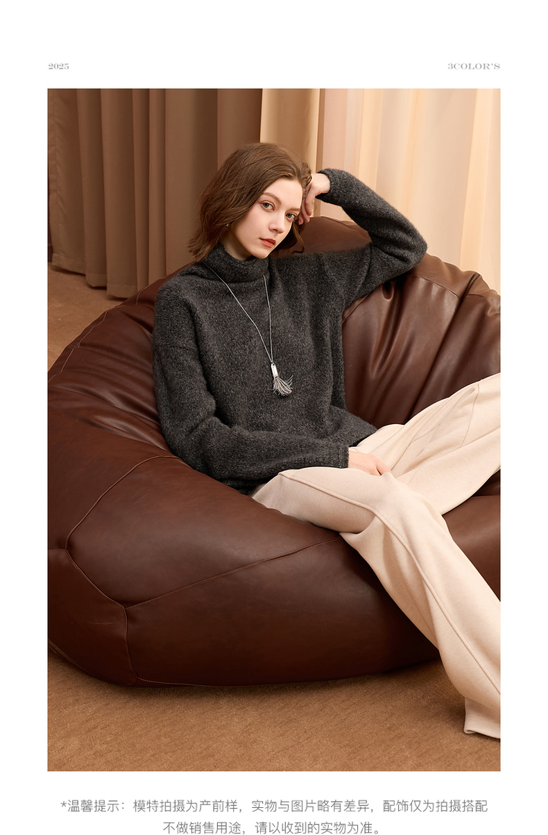 【山羊绒】三彩2025冬季新款宽松高领针织衫长袖套头毛衫慵懒S