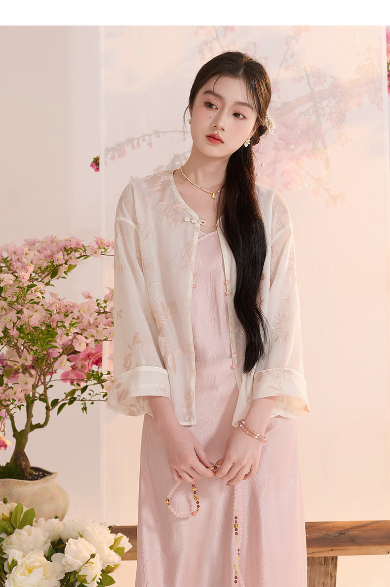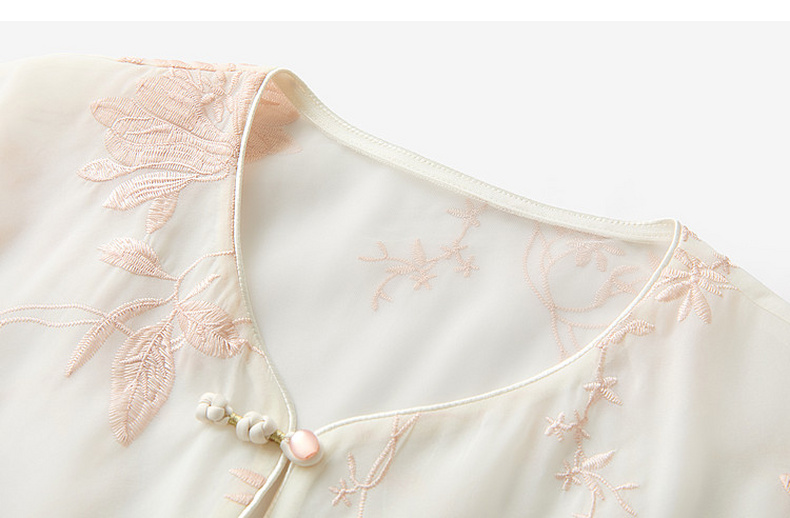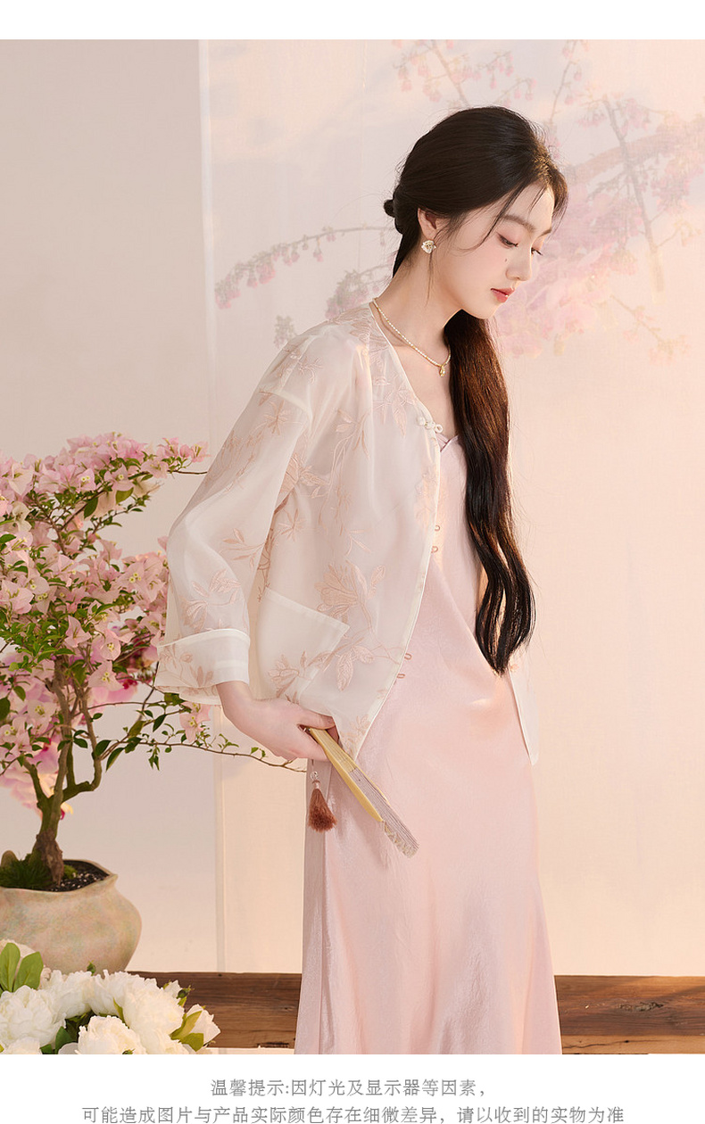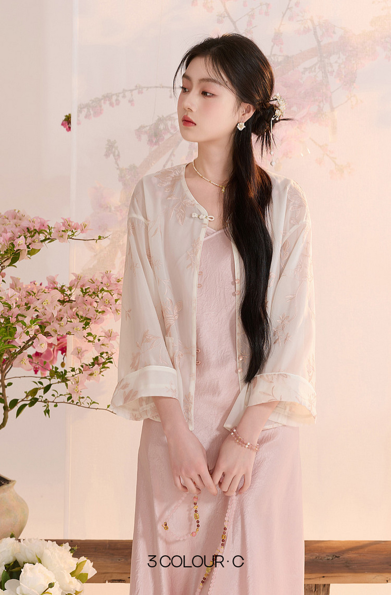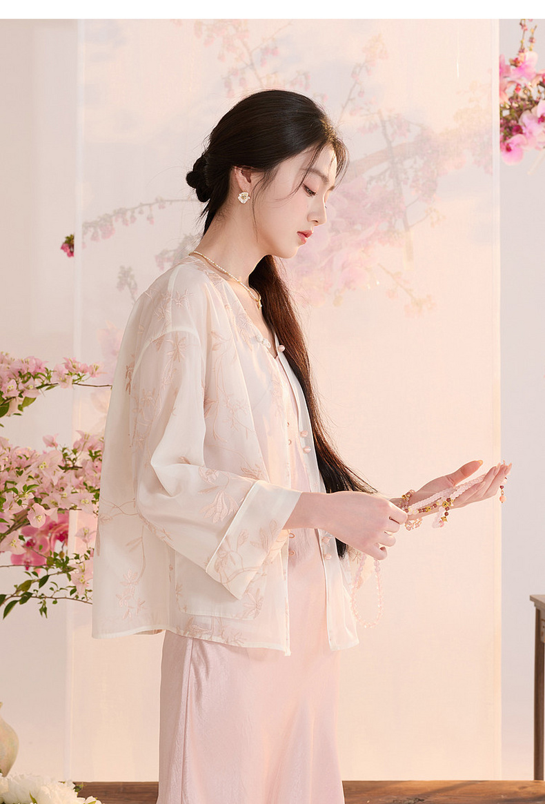 三彩【玉兰清韵】2026夏季新款欧根纱绣花外套盘扣开衫宽松上衣C