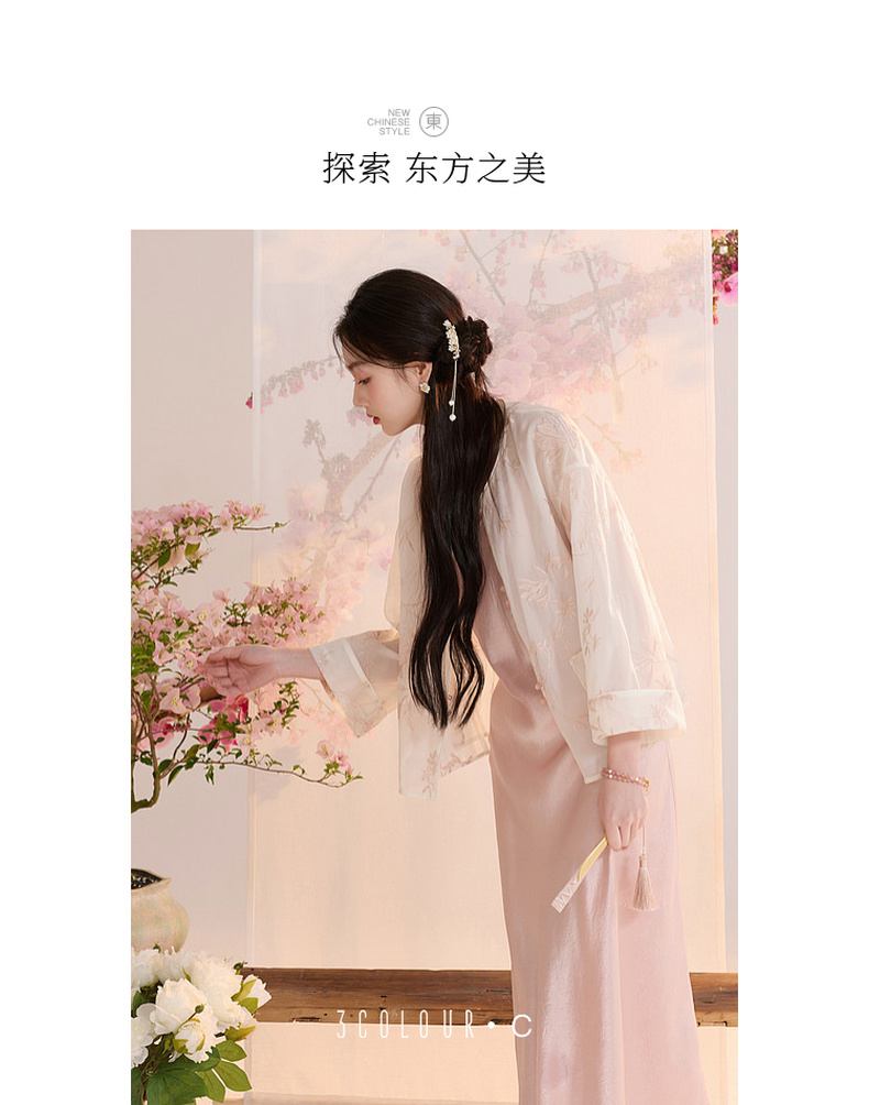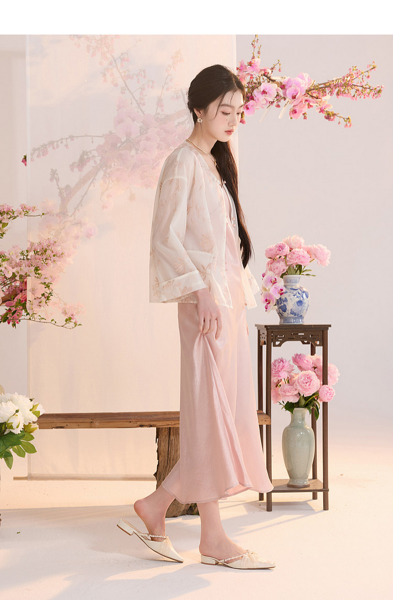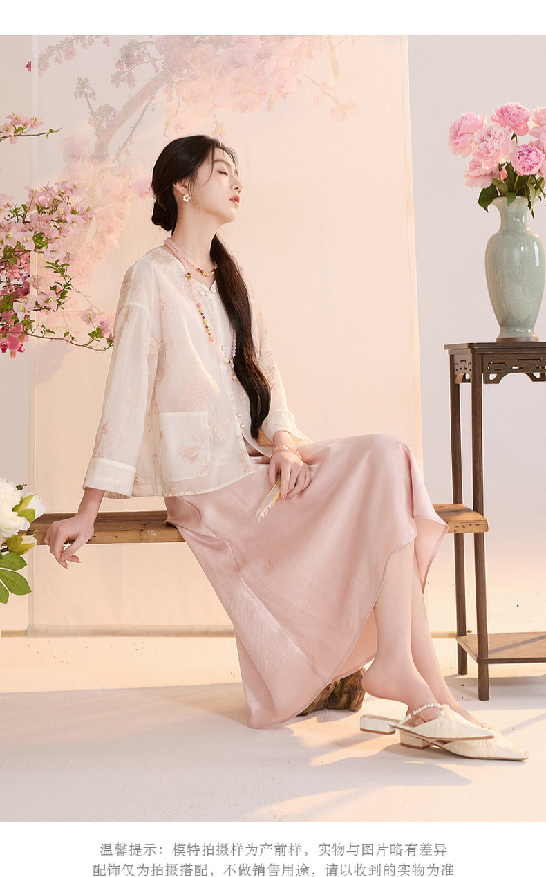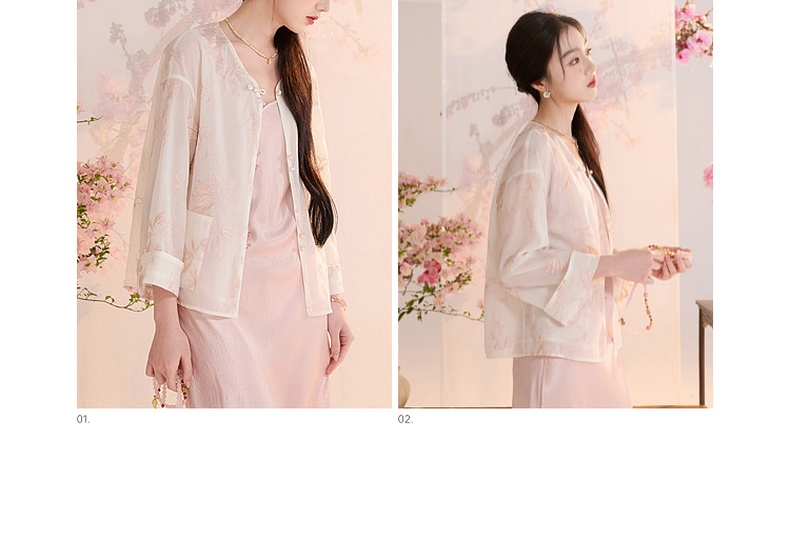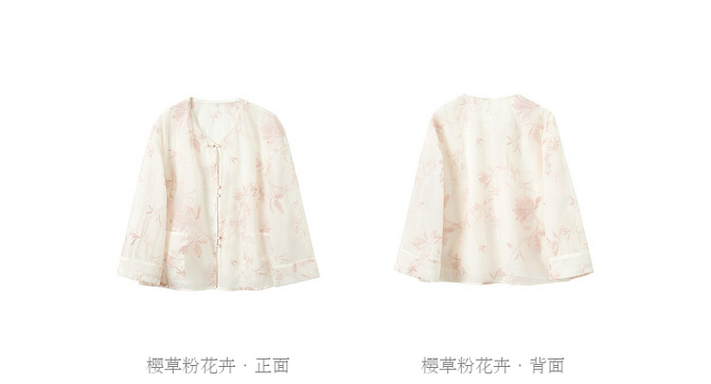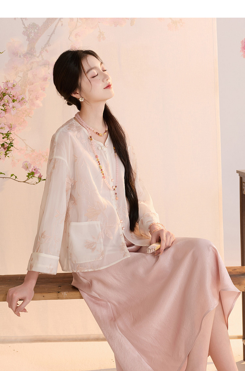 三彩【玉兰清韵】2026夏季新款欧根纱绣花外套盘扣开衫宽松上衣C