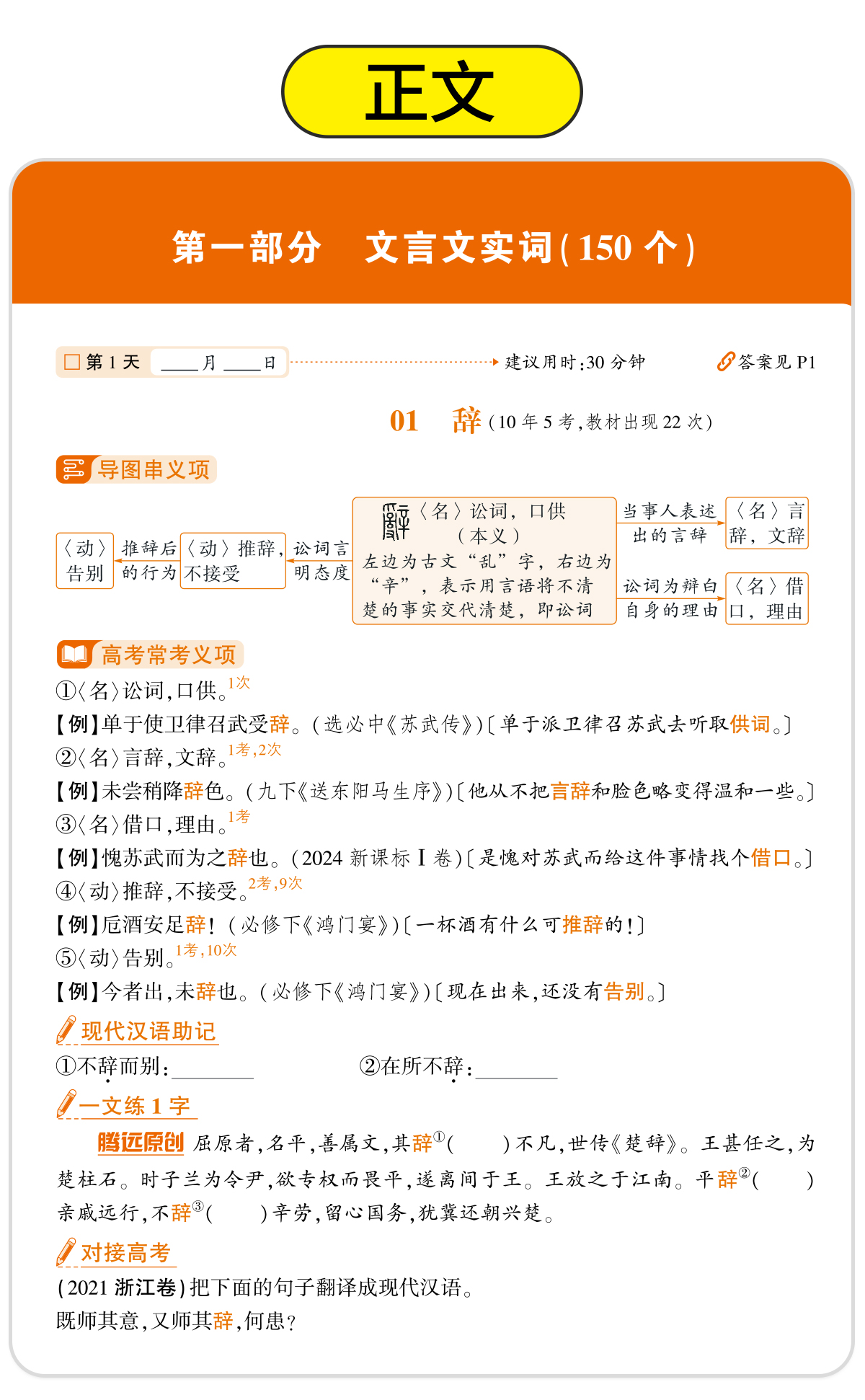 2026腾远高中文言文实词高一二三语文常识积累高考一轮复习语文基础知识点手册万唯词典语文专项训练晨读晚练高考