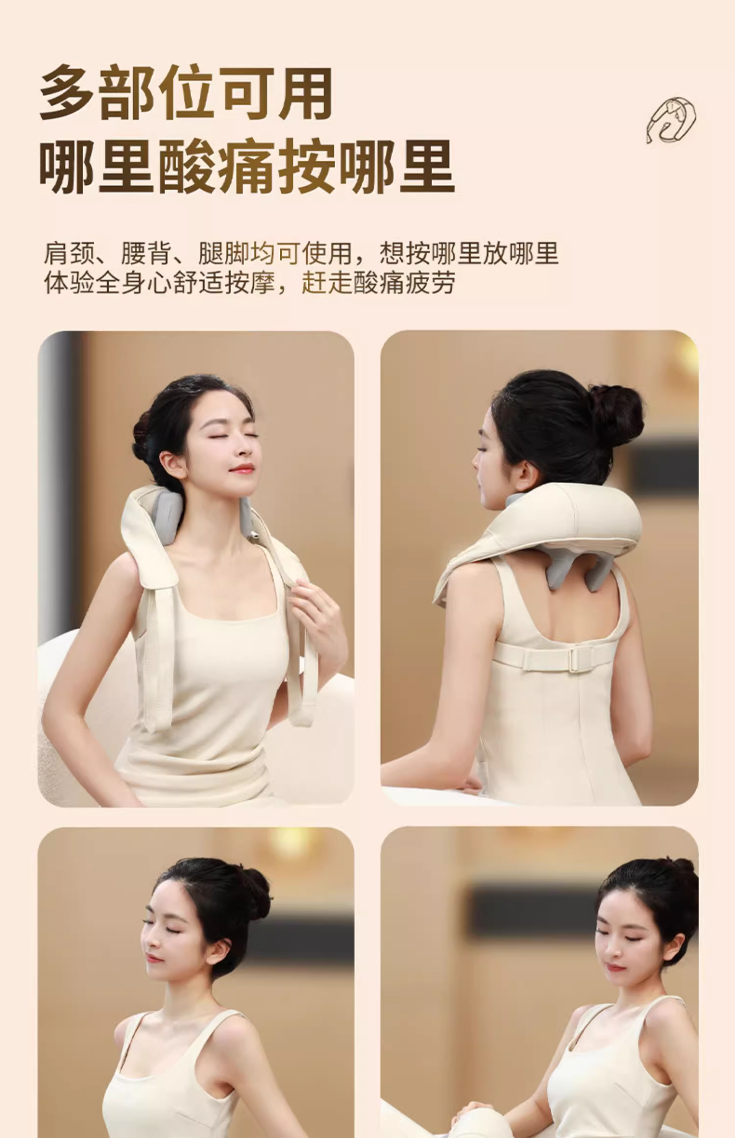 最右ZYOO肩颈按摩仪 人体仿生便携披肩斜方肌脖子热敷颈椎按摩器