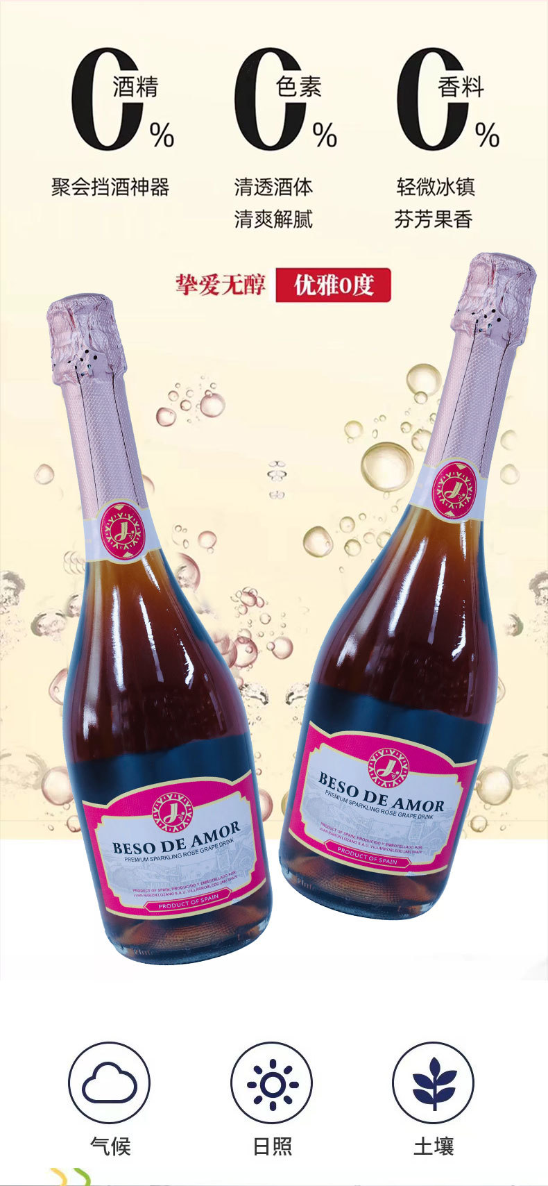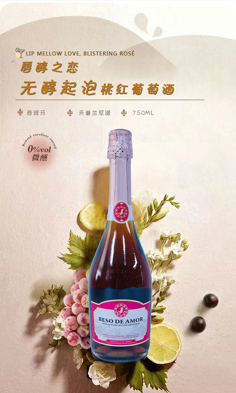 【北京仓】唇醇之恋无醇桃红起泡葡萄酒750ml