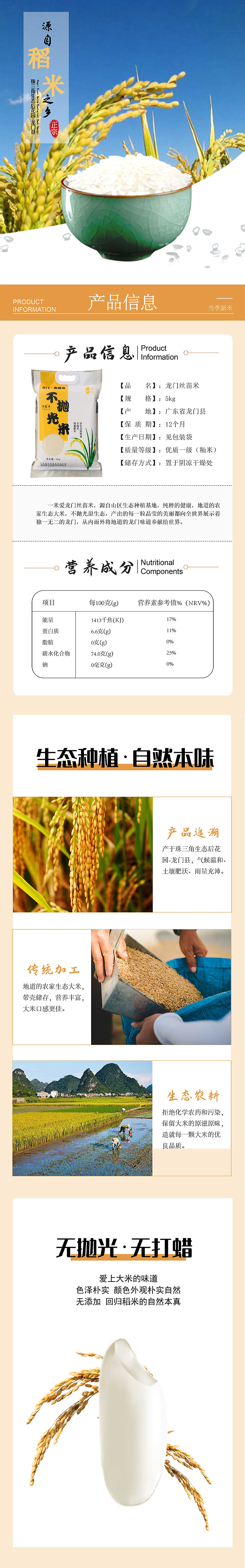 【顺丰包邮】广东惠州龙门一米爱龙门丝苗米(不抛光米)5kg/袋