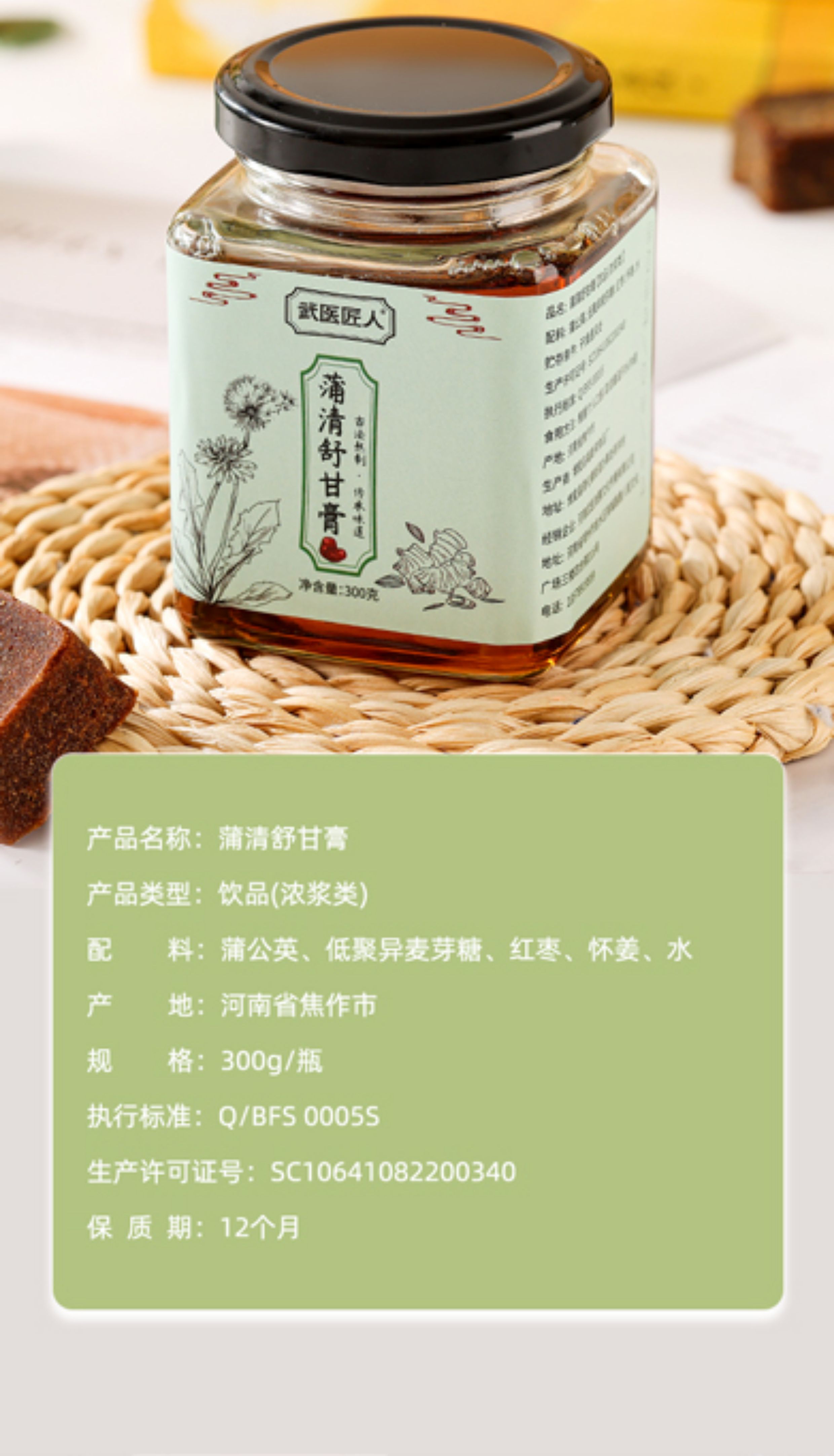 武医匠人蒲清舒甘膏jie节mian黄乳房增s睡眠焦虑肝火护肝舒肝膏