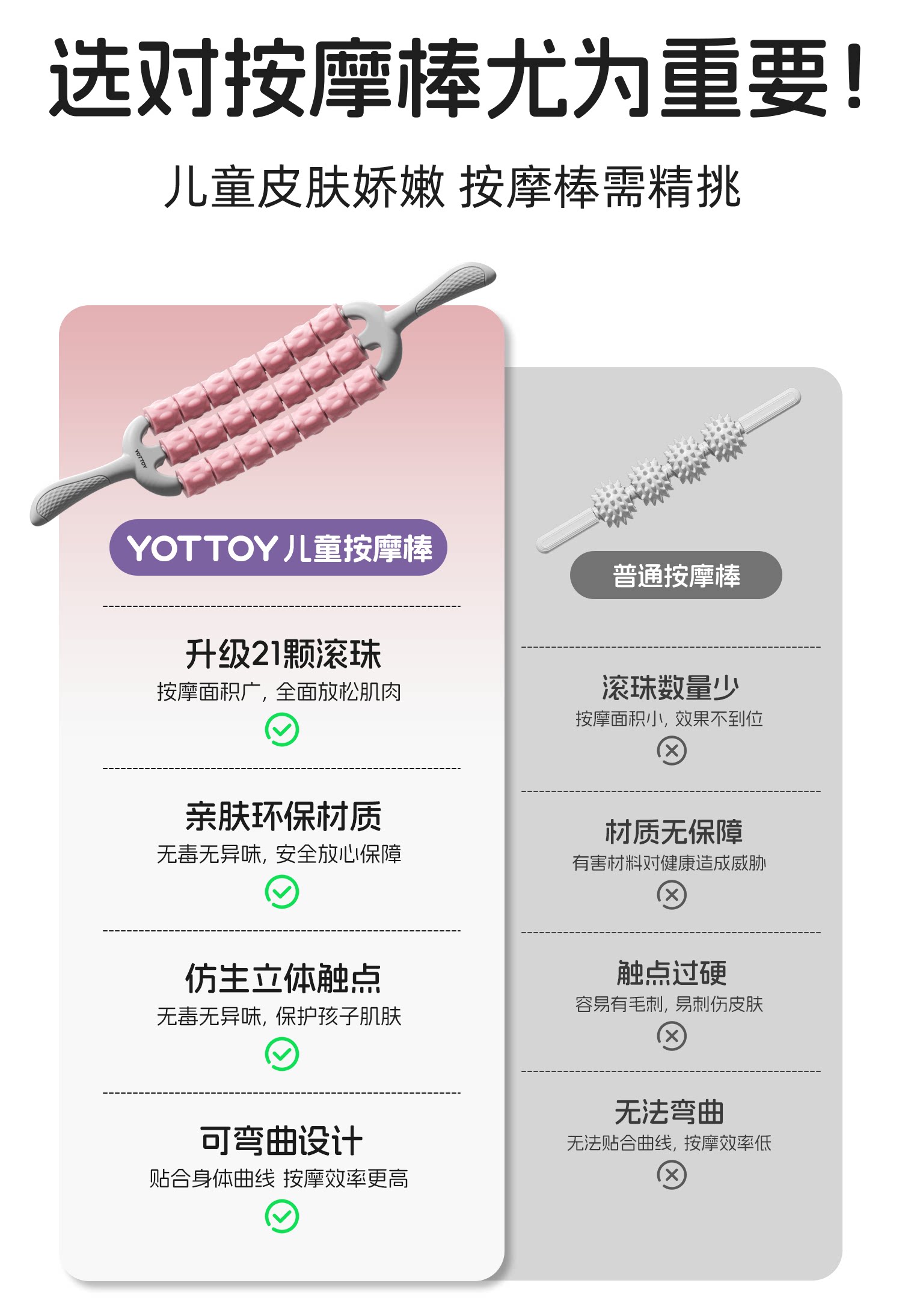 儿童可弯曲按摩棒肌肉放松滚轮棒长高筋膜棒狼牙棒按摩滚轴按摩器