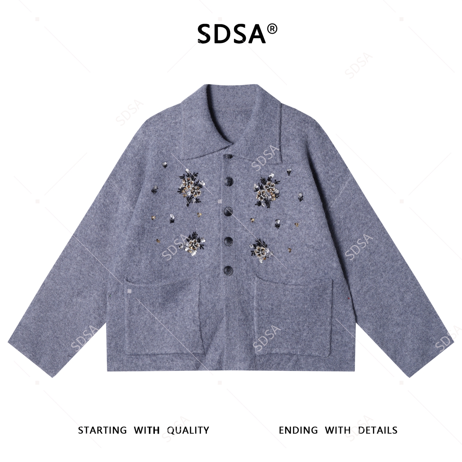 2716SDSA秋冬新款痞帅男装潮牌手工珠花装饰开衫翻领针织衫百搭毛衣