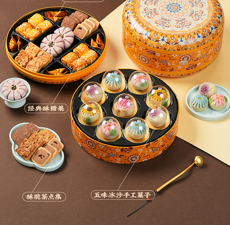 【元正花宴礼盒】皇家尚食局国风糕点礼盒装圣诞节桃山流心送长辈新年伴手礼物860g