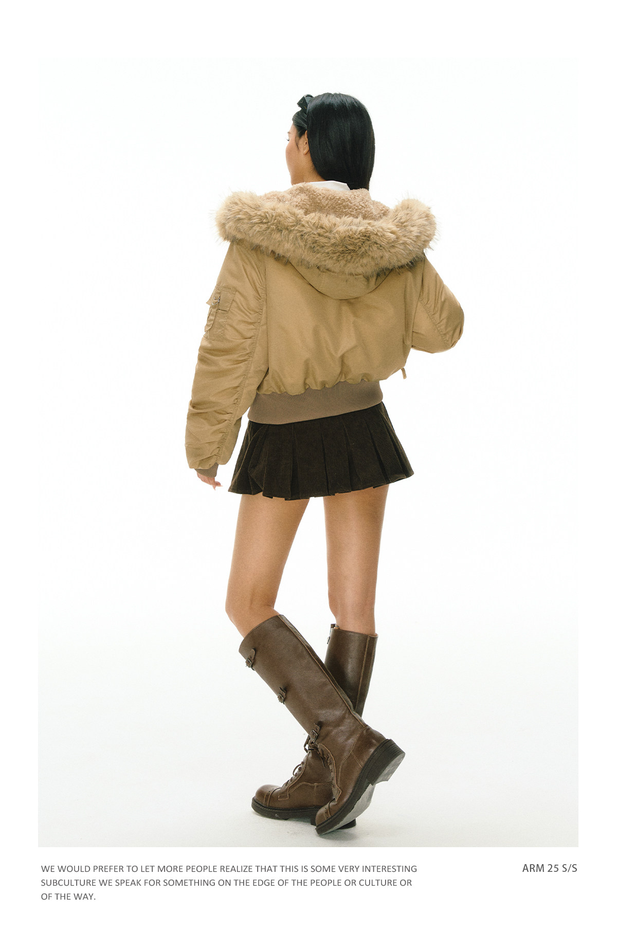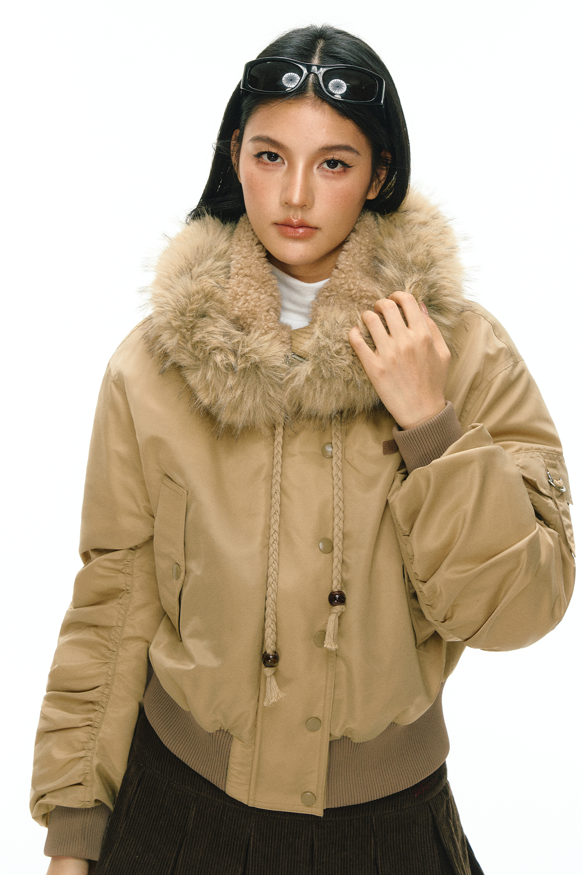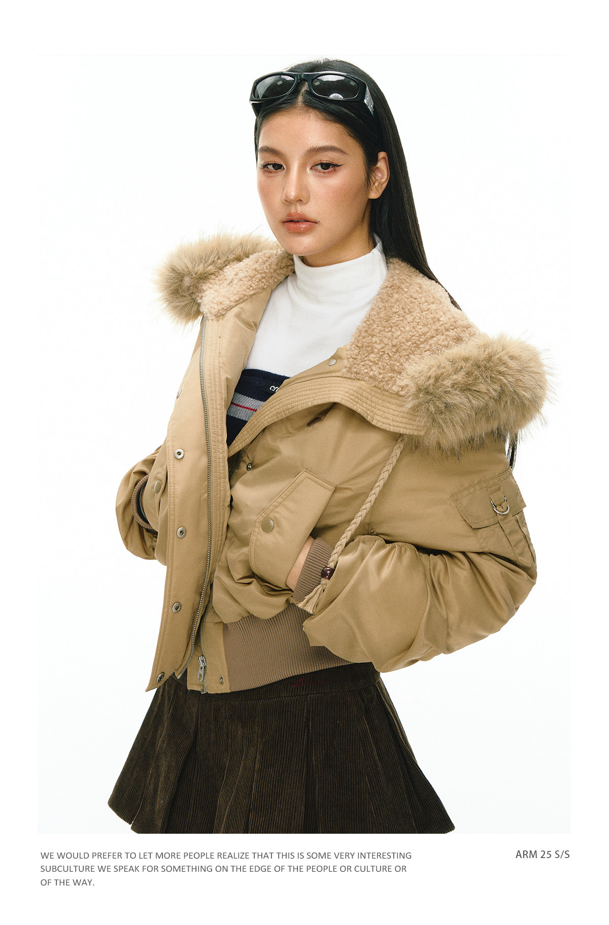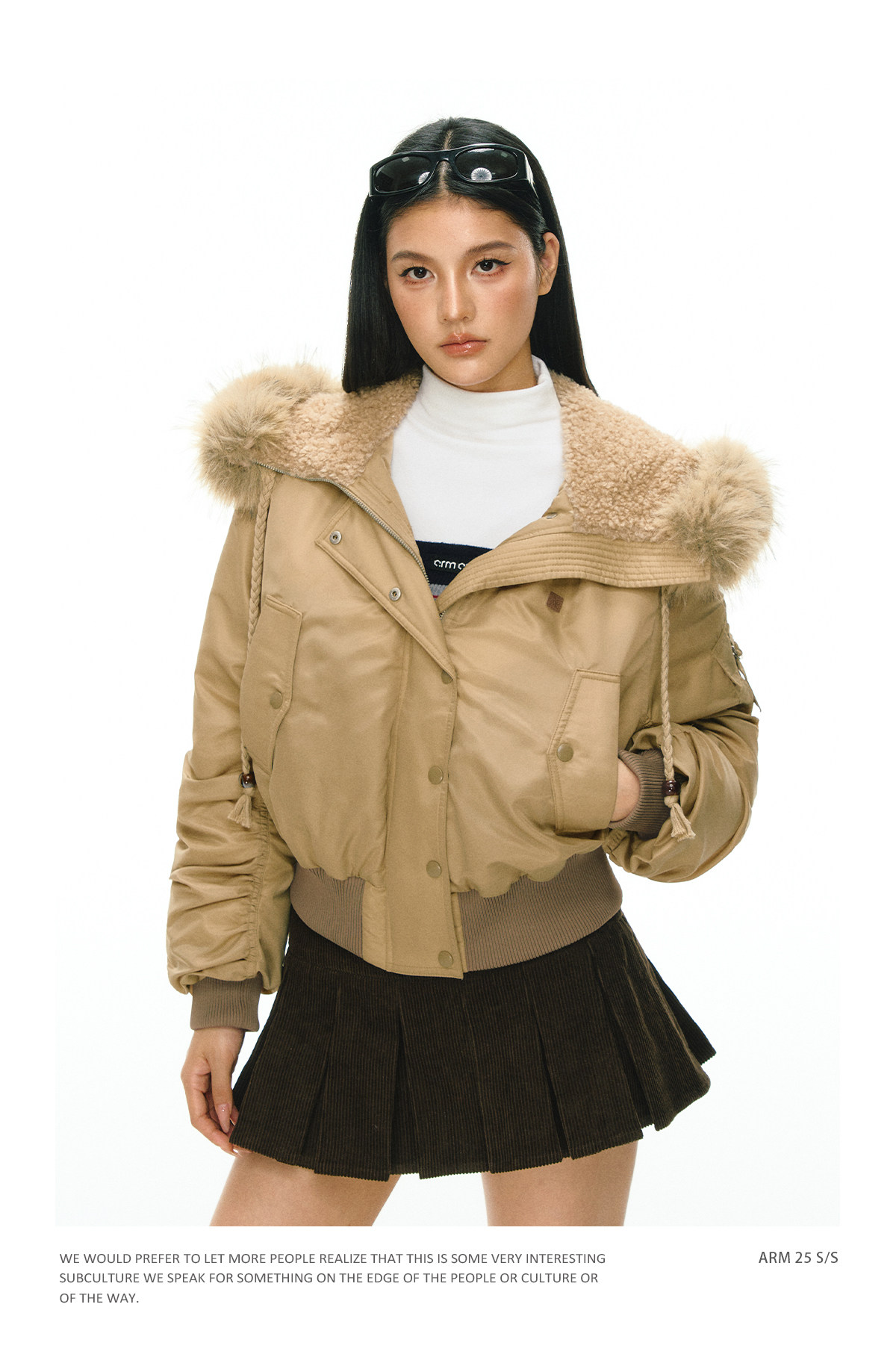 Ariseism 美式复古设计感可脱卸连帽棉服外套女冬季新款修身棉衣