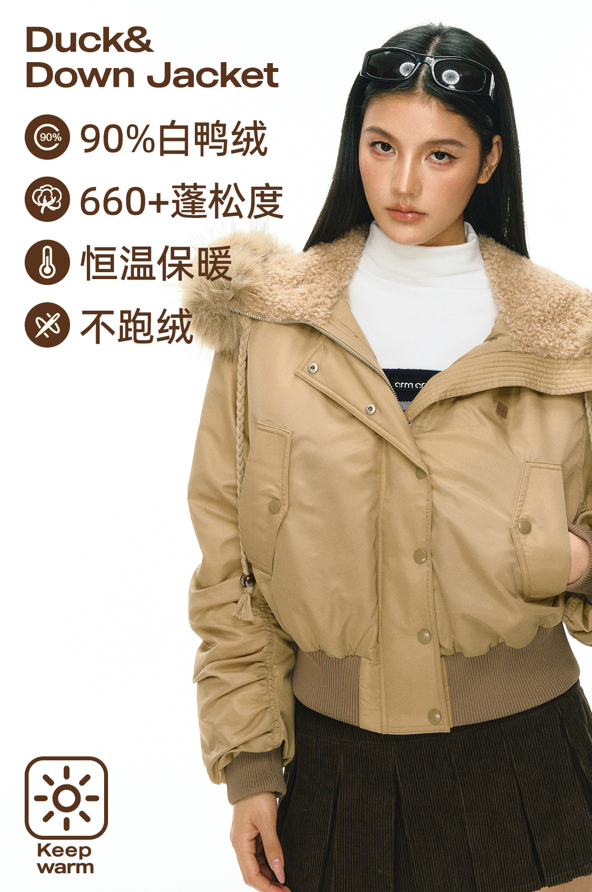 Ariseism 美式复古设计感连帽羽绒服女冬季新款加厚保暖外套