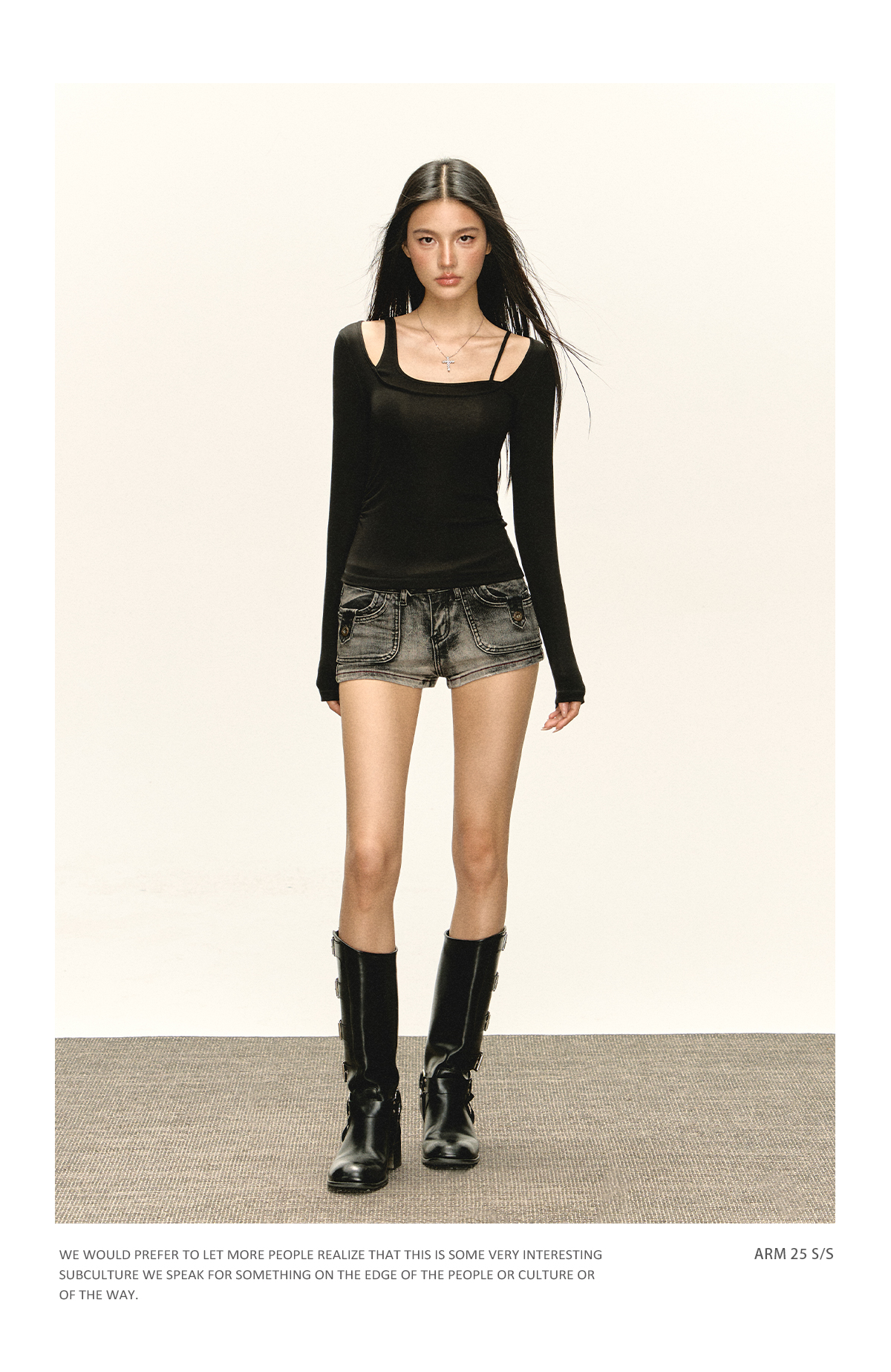 Ariseism 美式复古斜肩长袖上衣+短裤两件套早秋新款套装女