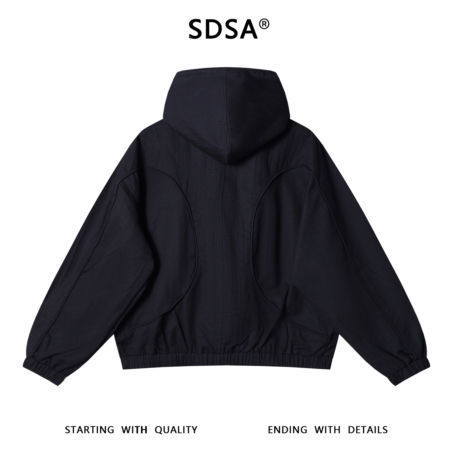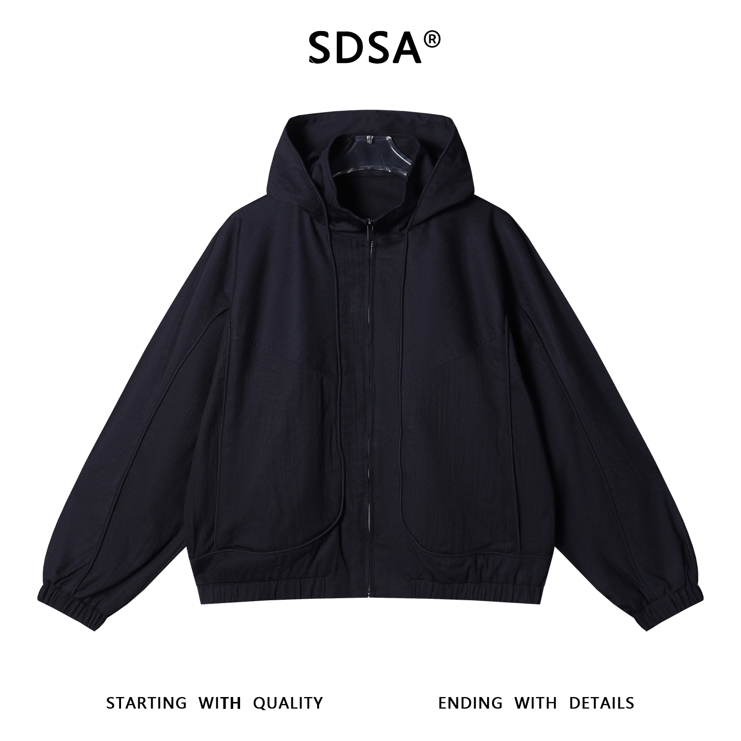 53066SDSA男士秋冬新款痞帅男装纯色假两件立领连帽夹克休闲宽松外套