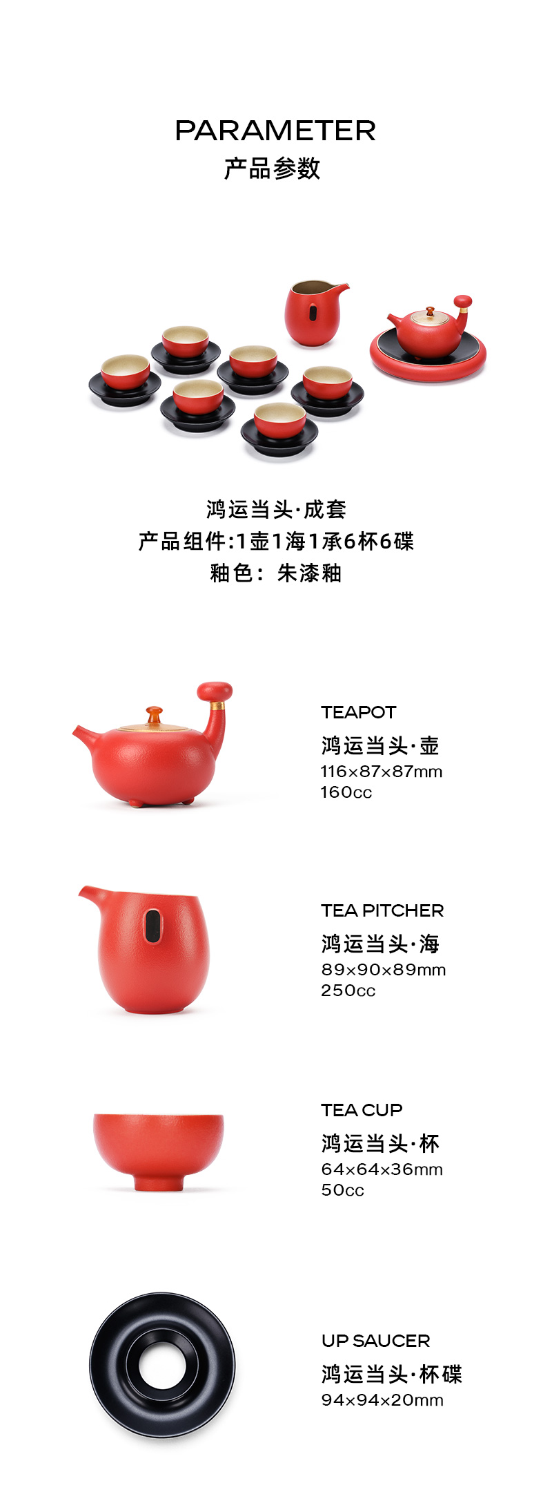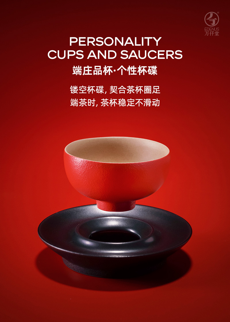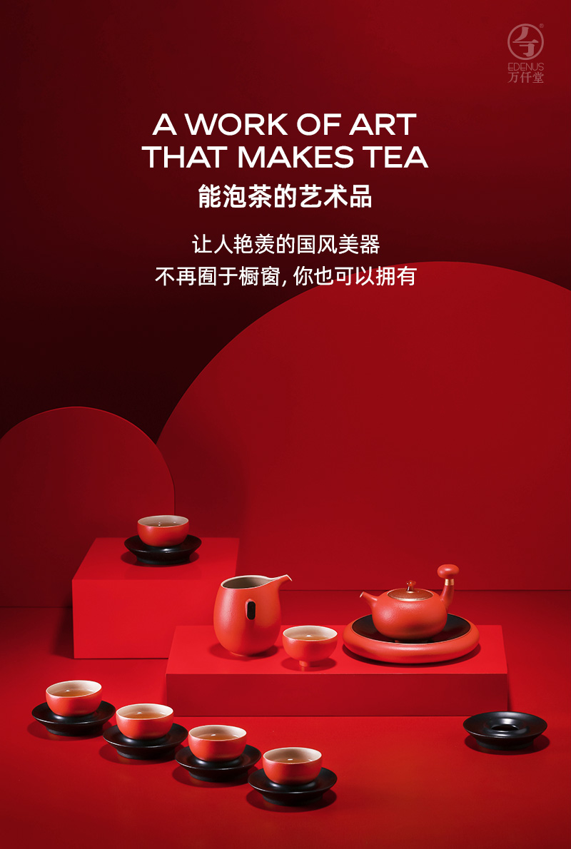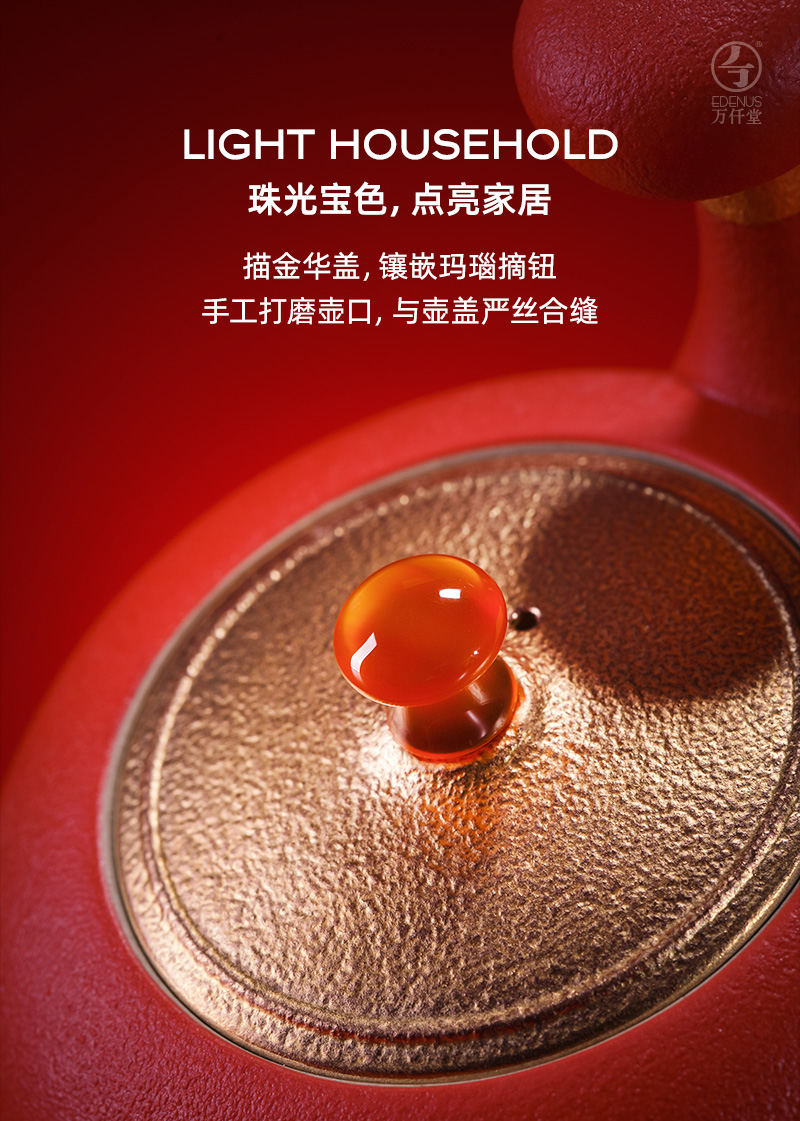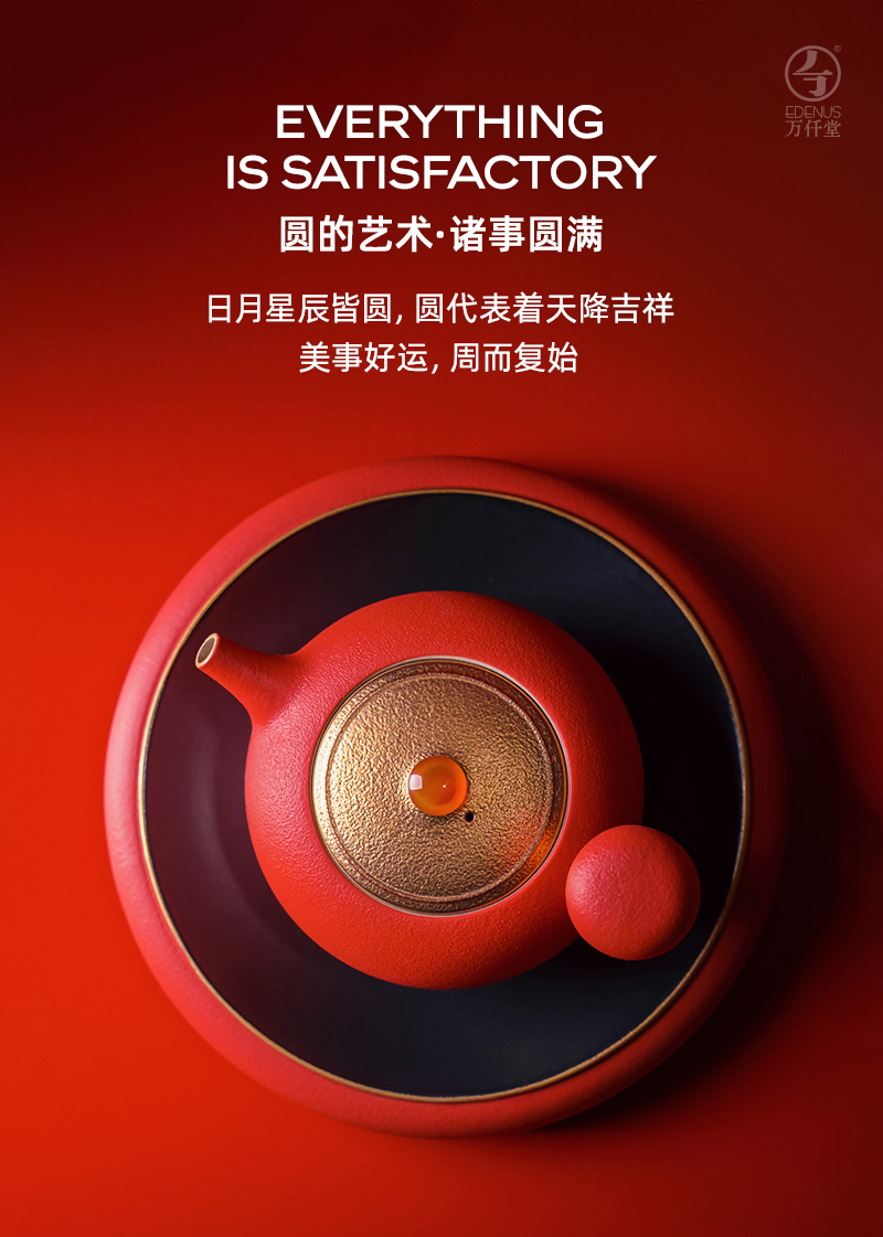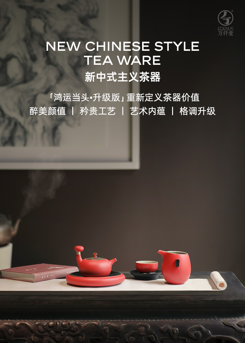 万仟堂(Edenus)整套茶具鸿运当头乔迁结婚礼物茶具套装茶壶茶杯中国红家用礼盒