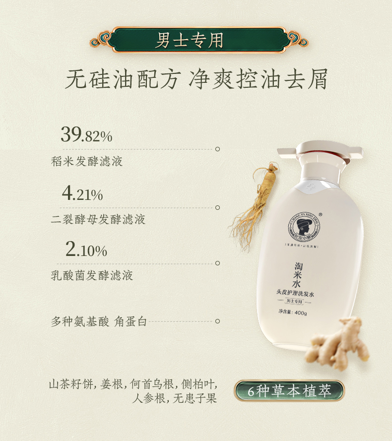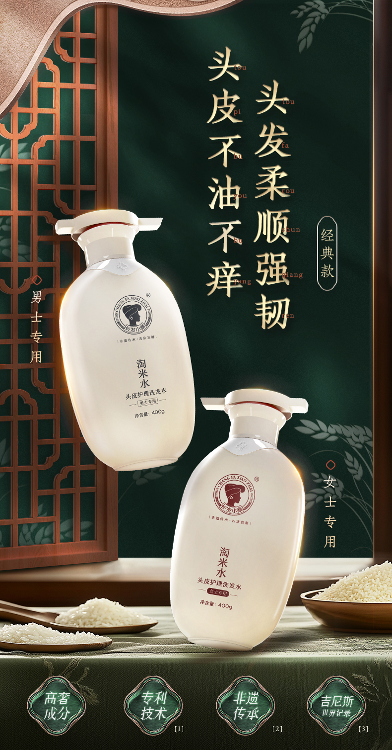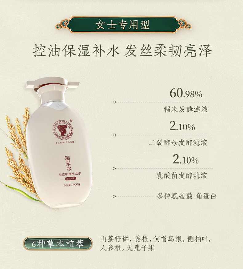长发小寨淘米水头皮护理洗发水控油蓬松去屑男女士洗发露洗护套装