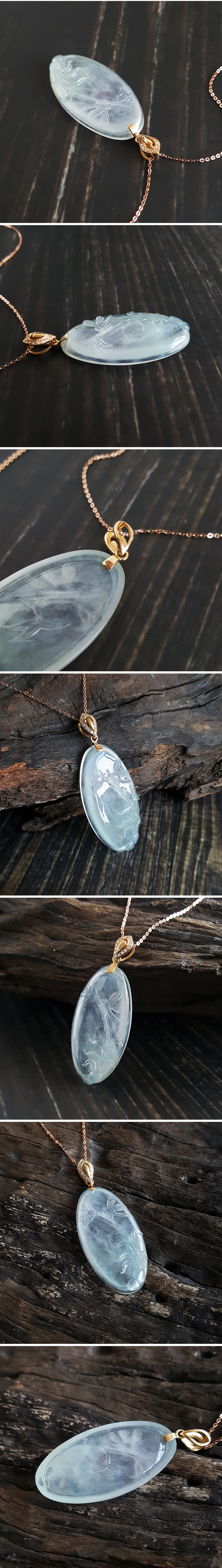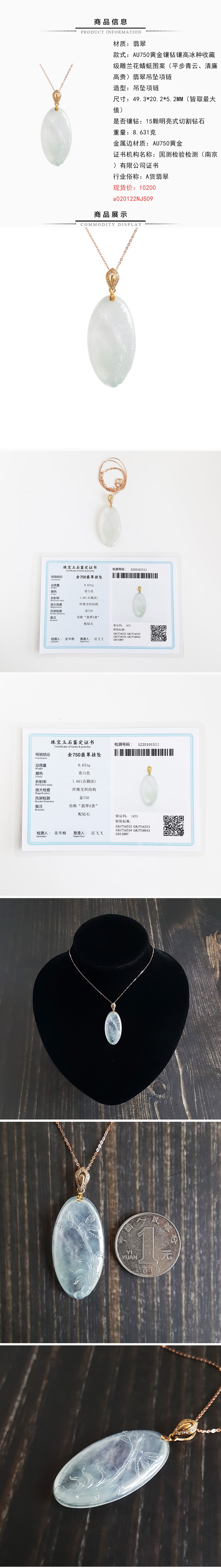 【天然正品】AU750黄金 镶钻 镶高冰种 雕兰花蜻蜓图案 翡翠吊坠项链 020122NJS09
