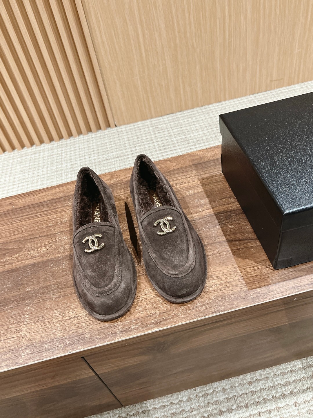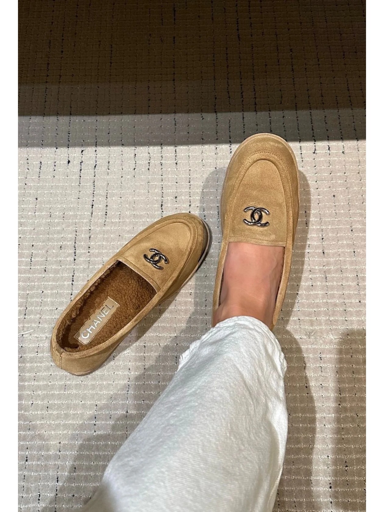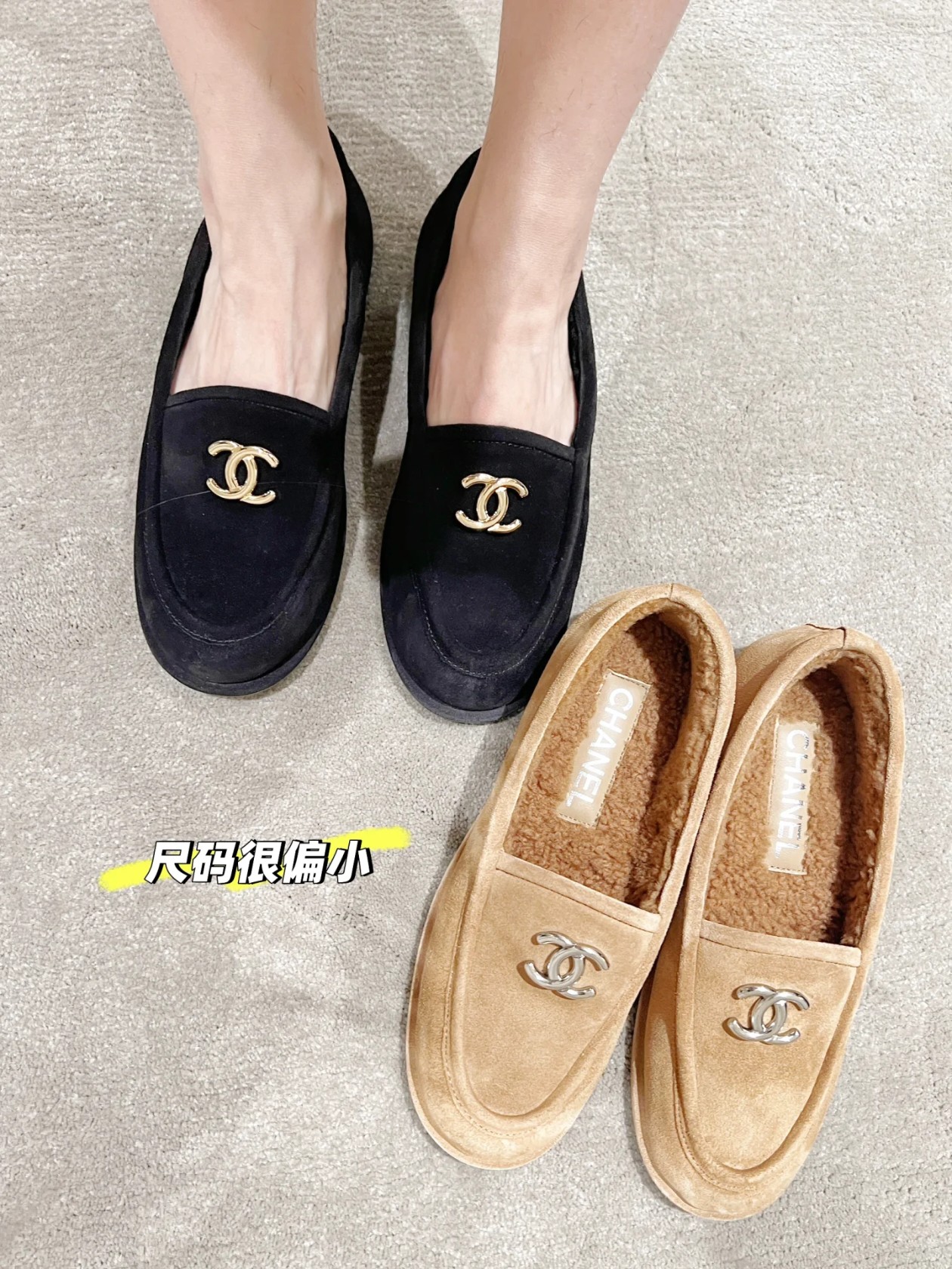 𝐂𝐇𝐀𝐍𝐄𝐋 𝟮𝟰𝐊 香奈儿𝐓𝐞𝐝𝐝𝐲美拉德麂皮乐福豆豆鞋 超级可爱 皮毛一体保暖性很好呢