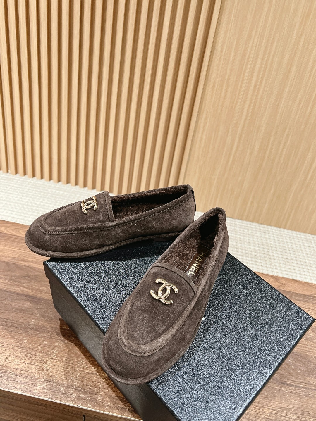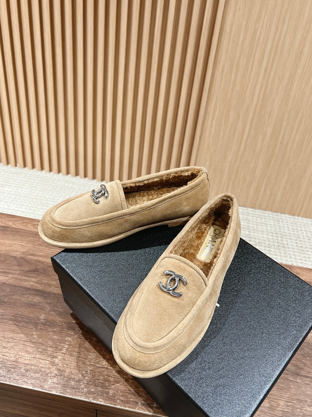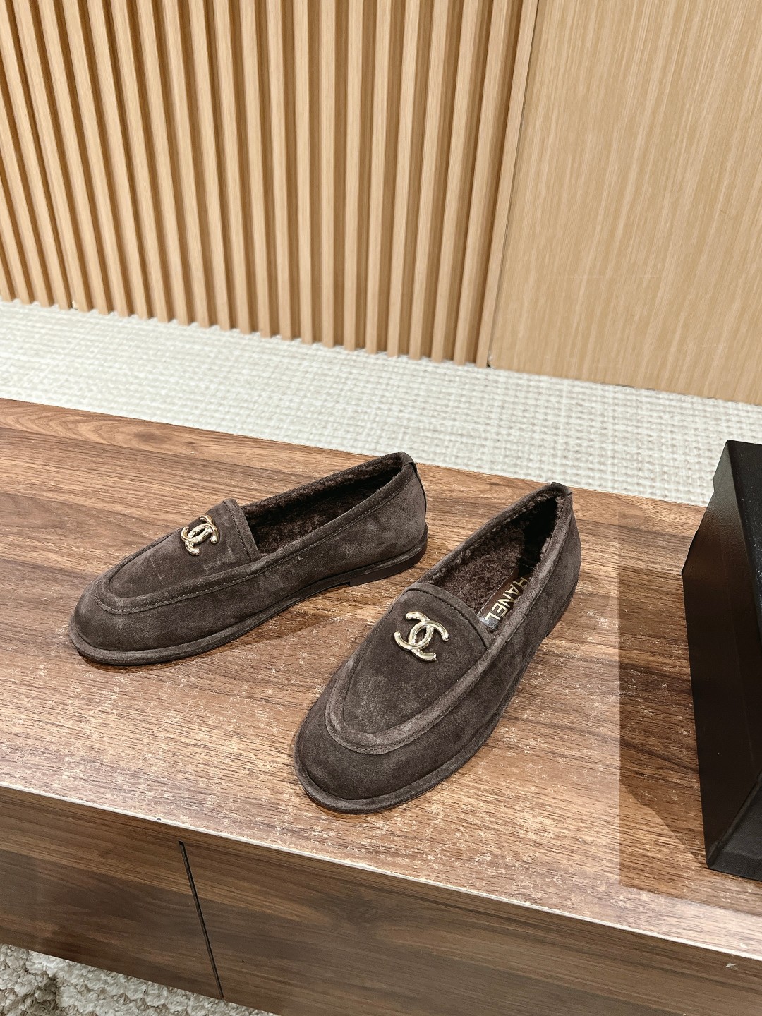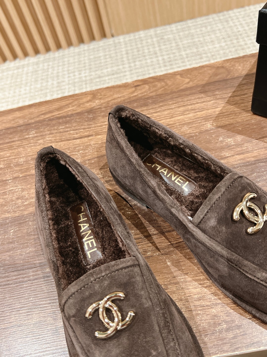 𝐂𝐇𝐀𝐍𝐄𝐋 𝟮𝟰𝐊 香奈儿𝐓𝐞𝐝𝐝𝐲美拉德麂皮乐福豆豆鞋 超级可爱 皮毛一体保暖性很好呢