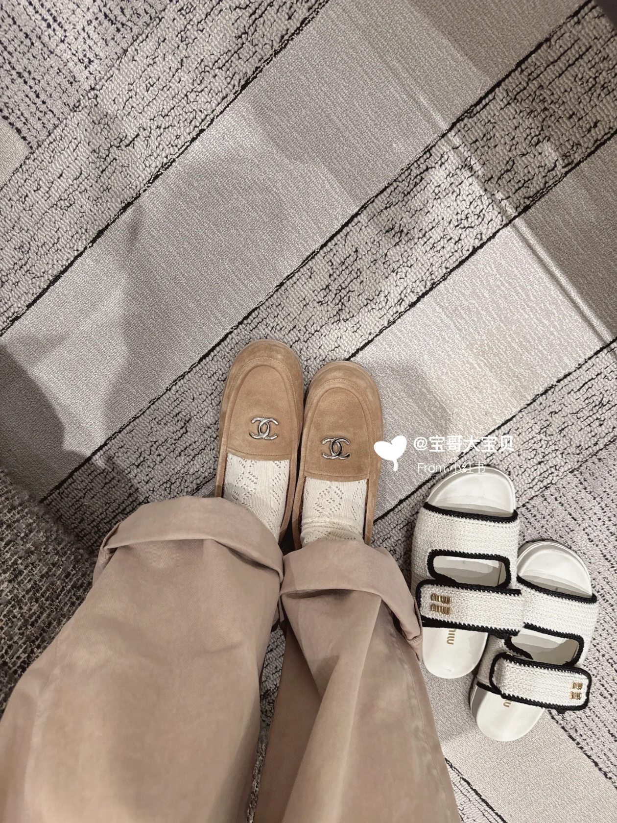 搭配双C logo搭扣 复古学院风那味就来啦 上脚舒服很软 秋冬配袜子建议拍大穿起来会更舒服一些不箍脚