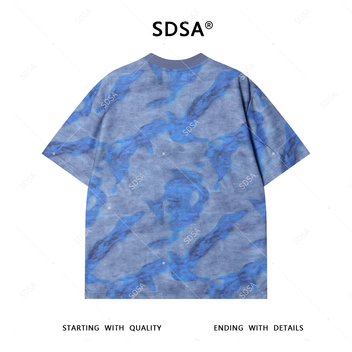 T4040夏季高级感新款男士韩版撞色扎染设计短袖T恤显瘦百搭圆领上衣