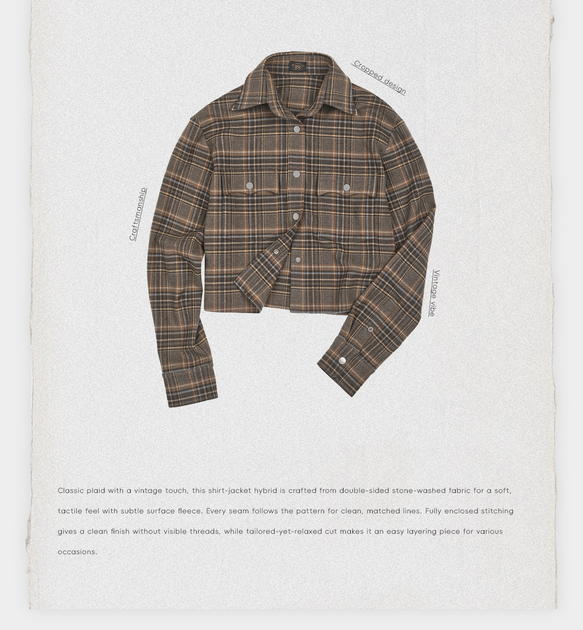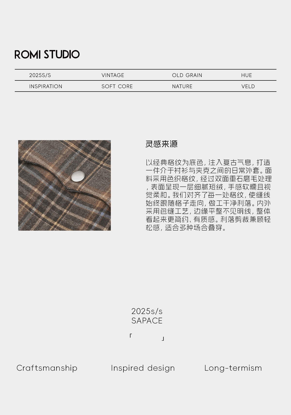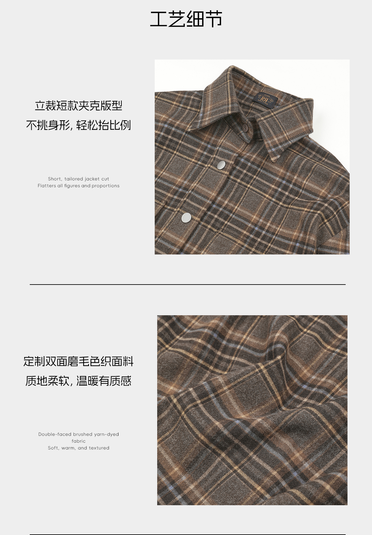 ROMI STUDIO“复古格纹”双面磨毛超柔色织夹克式衬衫 RWCSWY7223