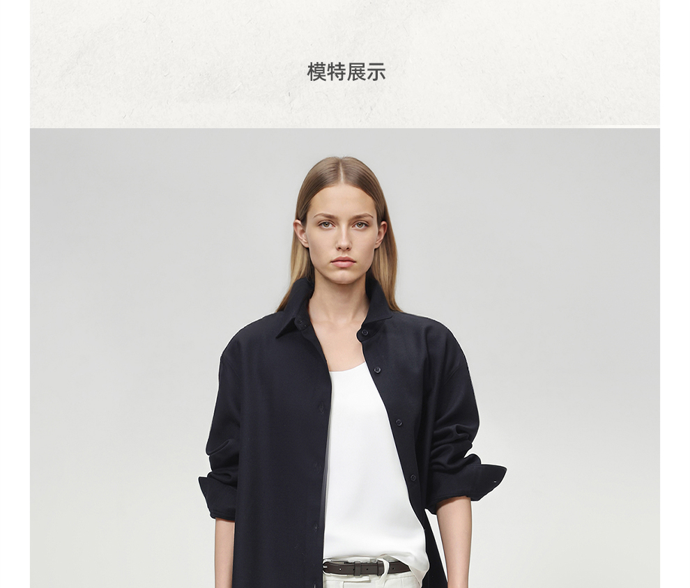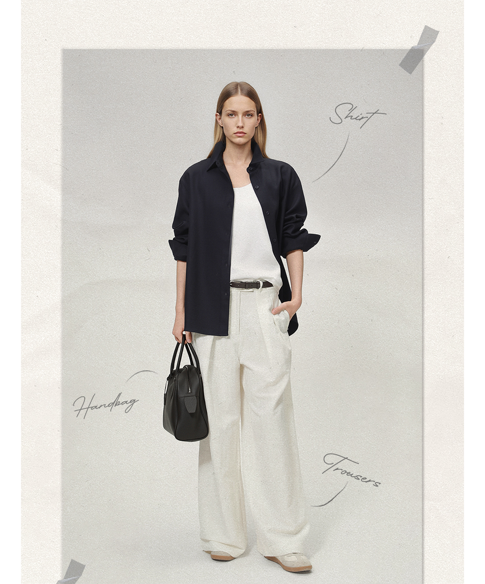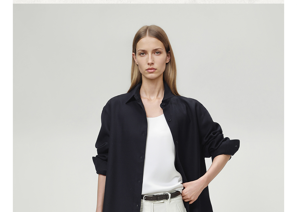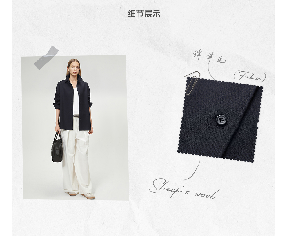 ROMI STUDIO“极简随性” 精纺绵羊毛混纺落肩小翻领衬衣 431C8095