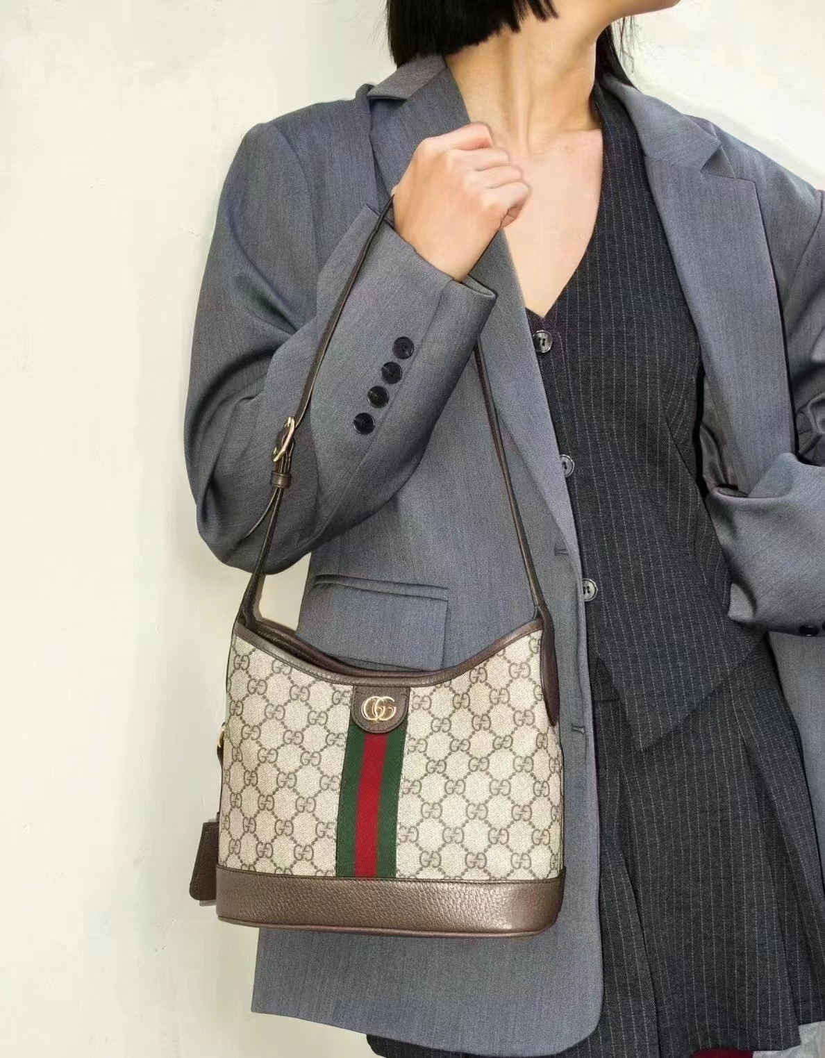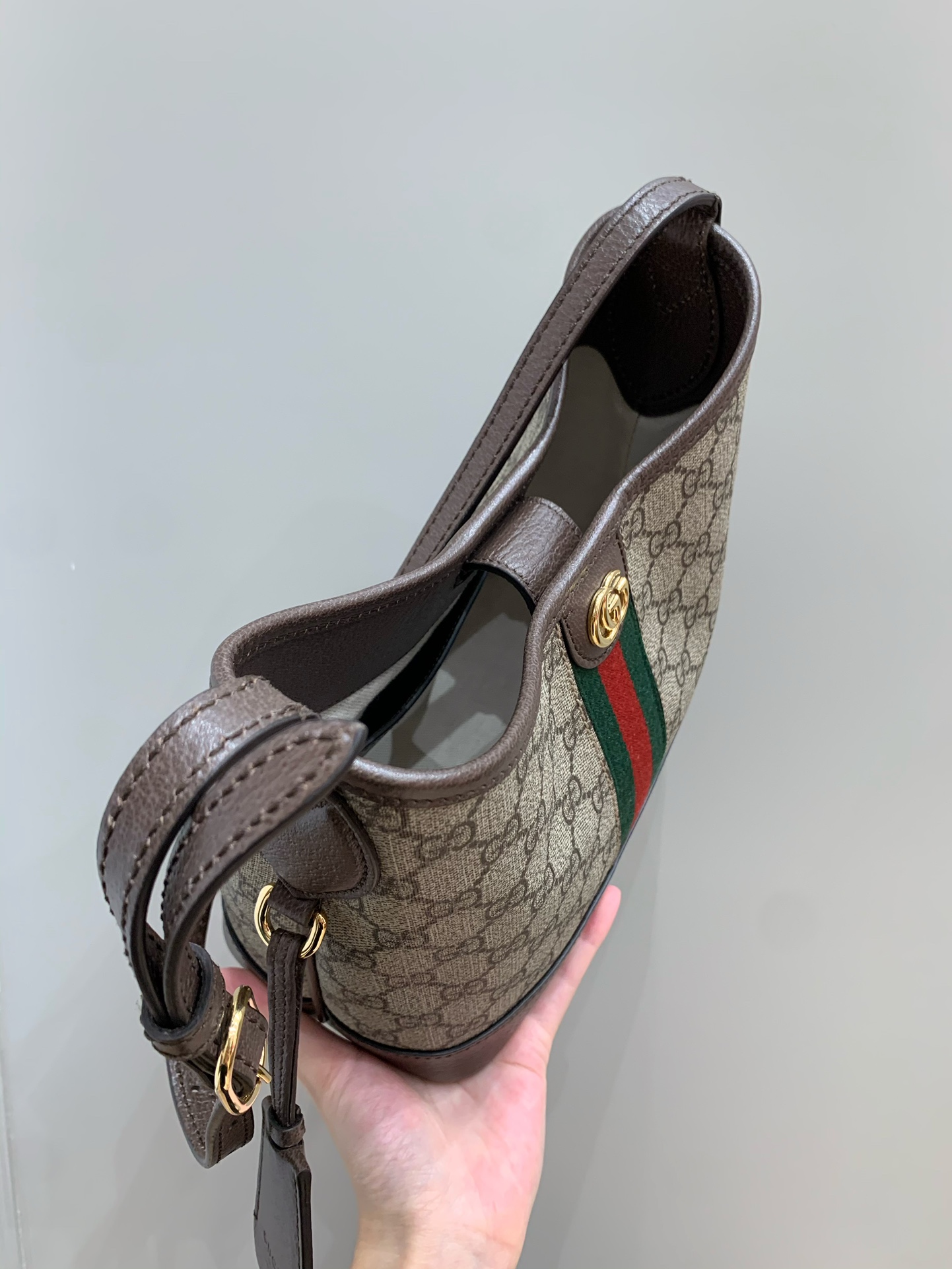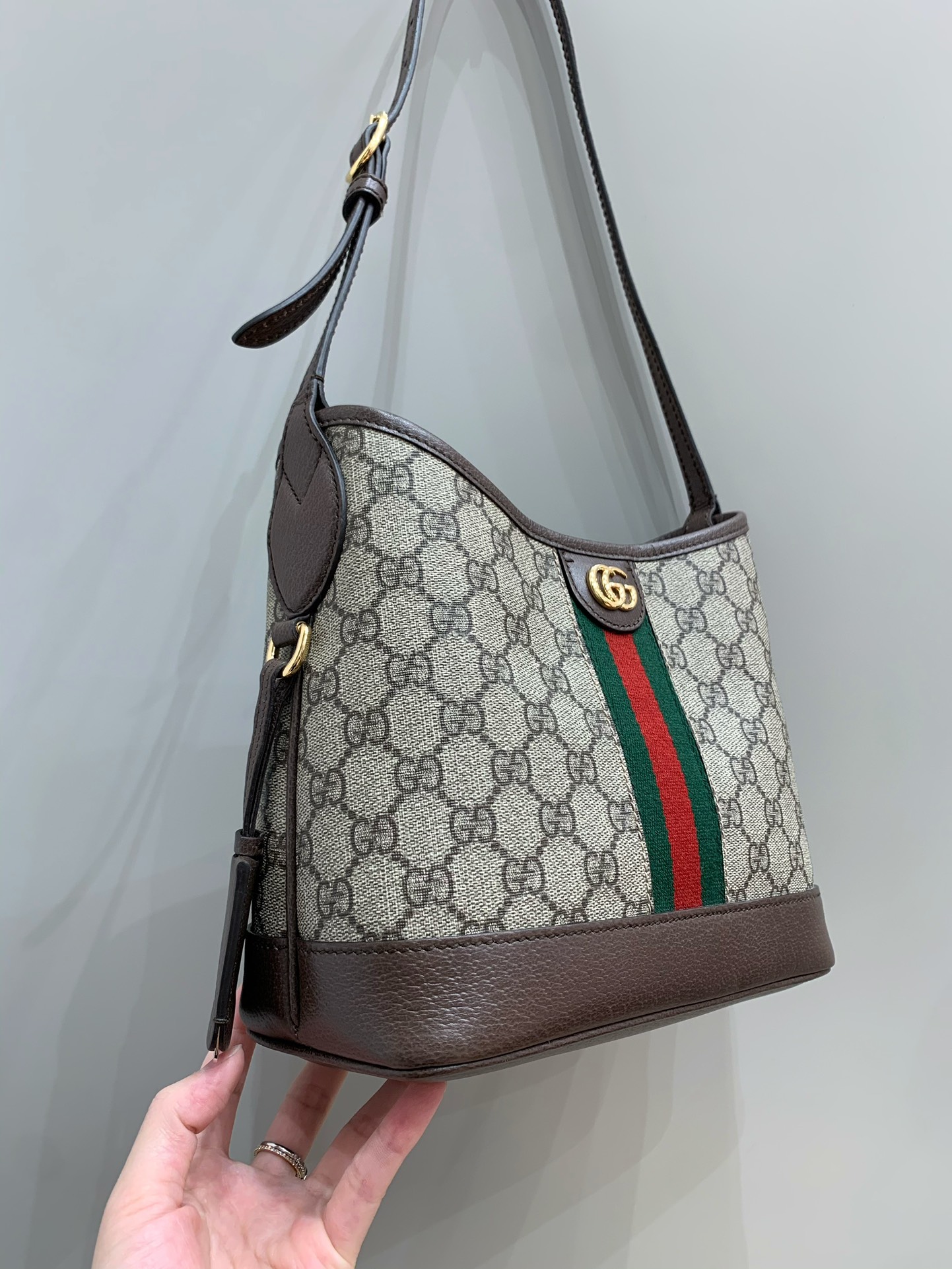 这款小号肩背包以别出心裁的设计焕新诠释Ophidia系列,将开口式水桶包与肩背包款式融于一体。这款设计采用品牌标志性的米色和乌木色配色GG Supreme帆布制成。