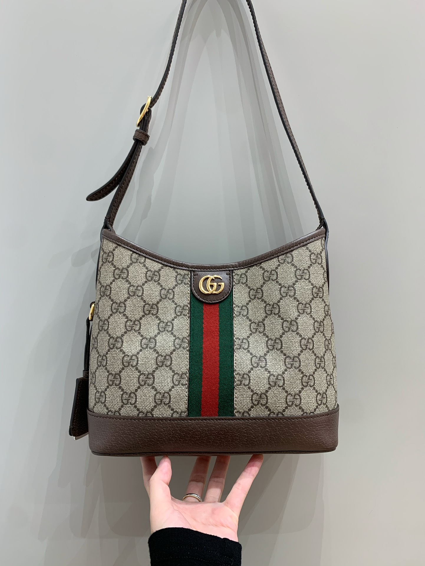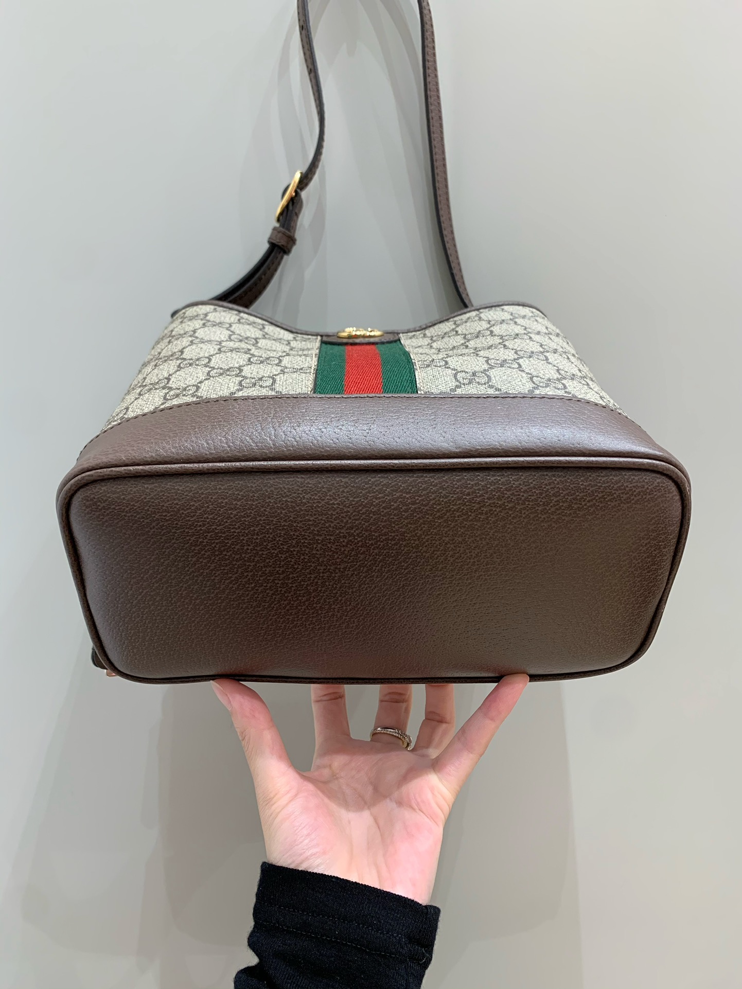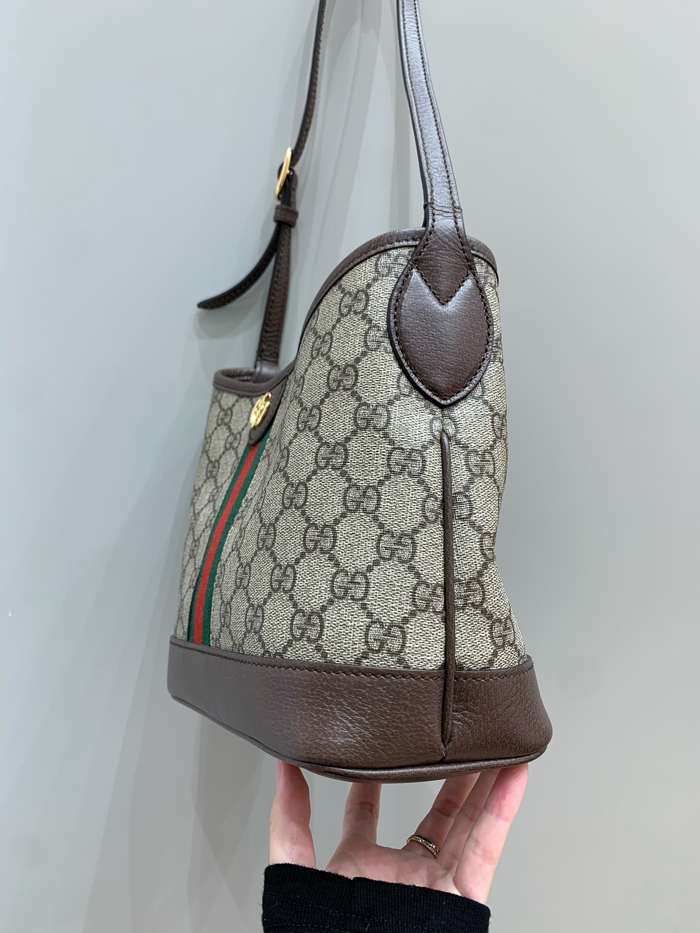 这款小号肩背包以别出心裁的设计焕新诠释Ophidia系列,将开口式水桶包与肩背包款式融于一体。这款设计采用品牌标志性的米色和乌木色配色GG Supreme帆布制成。