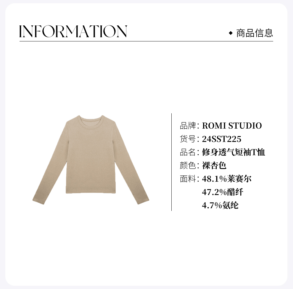 ROMI STUDIO“裸肤挚爱”醋酸莱赛尔混纺腔调穿搭打底T恤24SST225