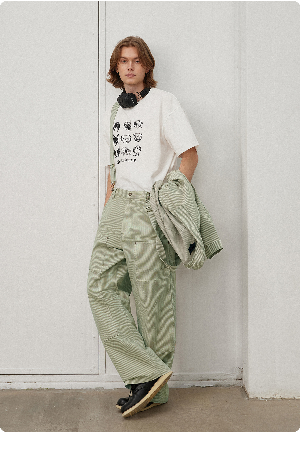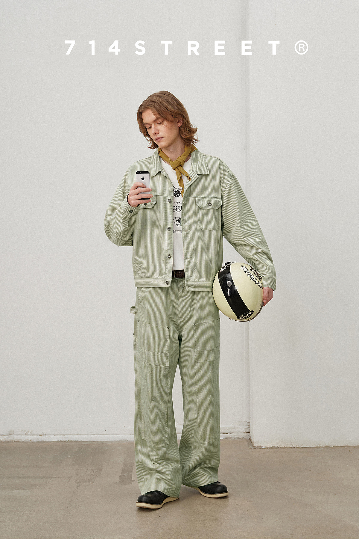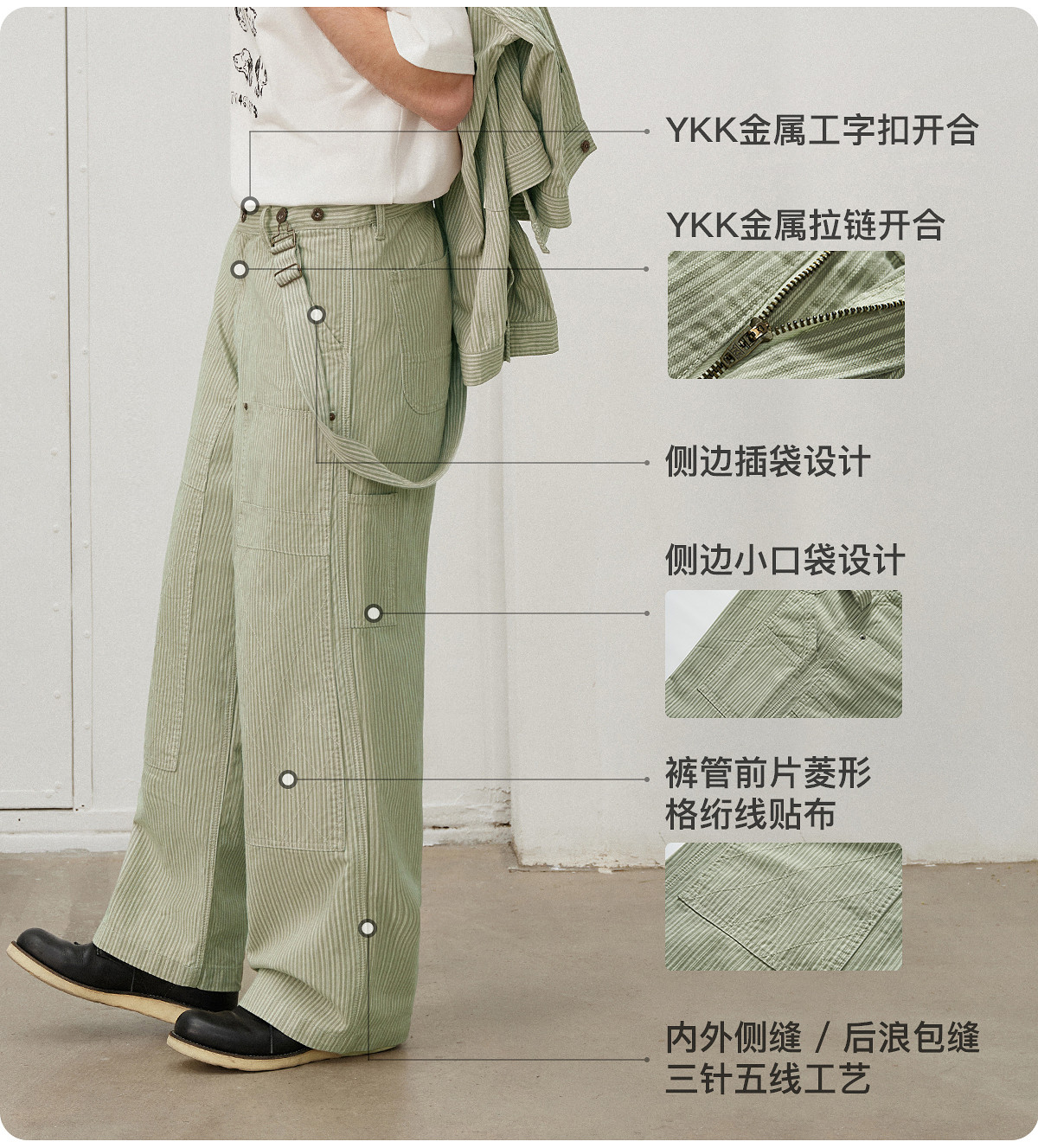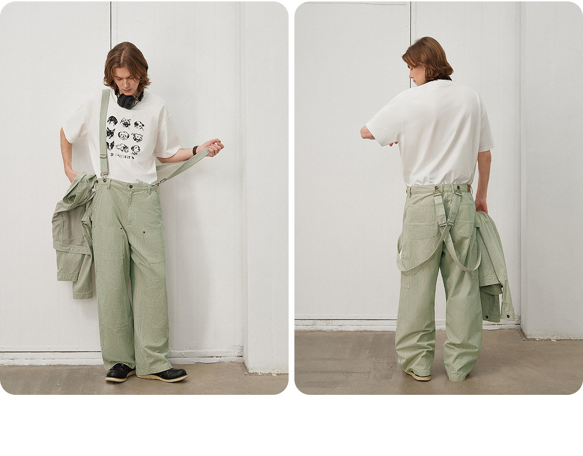 714street日系复古条纹宽松男士休闲裤2025春季新款全棉直筒长裤