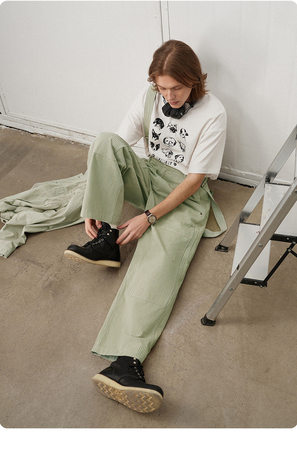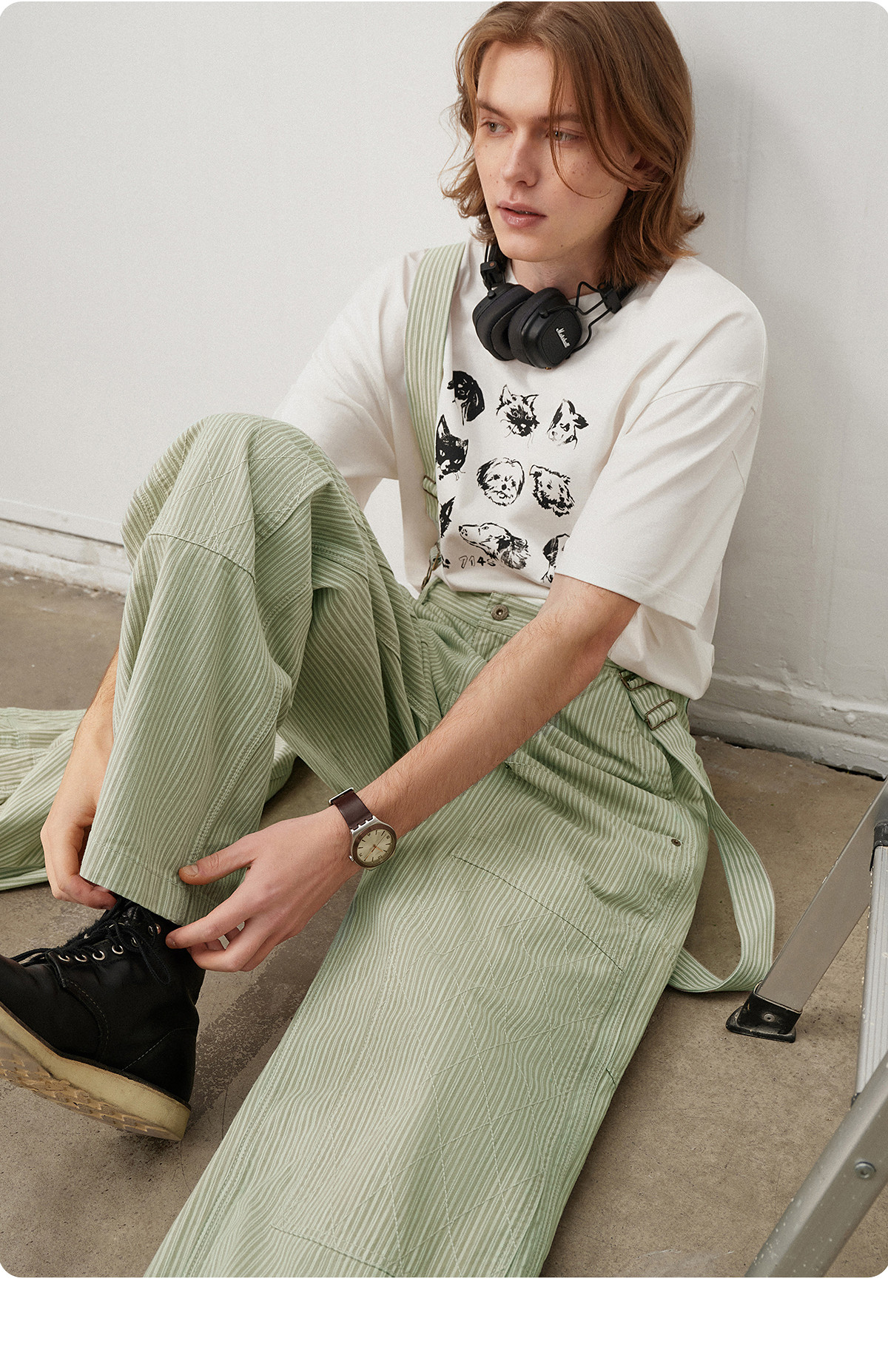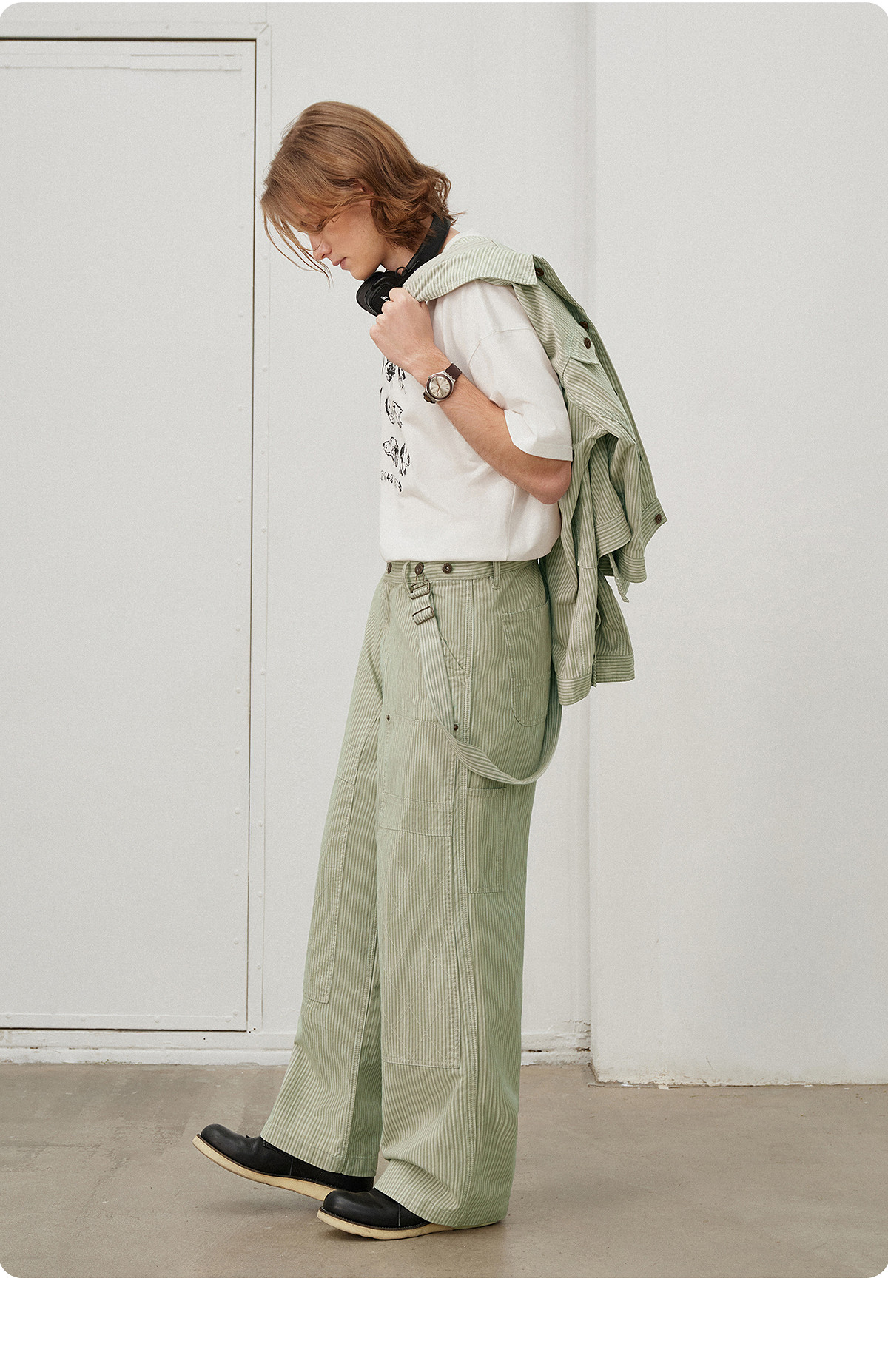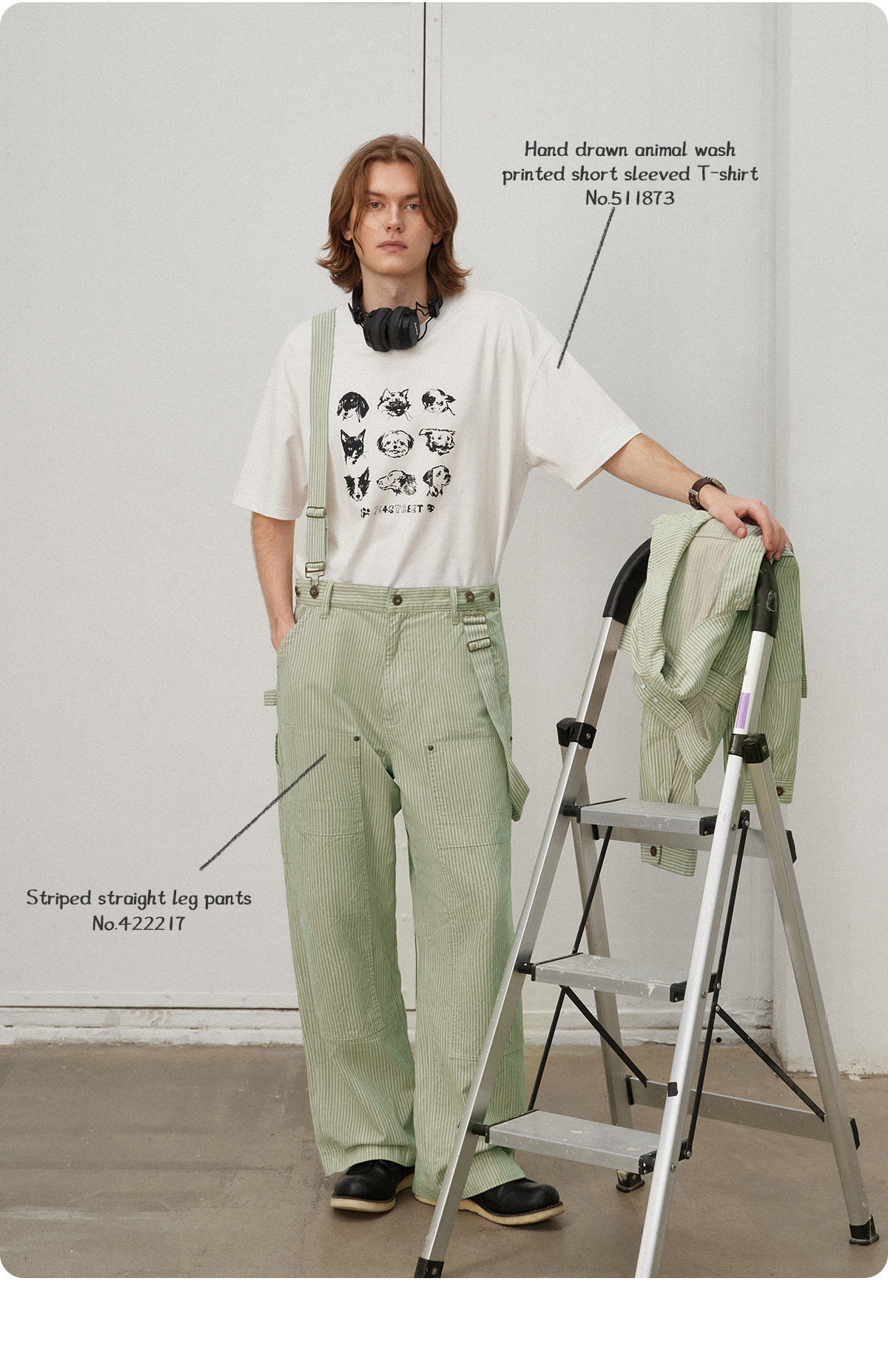 714street日系复古条纹宽松男士休闲裤2025春季新款全棉直筒长裤