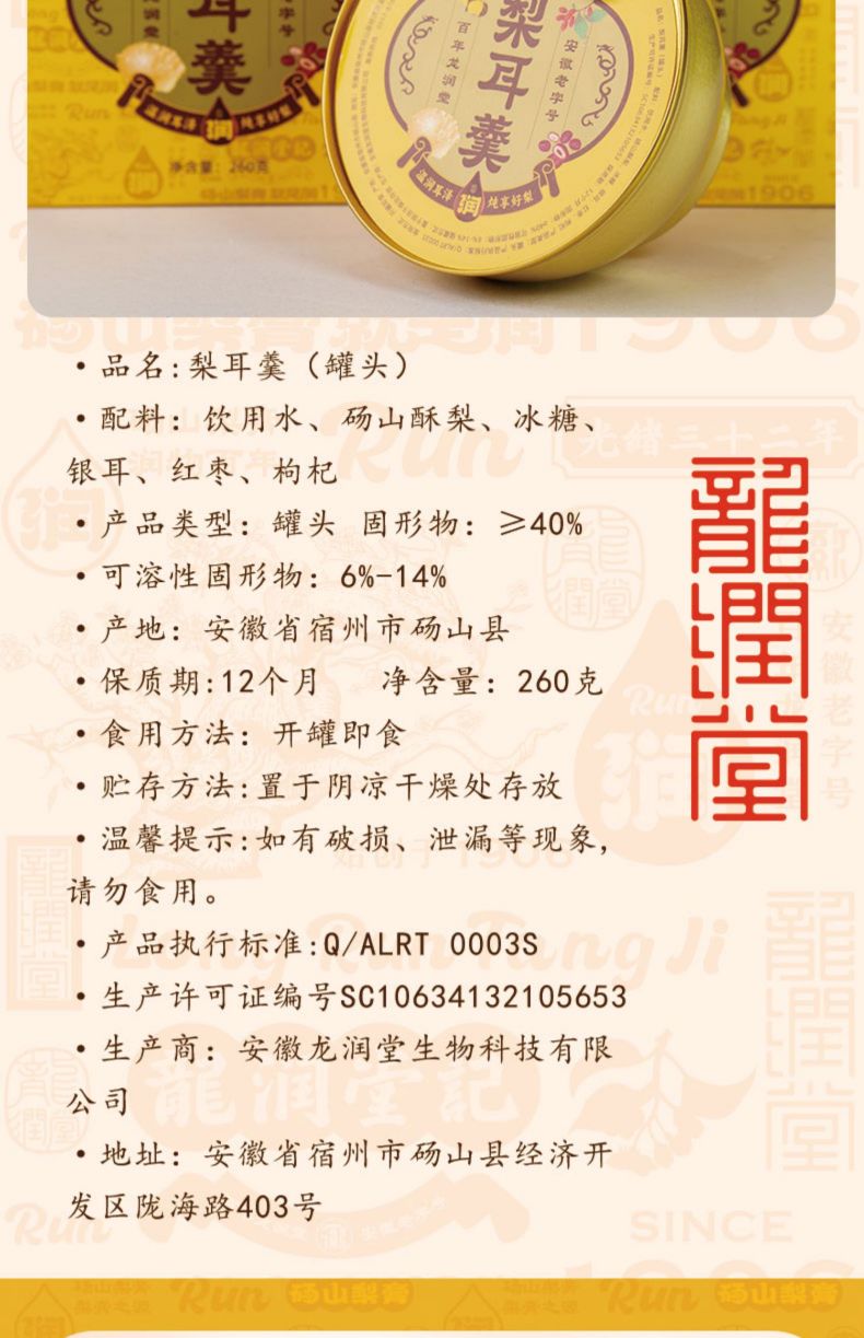 龙润堂老字号 梨耳羹 260g*6碗