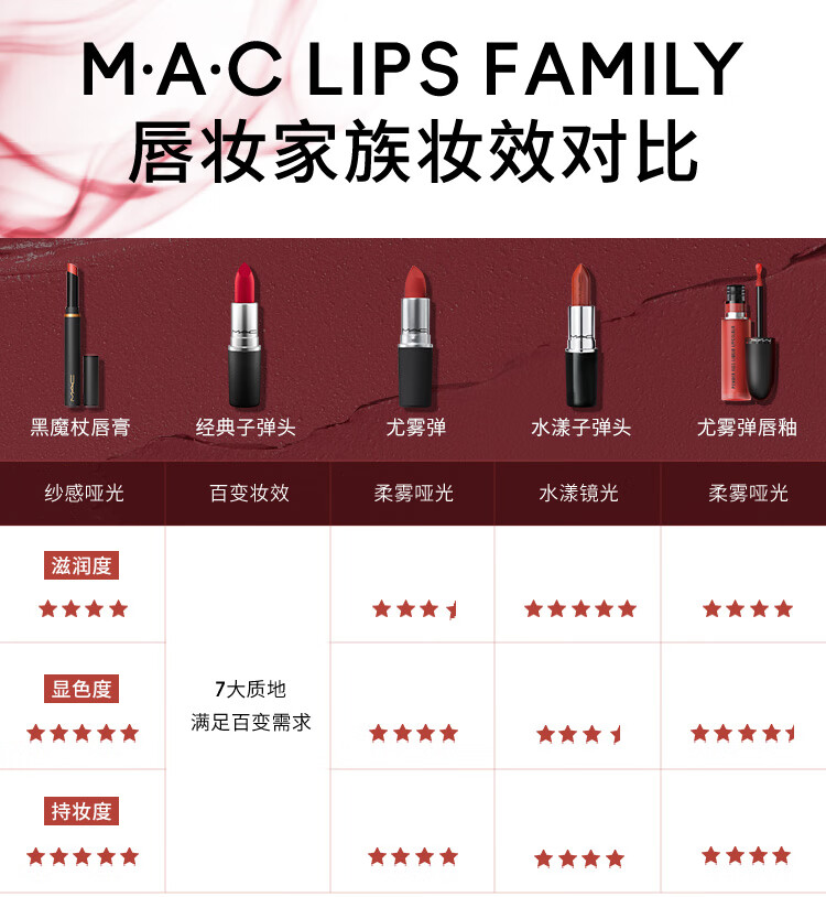 MAC魅可 M.A.C 黑魔杖丝缎绒雾细管唇膏口红 2g
