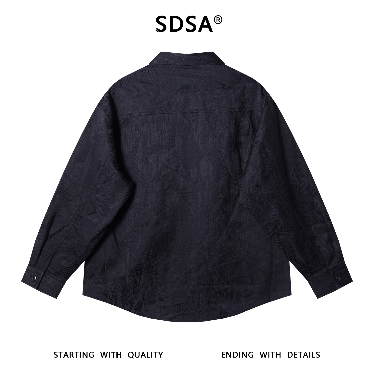 12495SDSA男士秋冬新款痞帅男装潮牌纯色纹理感提花翻领长袖衬衫百搭