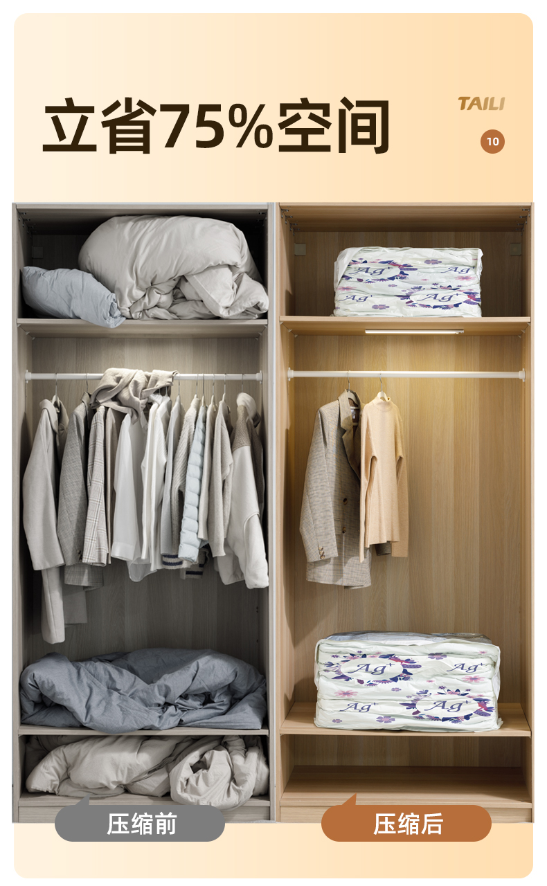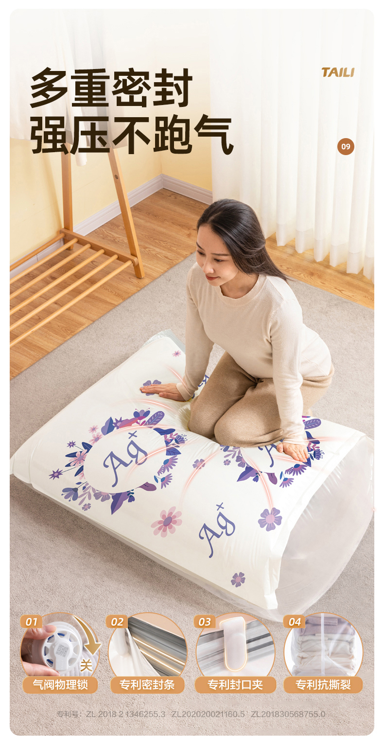 换季必囤,中国航天合作产品【太力抗菌真空压缩收纳袋】收纳界的黑科技,添加Ag+银离子,抗菌率 99.9%,800多项国际专利,27次陪伴宇航员进入太空 ,国家专利免抽气,一压一按3秒排气