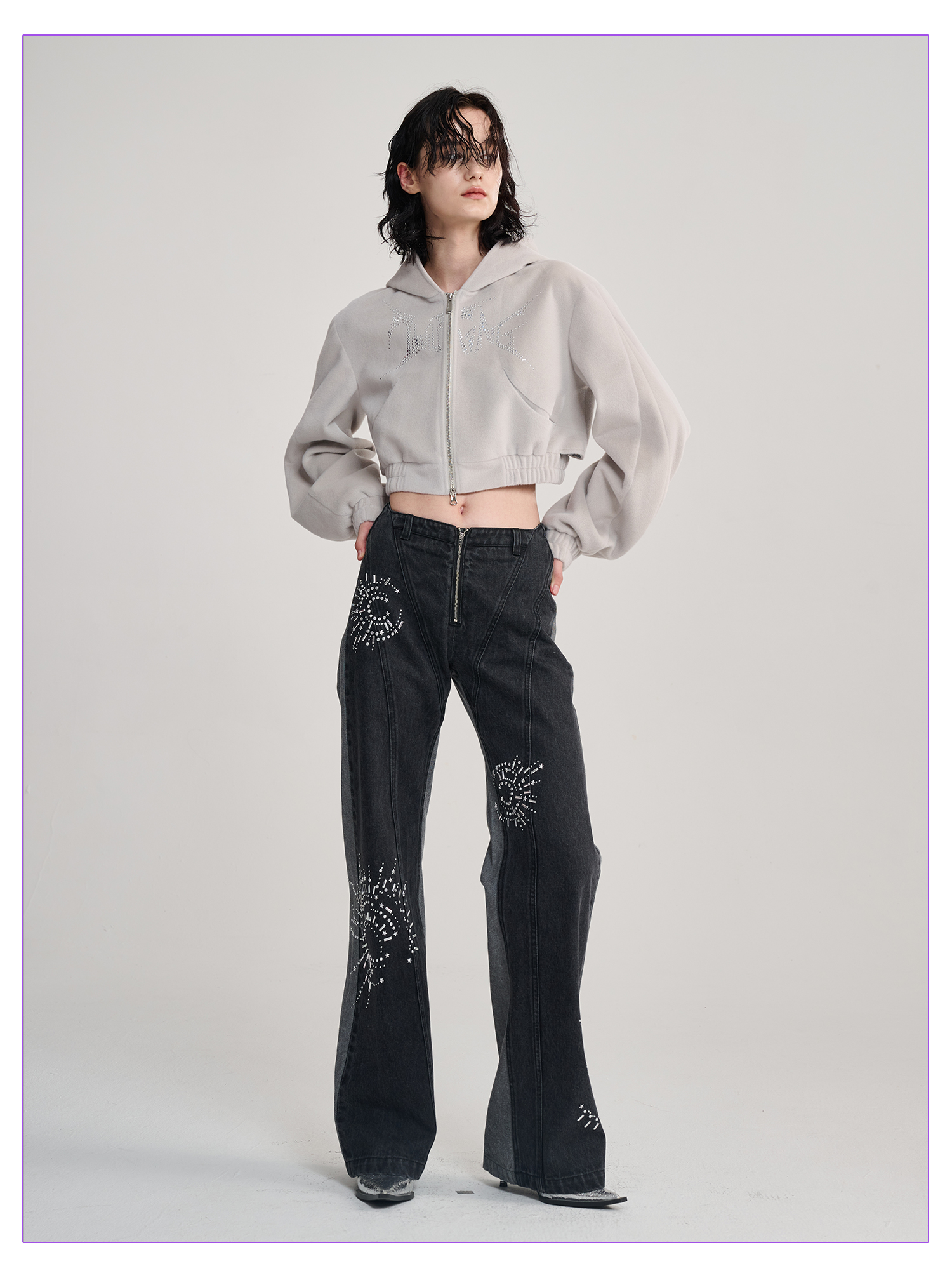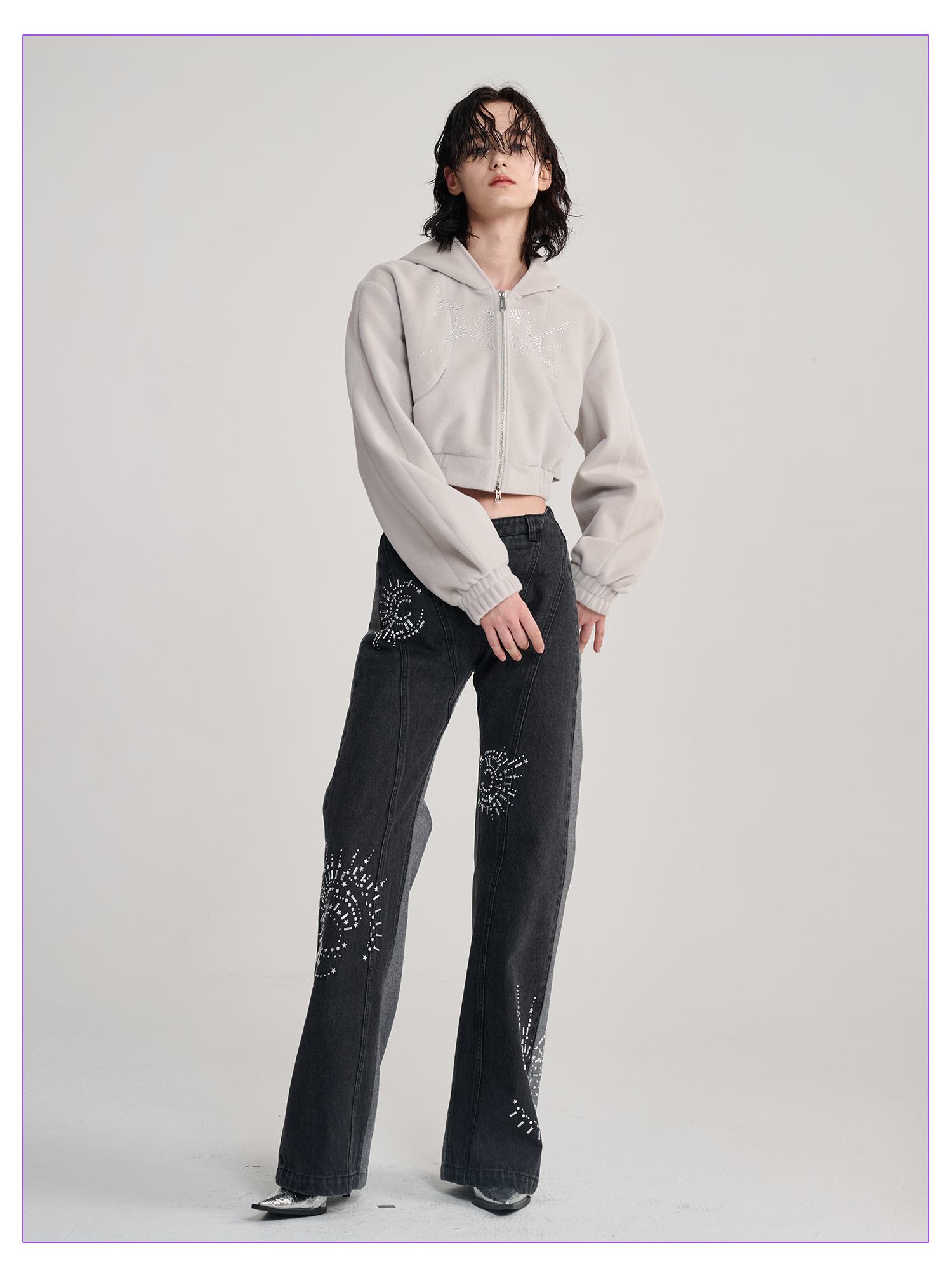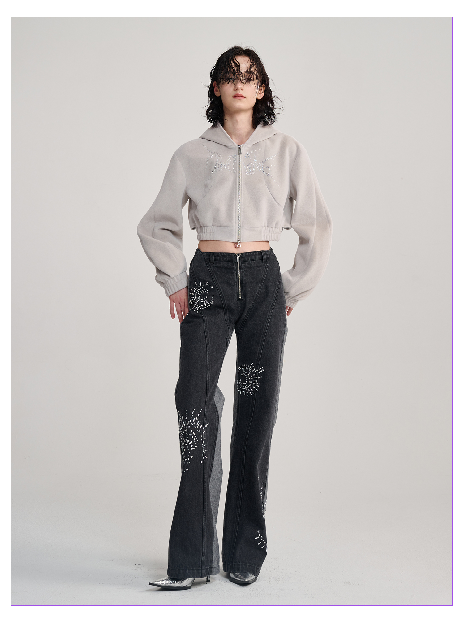 TIWILLTANG启世录“钦衹域裥”折边牛仔长裤